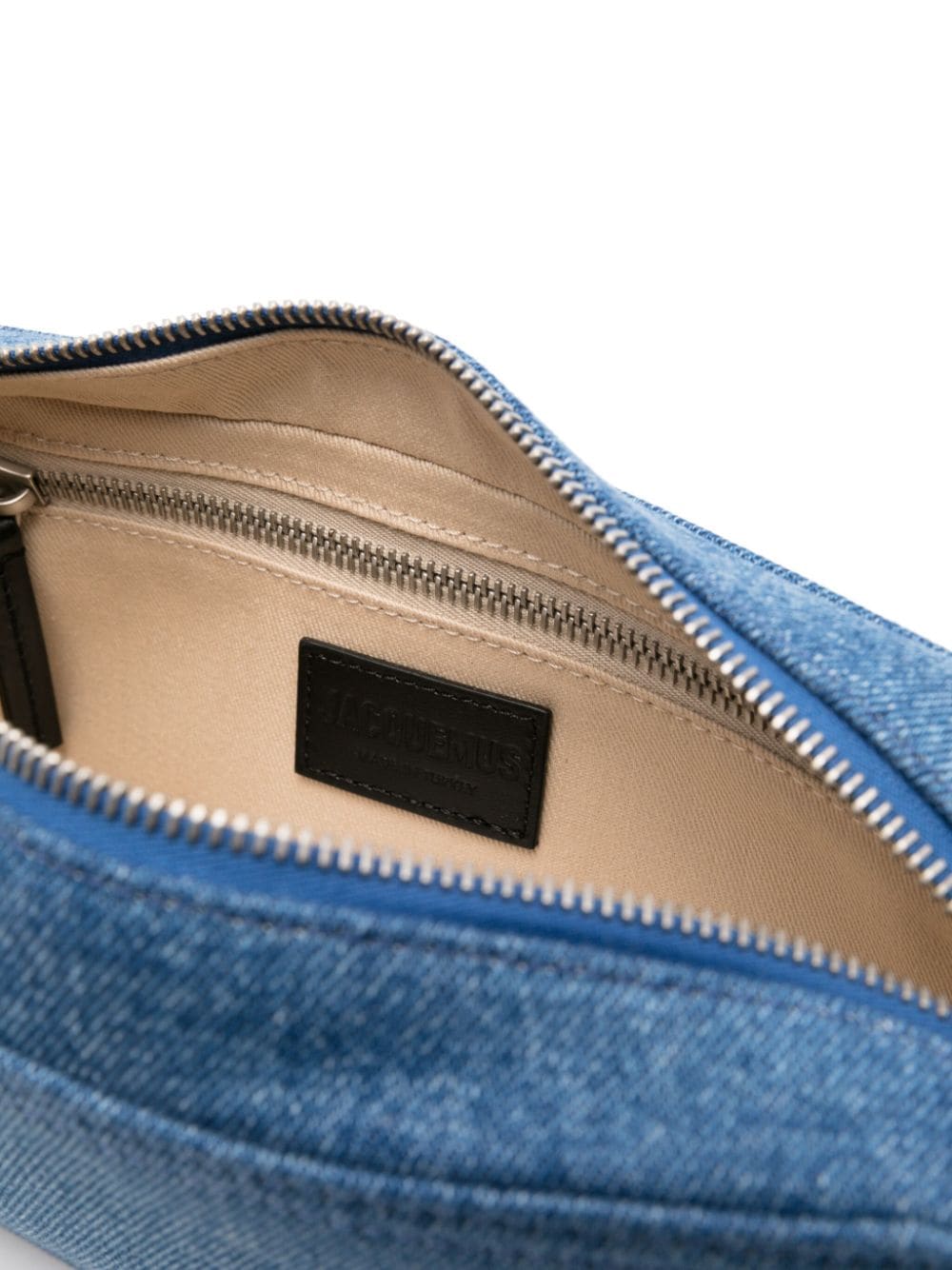 medium blue/light beige cotton denim logo lettering rear patch pocket adjustable shoulder strap main compartment internal zip-fastening pocket internal patch pocket contrast lining silver-tone hardware top zip fastening This piece comes complete with a protective dust bag.