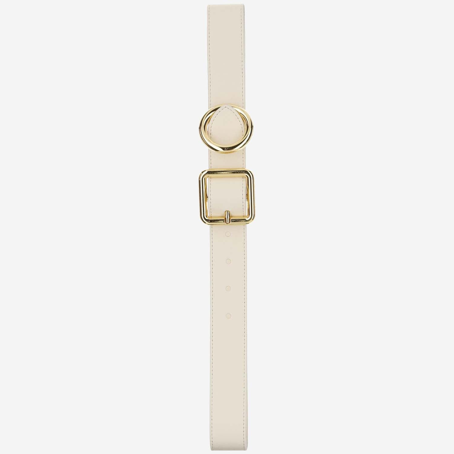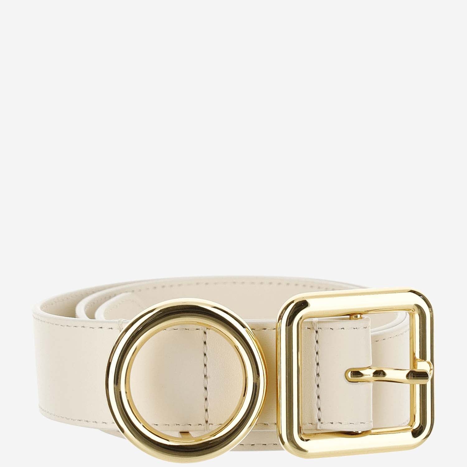 Buckle with circular and square rings in gold plated metal