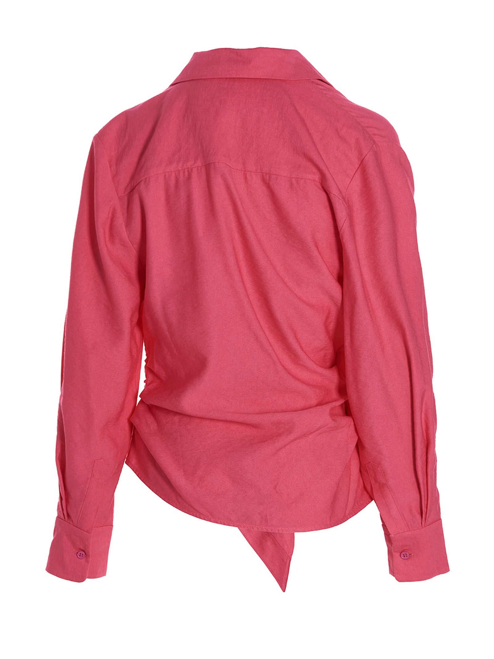 La chemise Bahia' viscose blend shirt with draped style with fake knot, very deep neckline and a shirt collar.