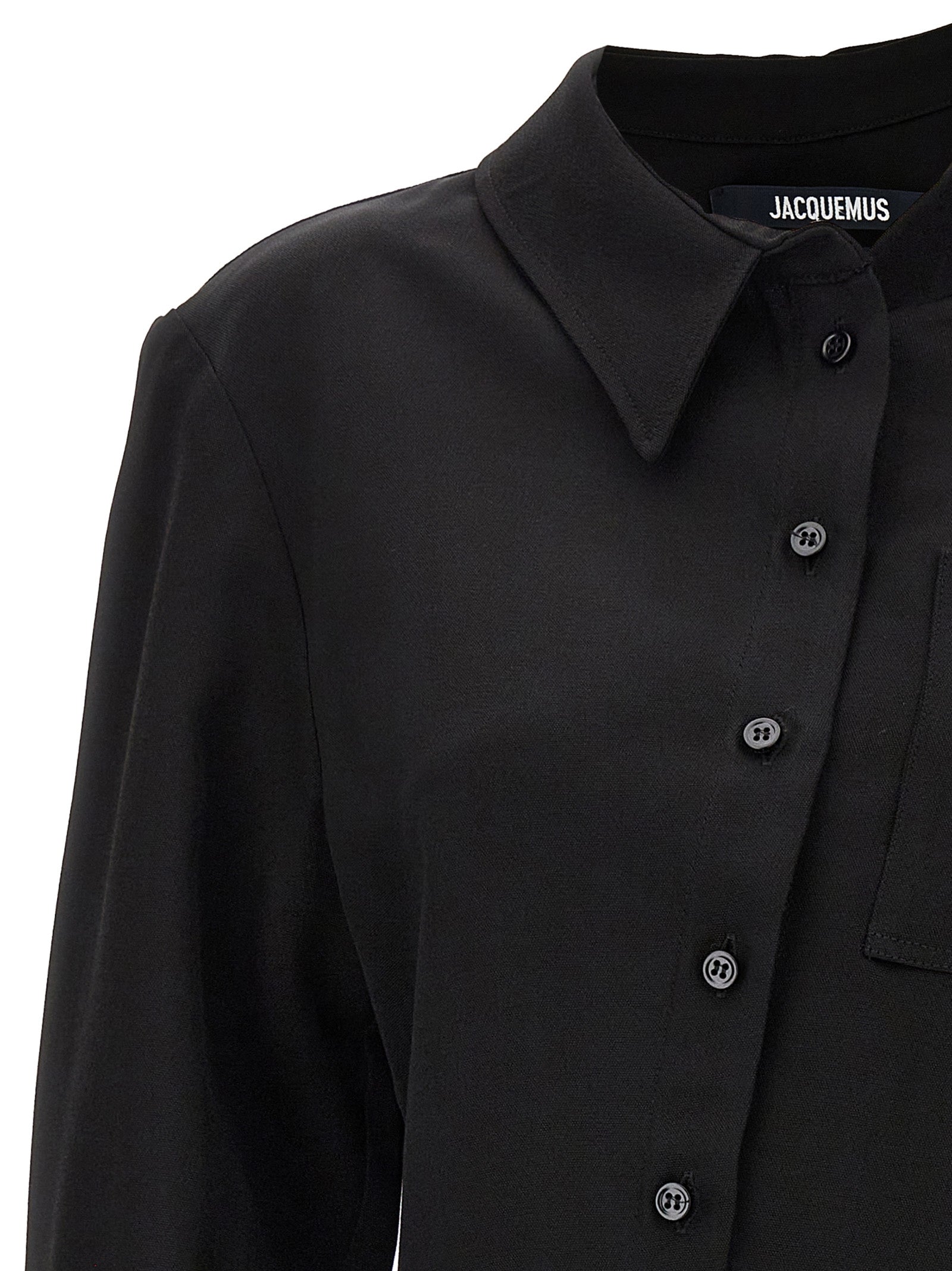 'La chemise Pablo' shirt in viscose blend, asymmetric style with button closure, front pocket, long cuffed sleeves.
