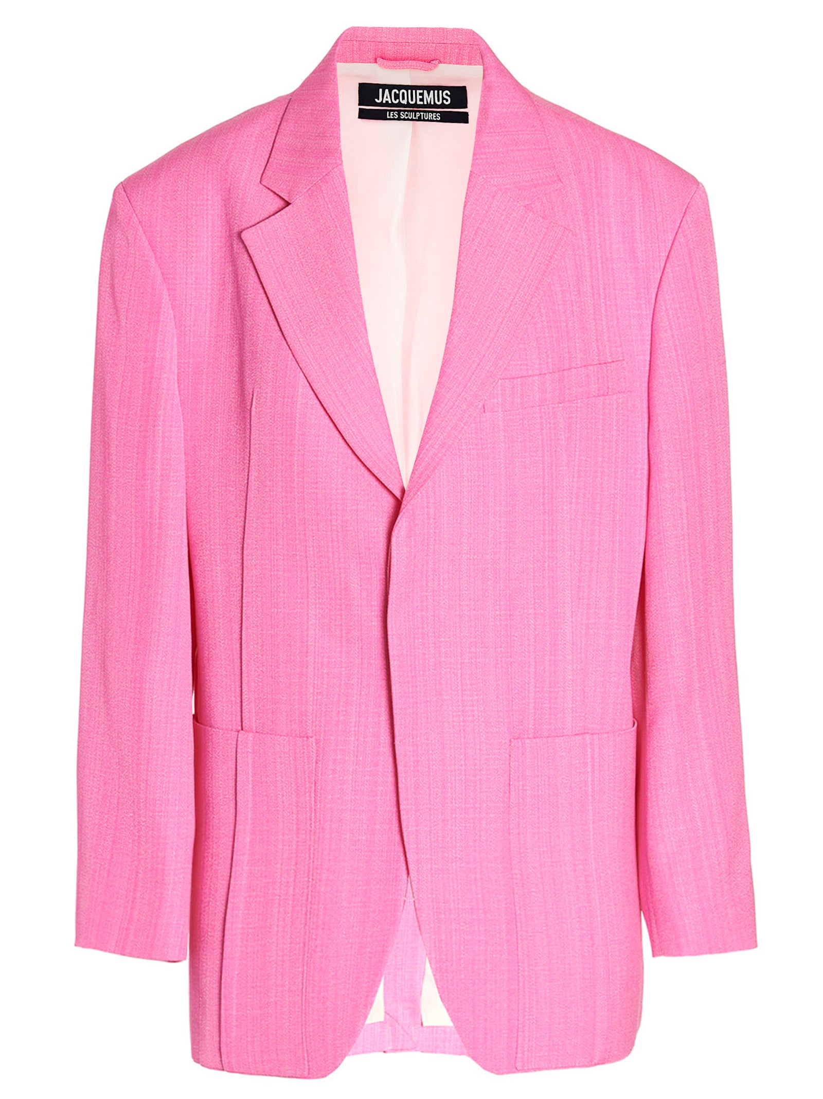 'La veste d'homme' viscose and silk blend blazer jacket, boxy fit inspired by the male wardrobe, classic lapels, chest welt pocket and large patch pockets, concealed single-breasted buttoning, front pleats, inner welt pocket.