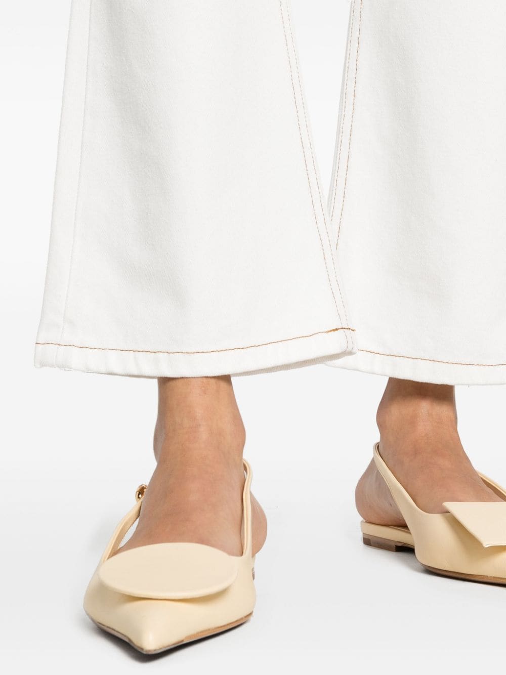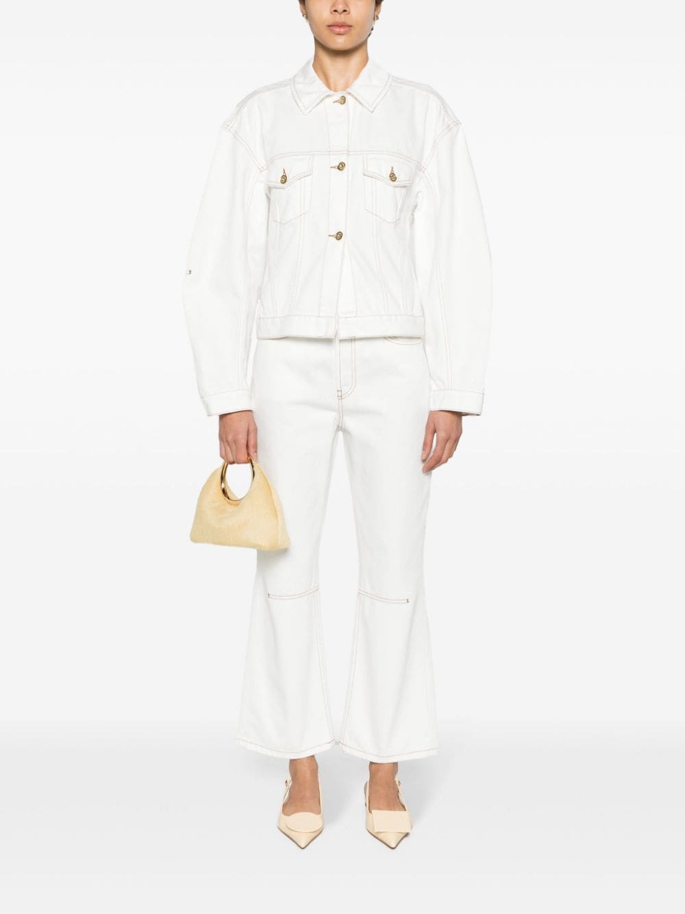 off-white organic cotton denim contrast stitching logo patch to the rear concealed front button fastening slight flare cropped classic five pockets This item is made from at least 50% organic materials. Learn more about what makes a product Conscious on our Conscious Criteria page
