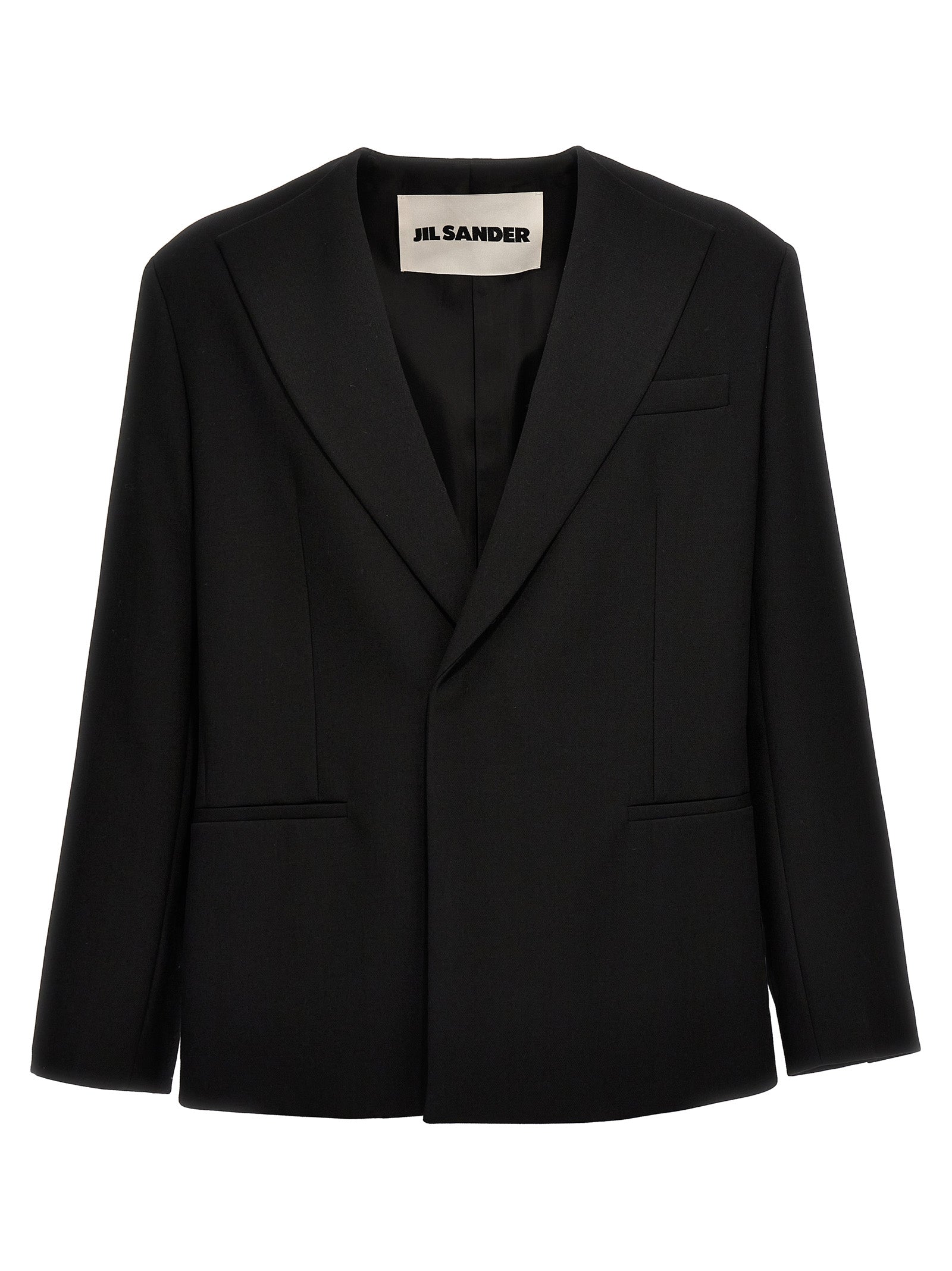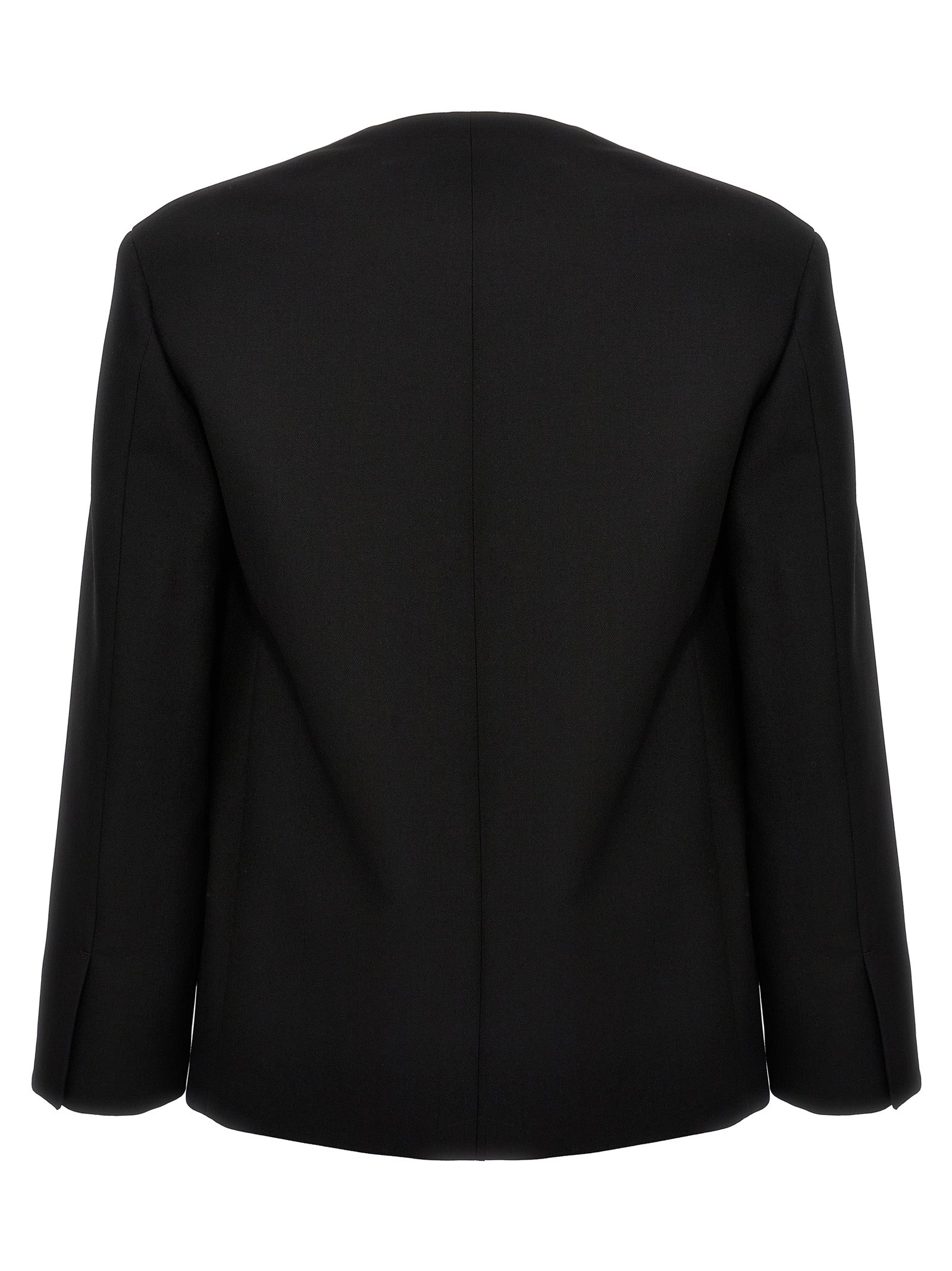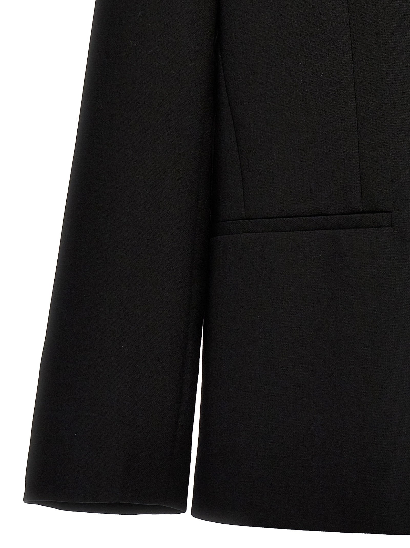 '30' wool blazer with hidden button closure, pockets, structured shoulders, long sleeves with slit.
