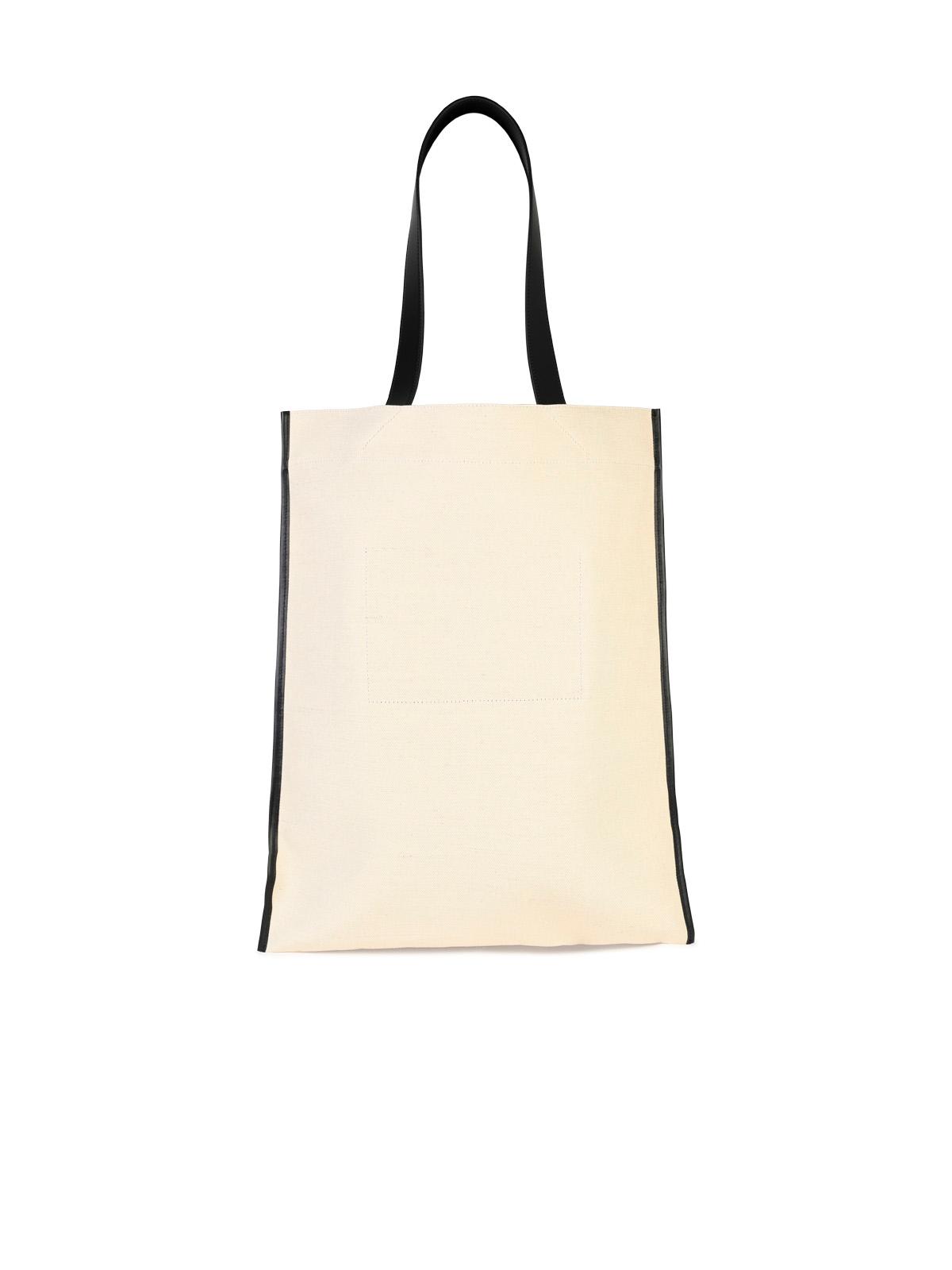 Made of cotton blend, contrasting logo printed on the front, double black leather handle, interior leather pocket with two compartments\n85 x 45 x 7 cm