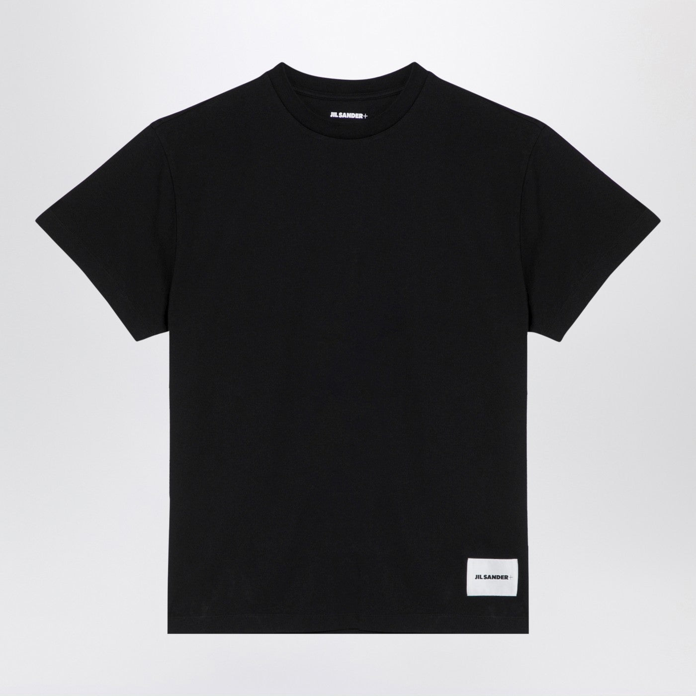 Black cotton crewneck T-shirt from Jil Sander featuring short sleeves, a front logo patch and a straight hem.