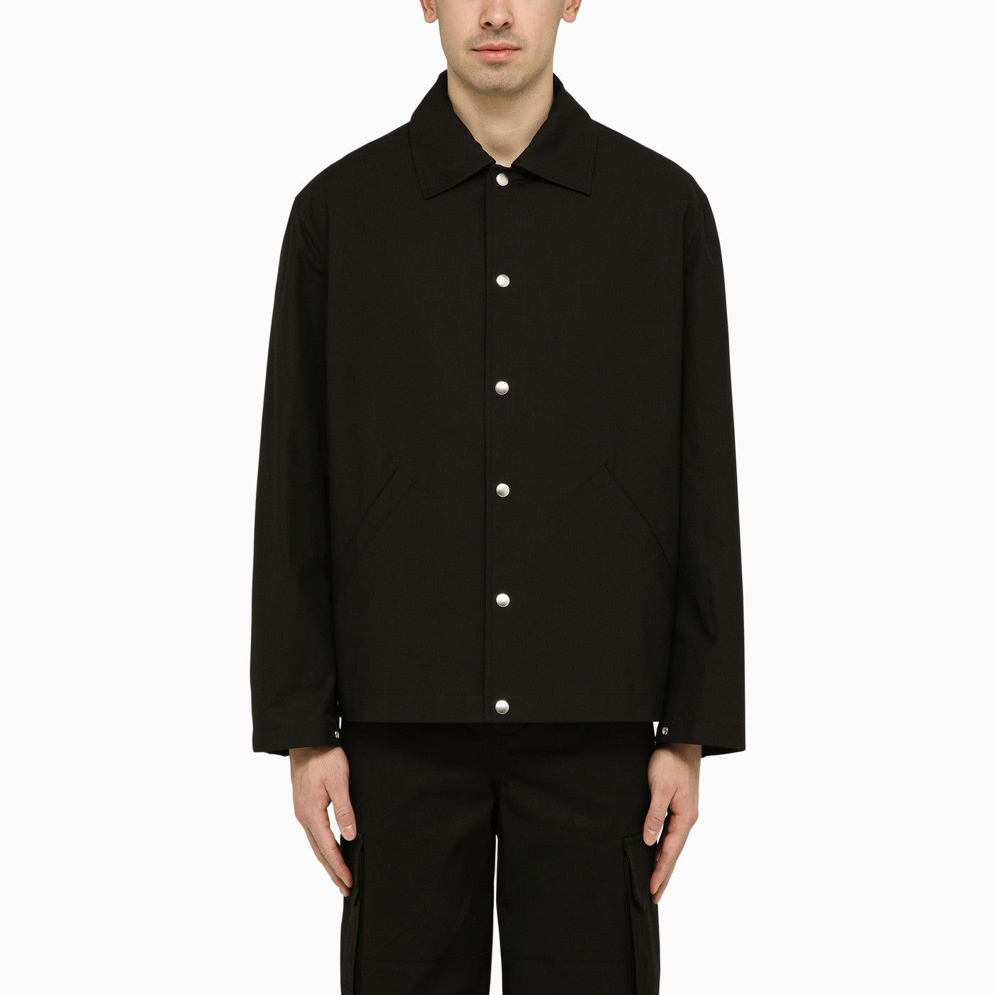 Shirt-jacket by Jil Sander in black cotton, featuring a classic collar, a press stud front fastening, button cuffs and a logo print on the back.