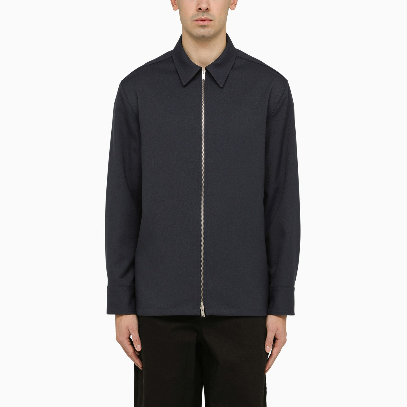 Blue shirt jacket by Jil Sander featuring a classic collar, a front zip fastening, long sleeves, press stud cuffs and a straight hem.