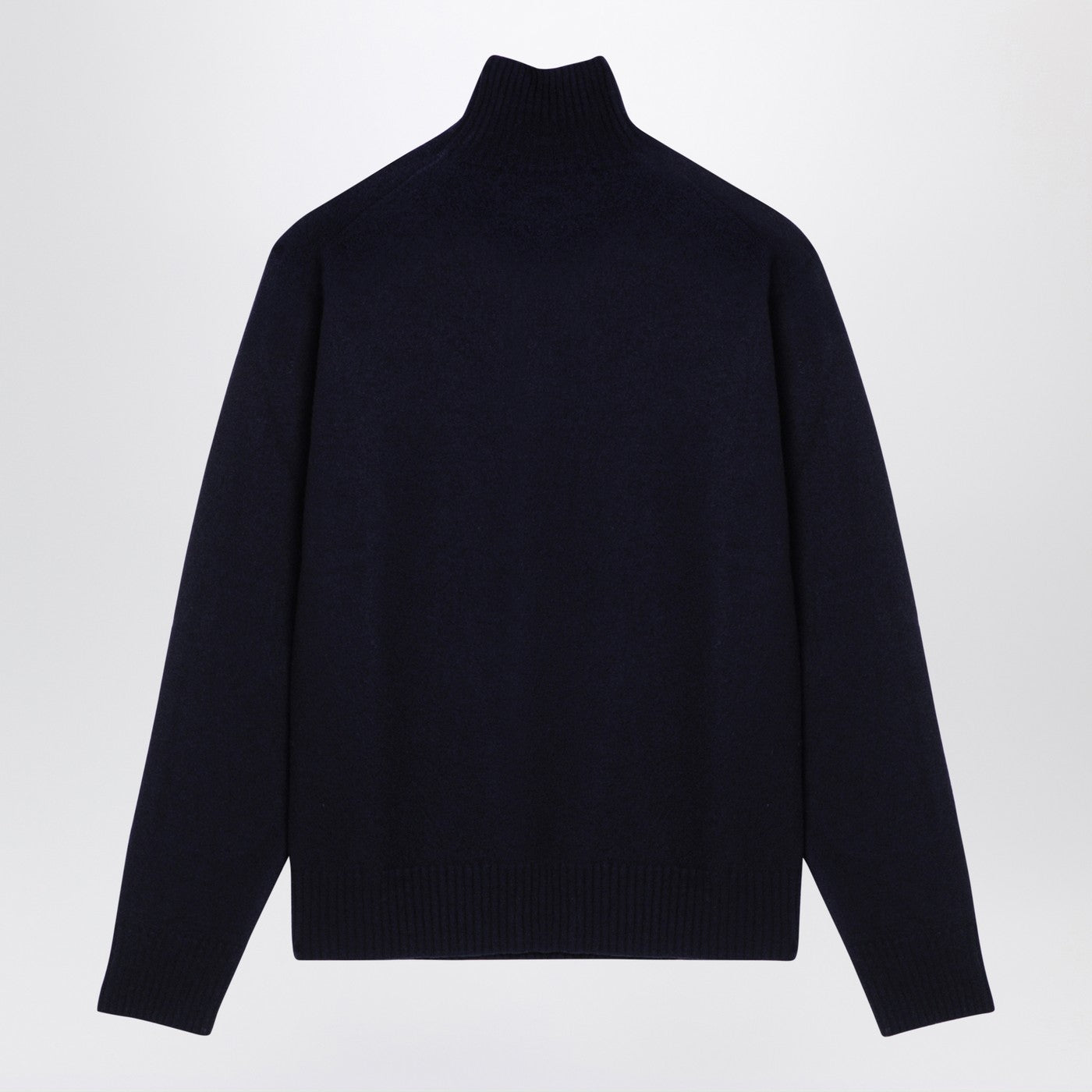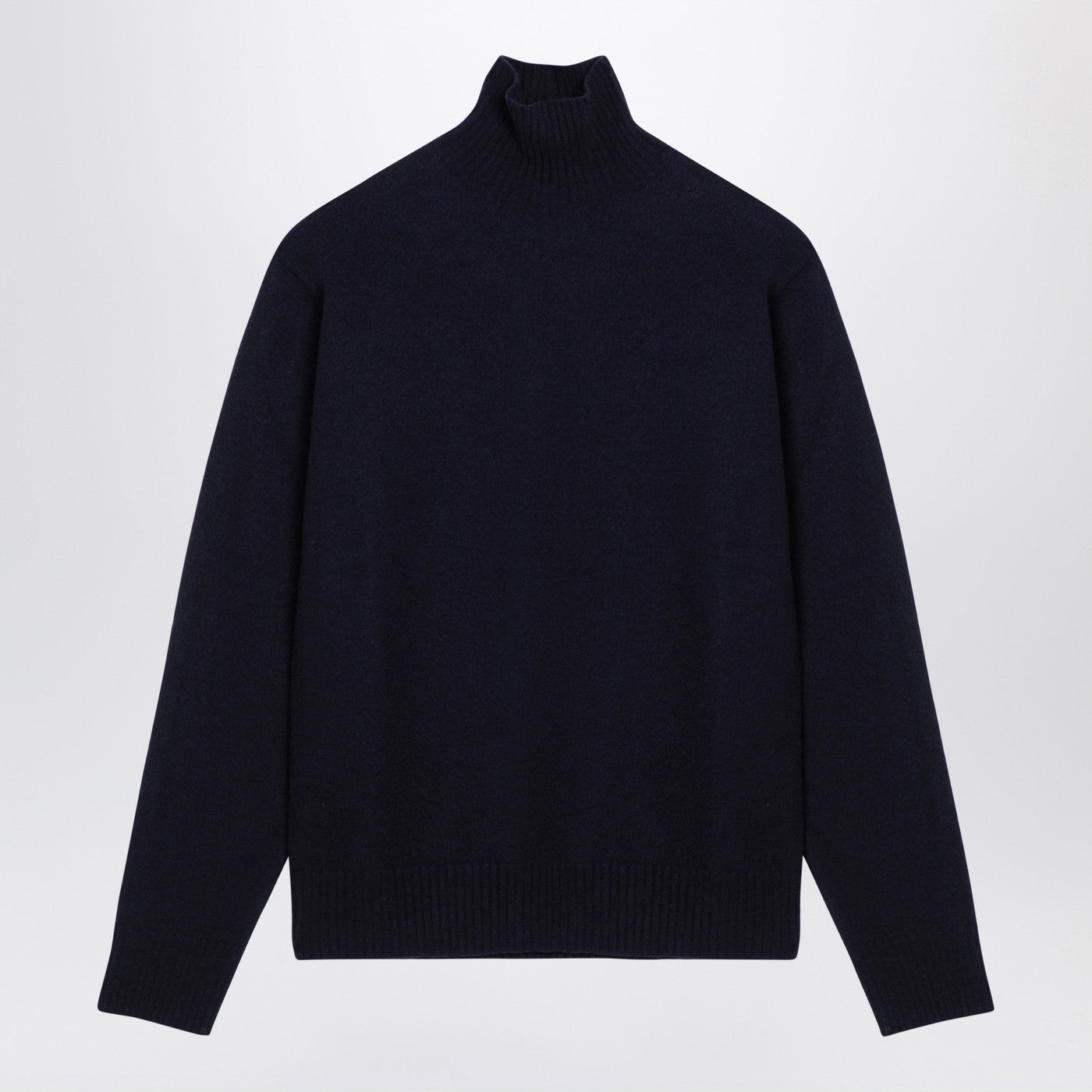 Blue wool jumper from Jil Sander featuring a high collar, long sleeves, ribbed hems and a straight hem.