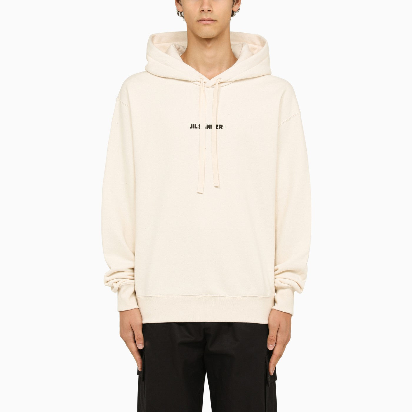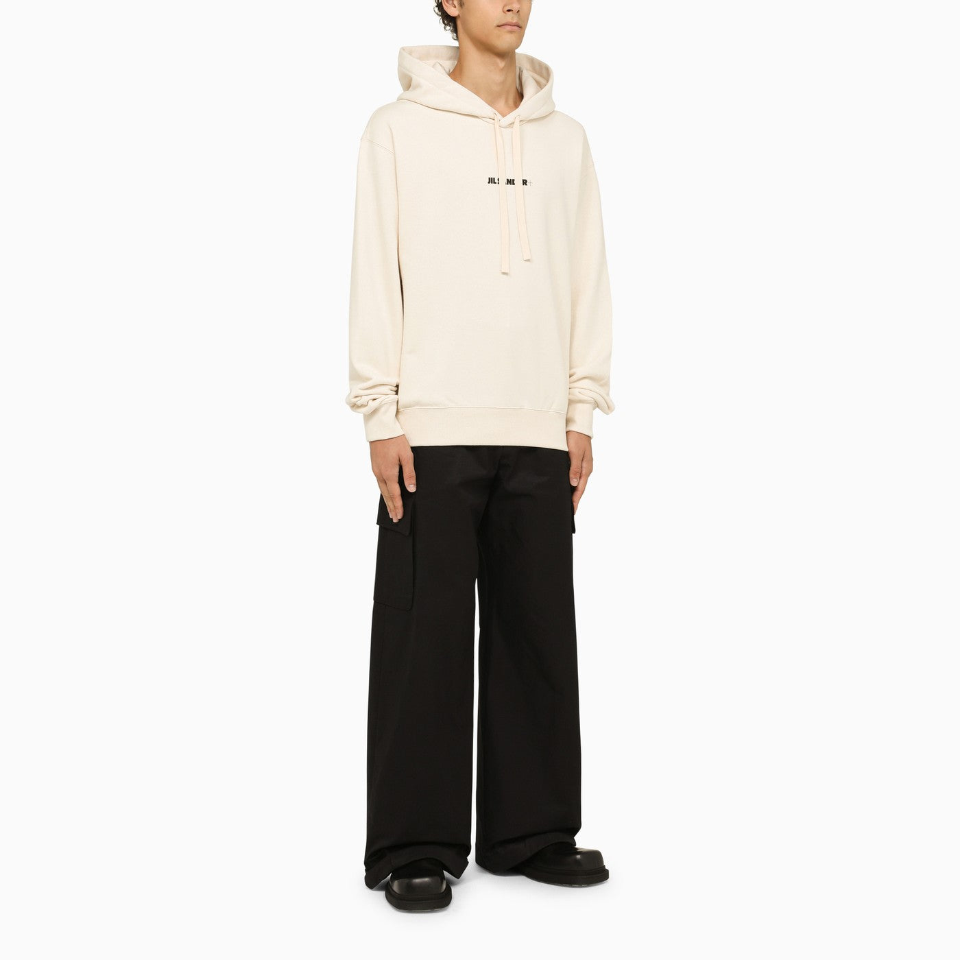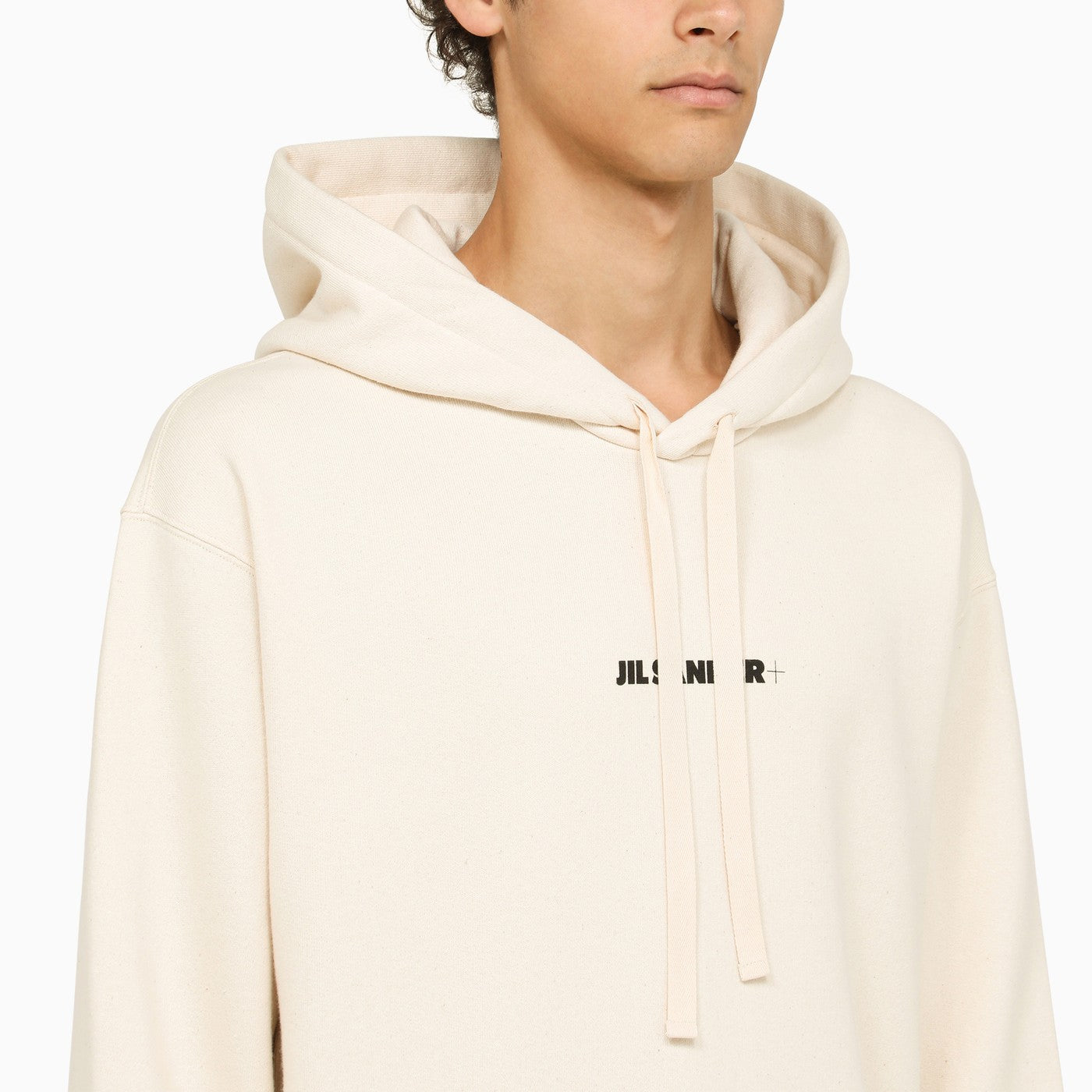 Dune-coloured cotton jersey sweatshirt by Jil Sander with drawstring-adjustable hood and logo on chest.