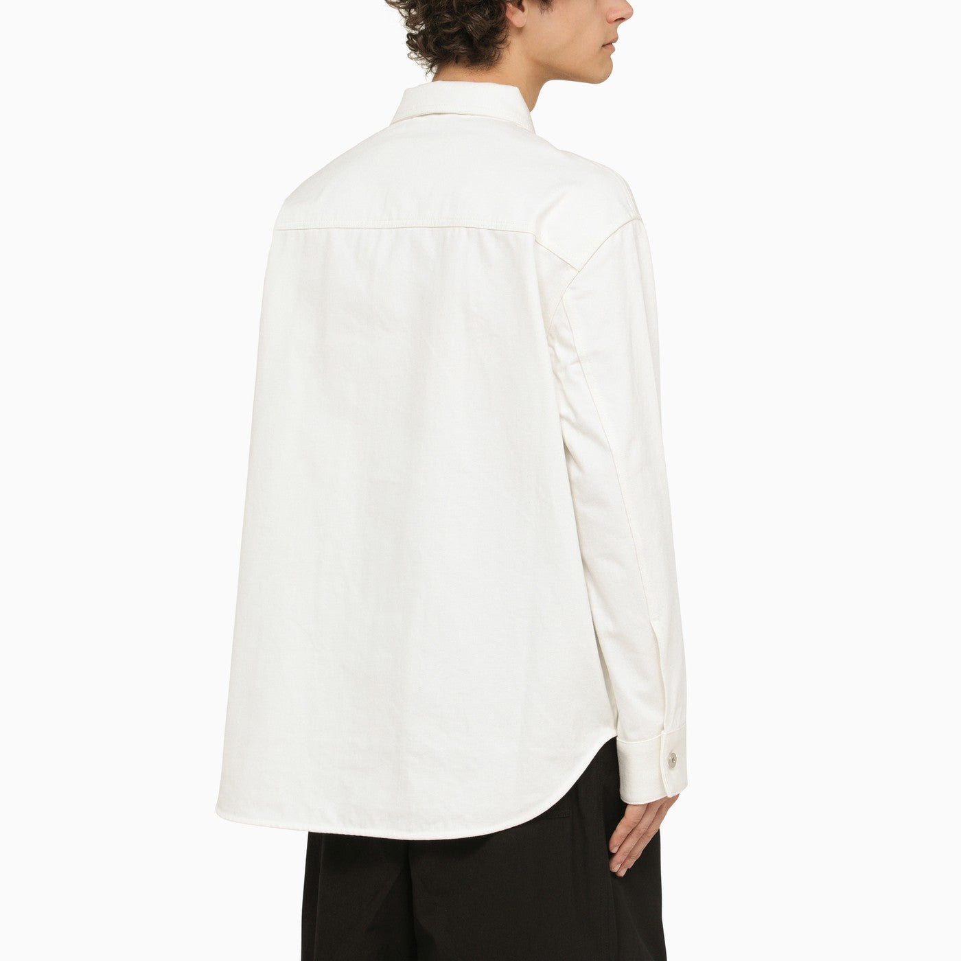 Denim shirt from Jil Sander in white cotton featuring a classic collar, a front button placket, buttoned cuffs, a curved hem and an oversized fit.
