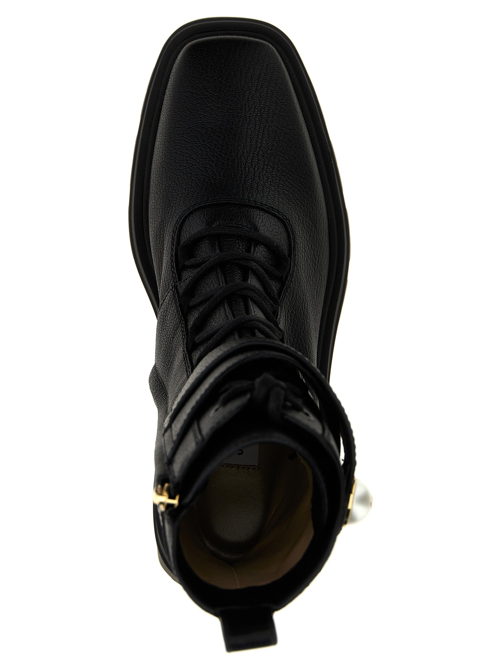 'Noemi' leather ankle boots with laces, side zipper and rubber sole.