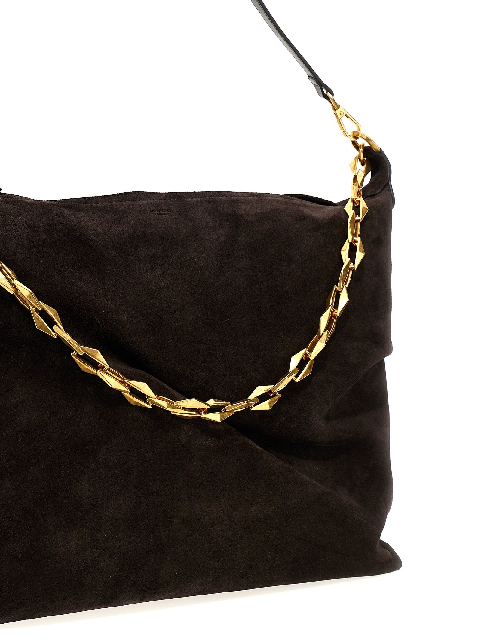 'Diamond Soft Hobo' suede shoulder bag with zip closure, chain handle, removable shoulder strap.