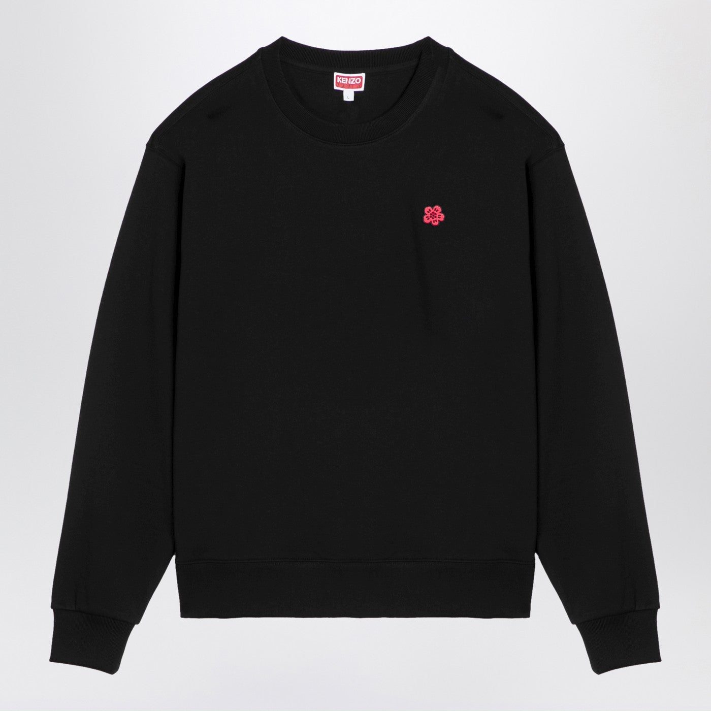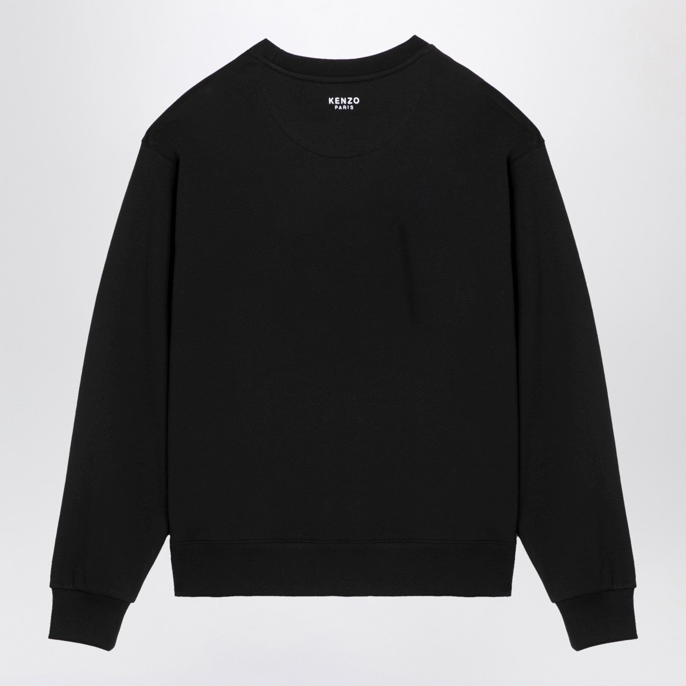 Black cotton sweatshirt from Kenzo featuring a ribbed crew neck, long sleeves, chest patch, contrasting embroidered lettering logo on the back and a straight hem.