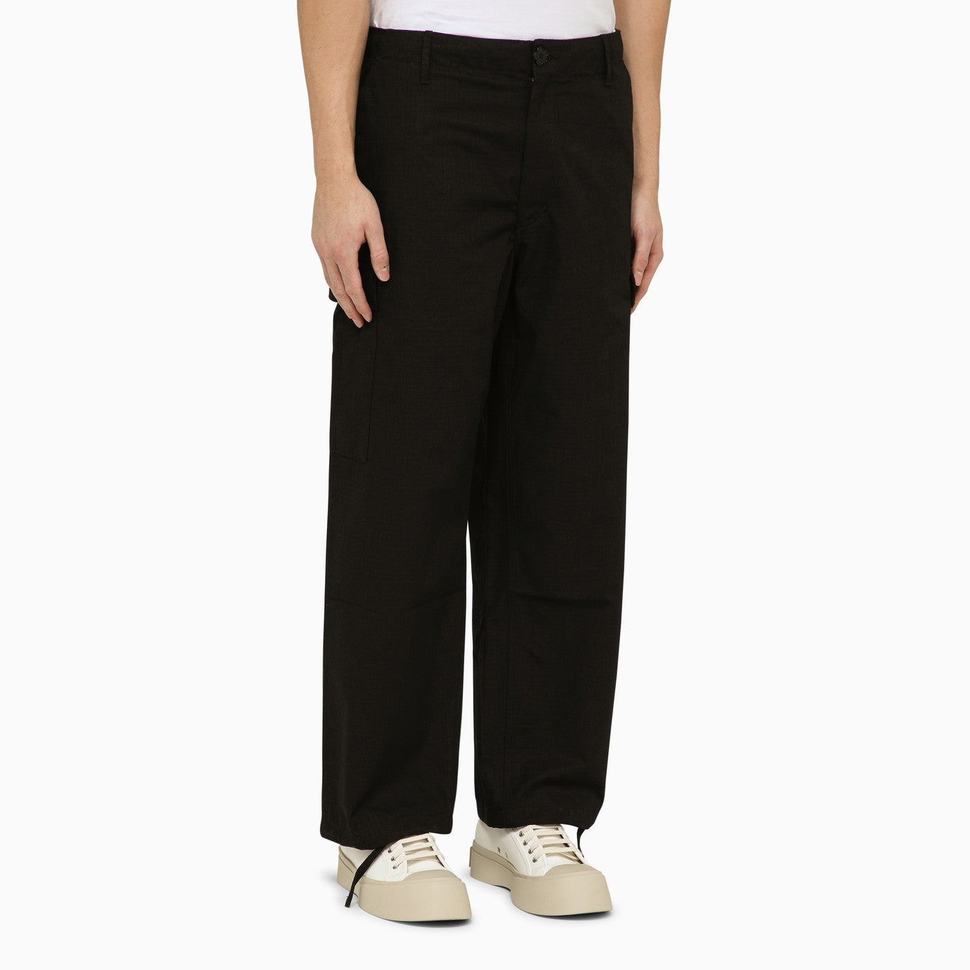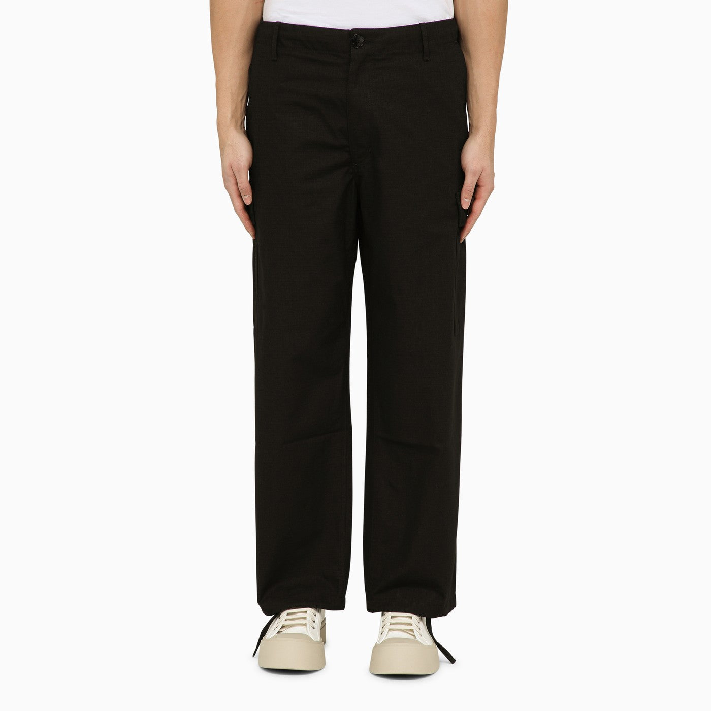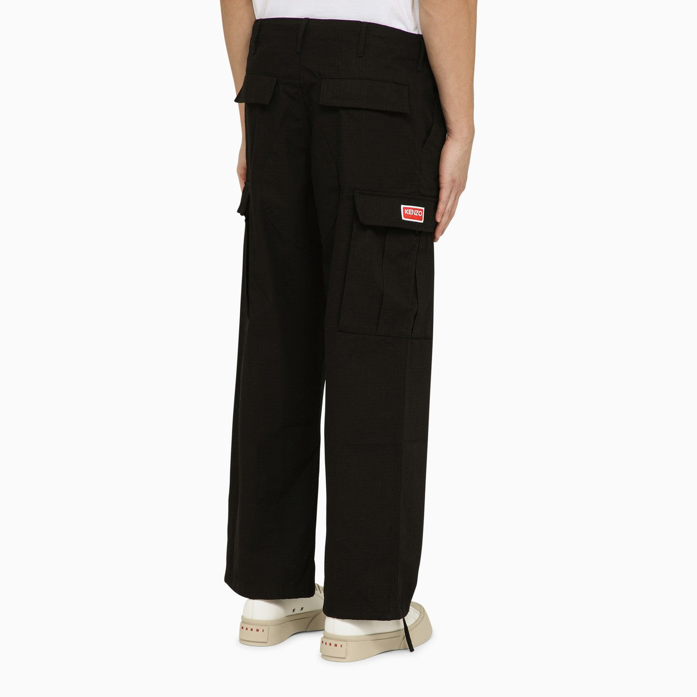 Cargo trousers by Kenzo in black cotton, featuring a low rise, belt loops, welt pockets, back flap pockets, logo-labelled cargo pockets and a drawstring hem.
