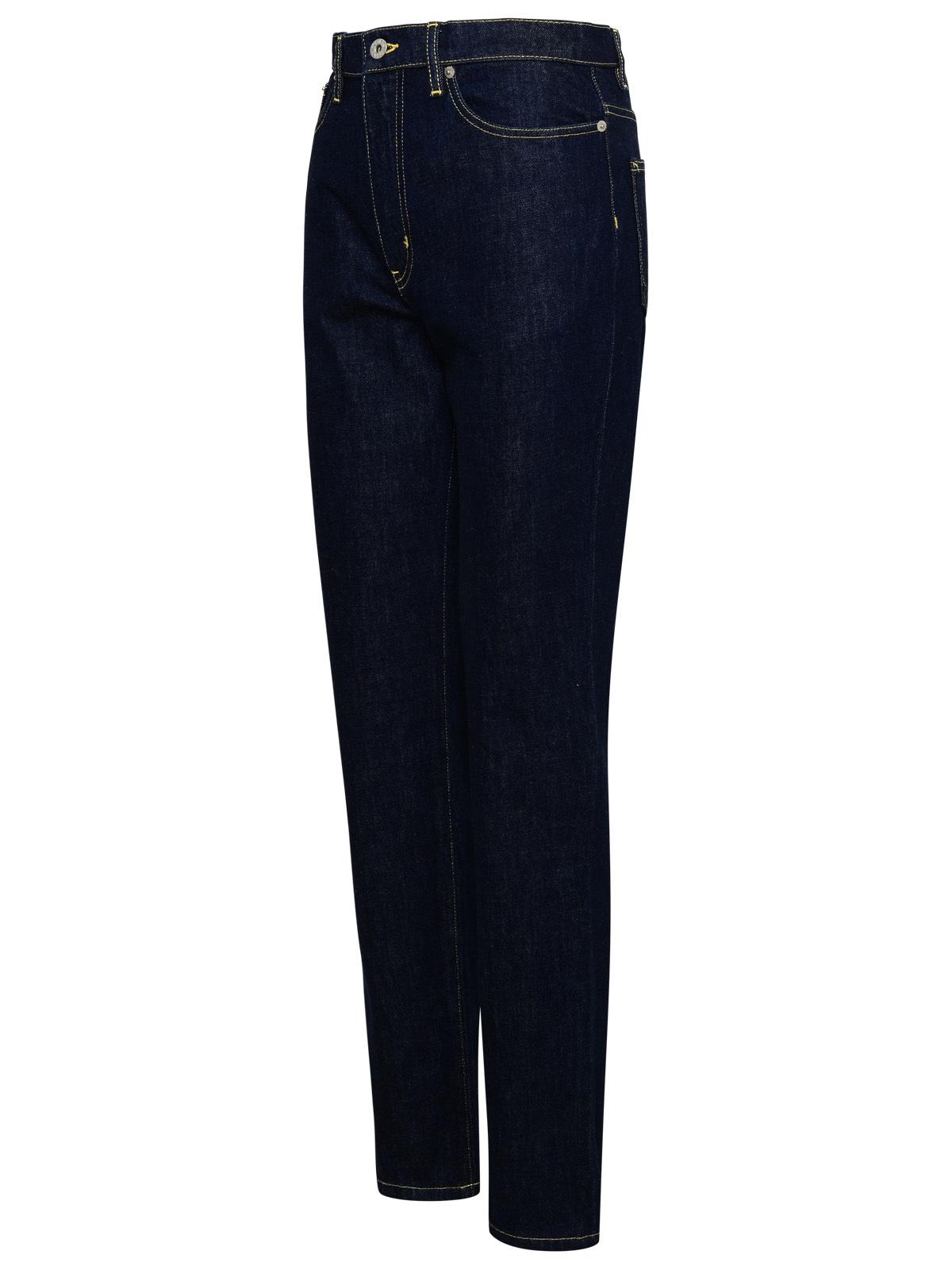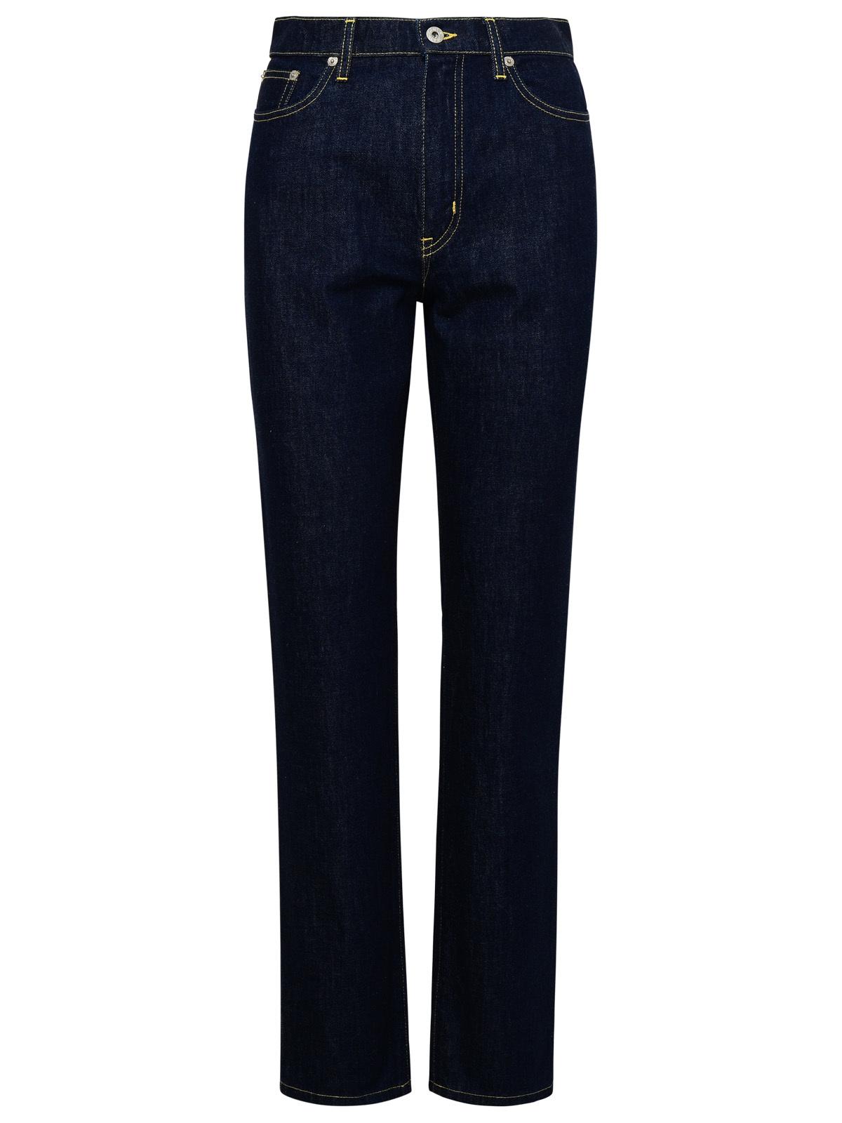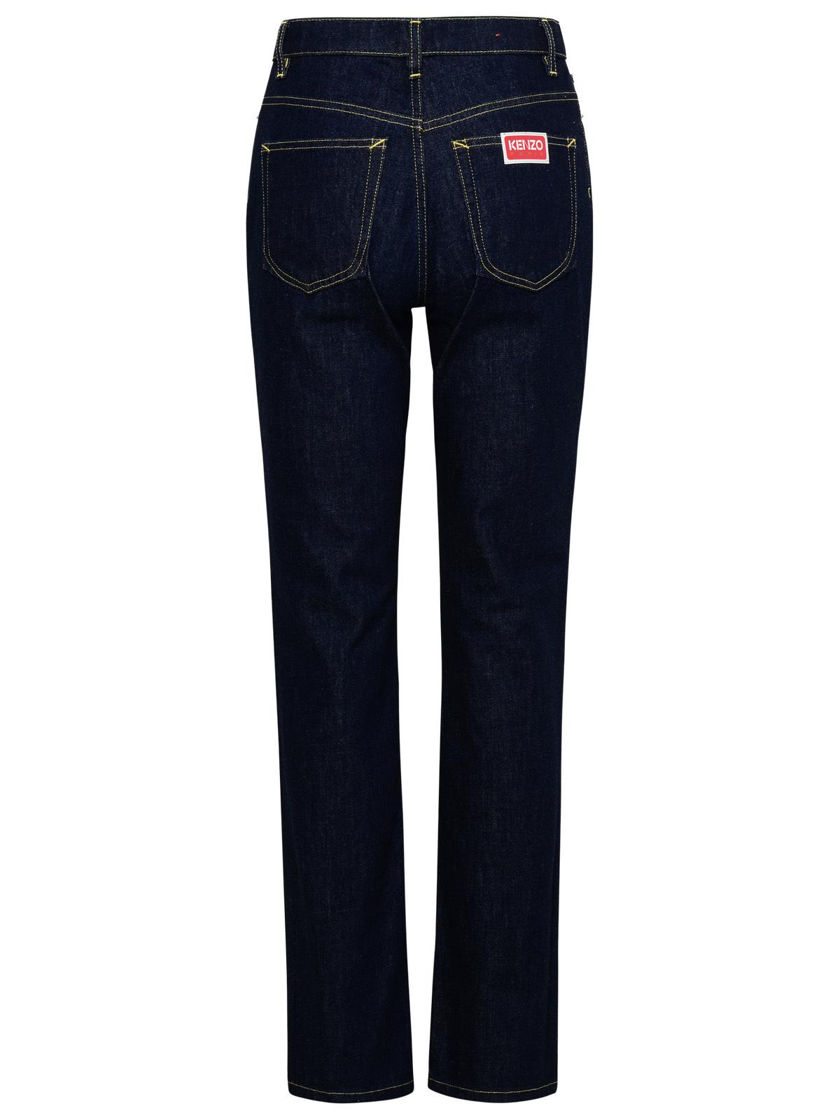 Button and zipper closure, five pockets, and a logo patch appliqué on the back