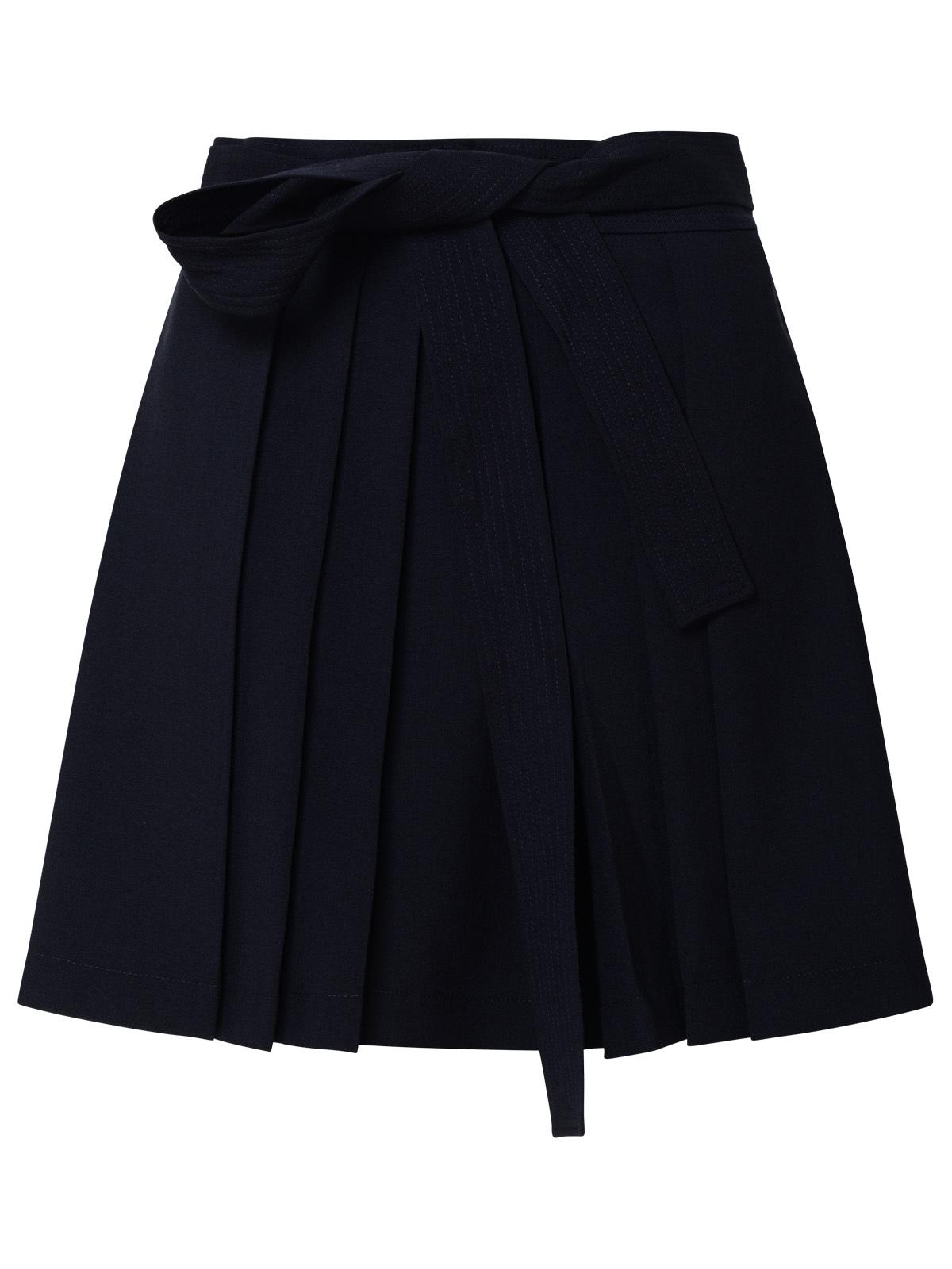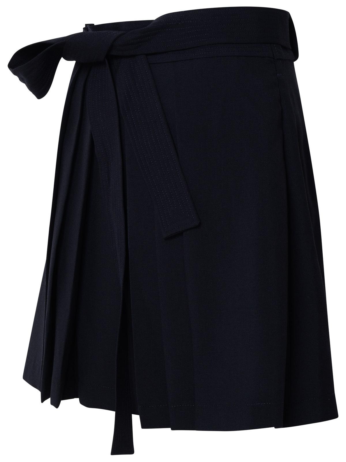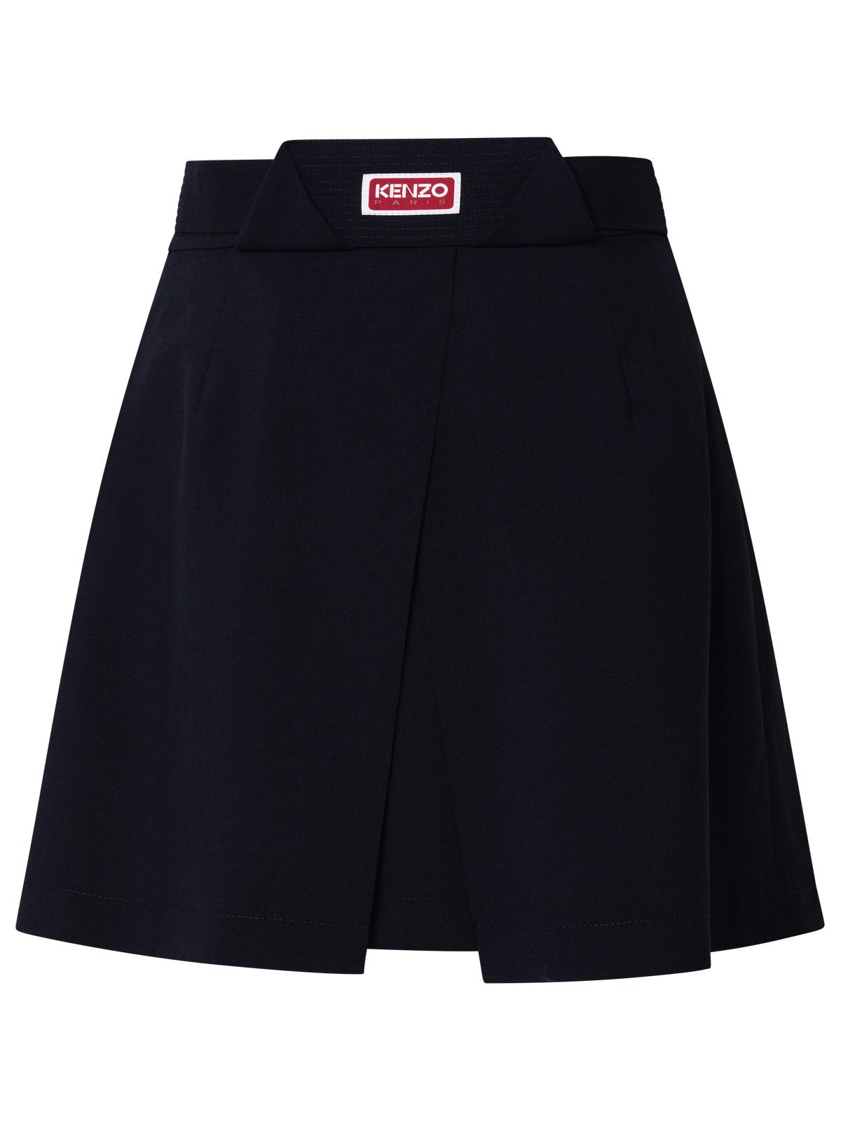 Pleated mini skirt made of virgin wool, belt to tie at the waist, reverse pleats on the back, contrasting 'Kenzo' label applied at the waist at the back