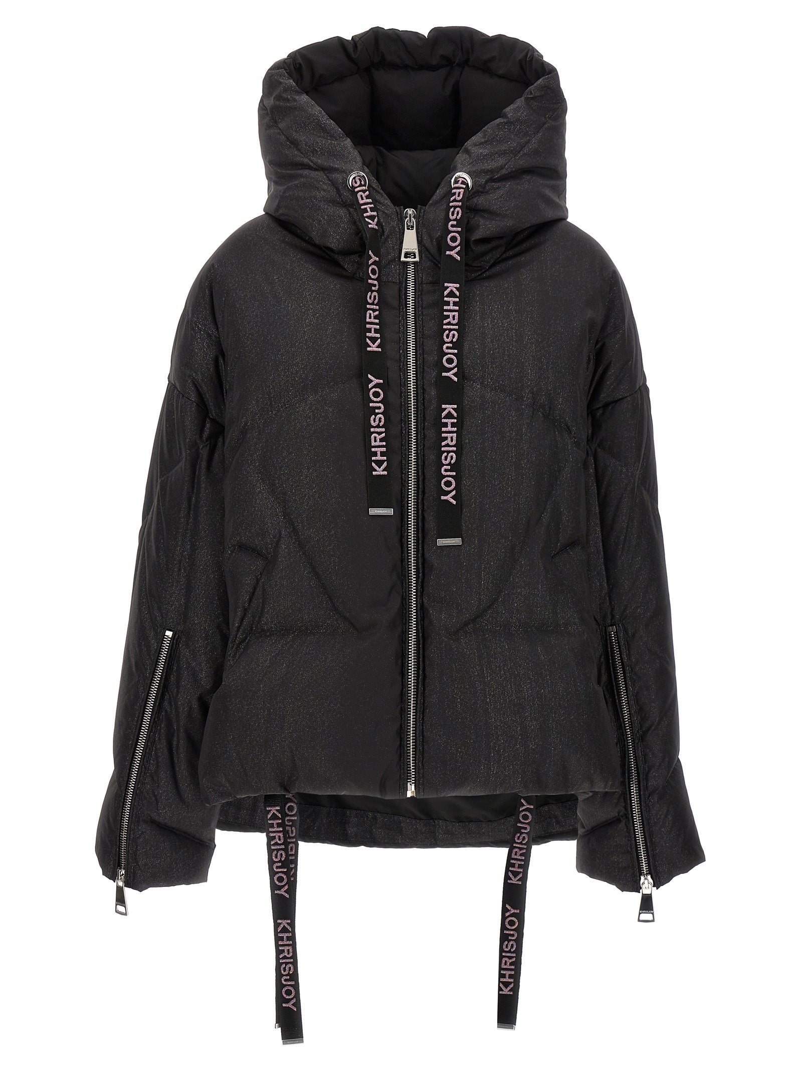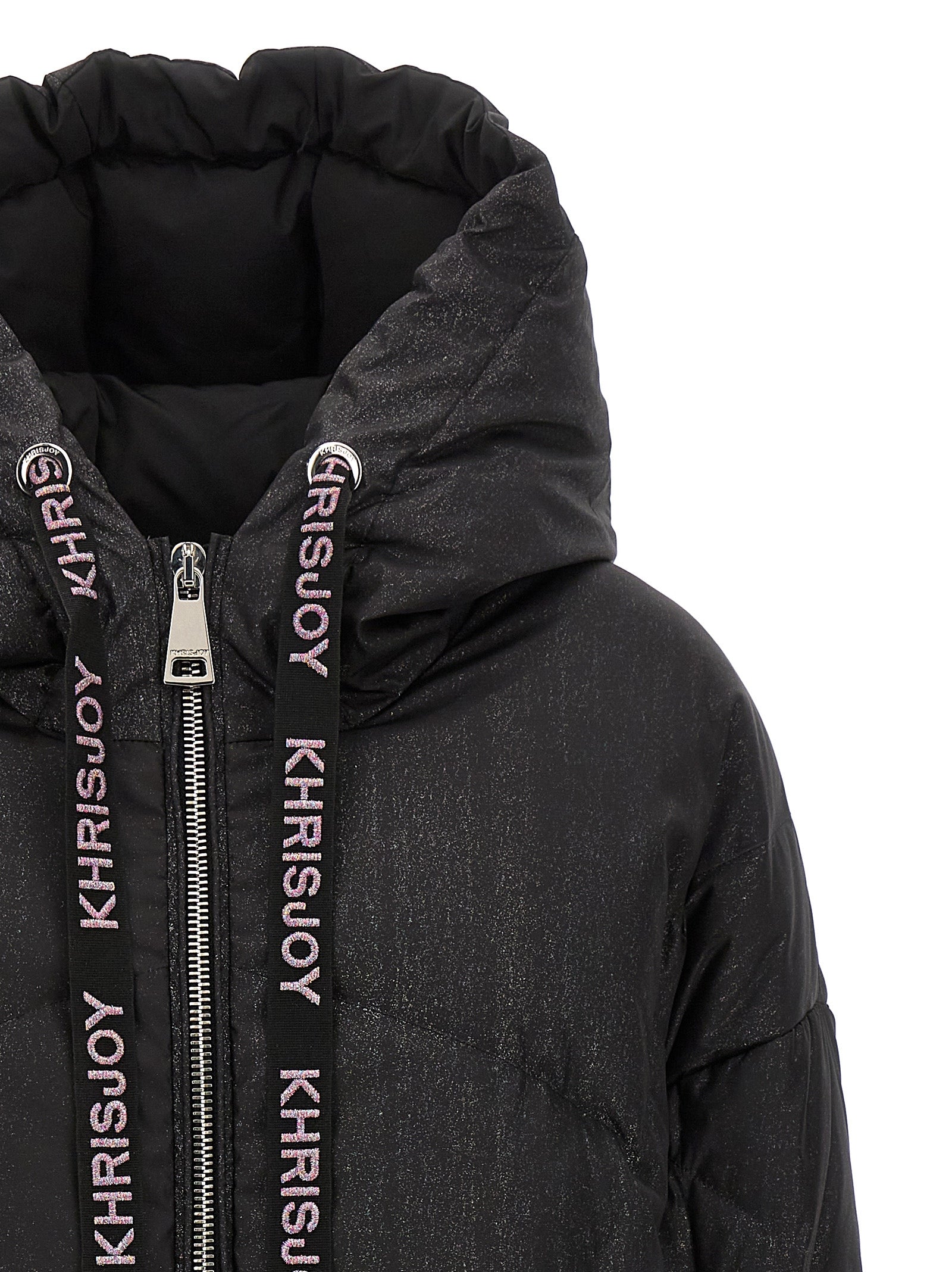 'Puff Khris Iconic Glitter' down jacket in glitter nylon, with down padding, hood, zip closure, pockets, long sleeves with zip detail, logo laces, drawstring on the bottom.