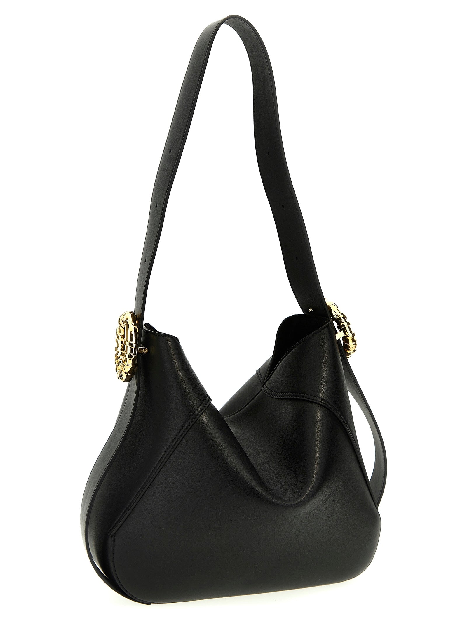 'Melodie Hobo' leather shoulder bag with magnetic closure, top handle with metal details.