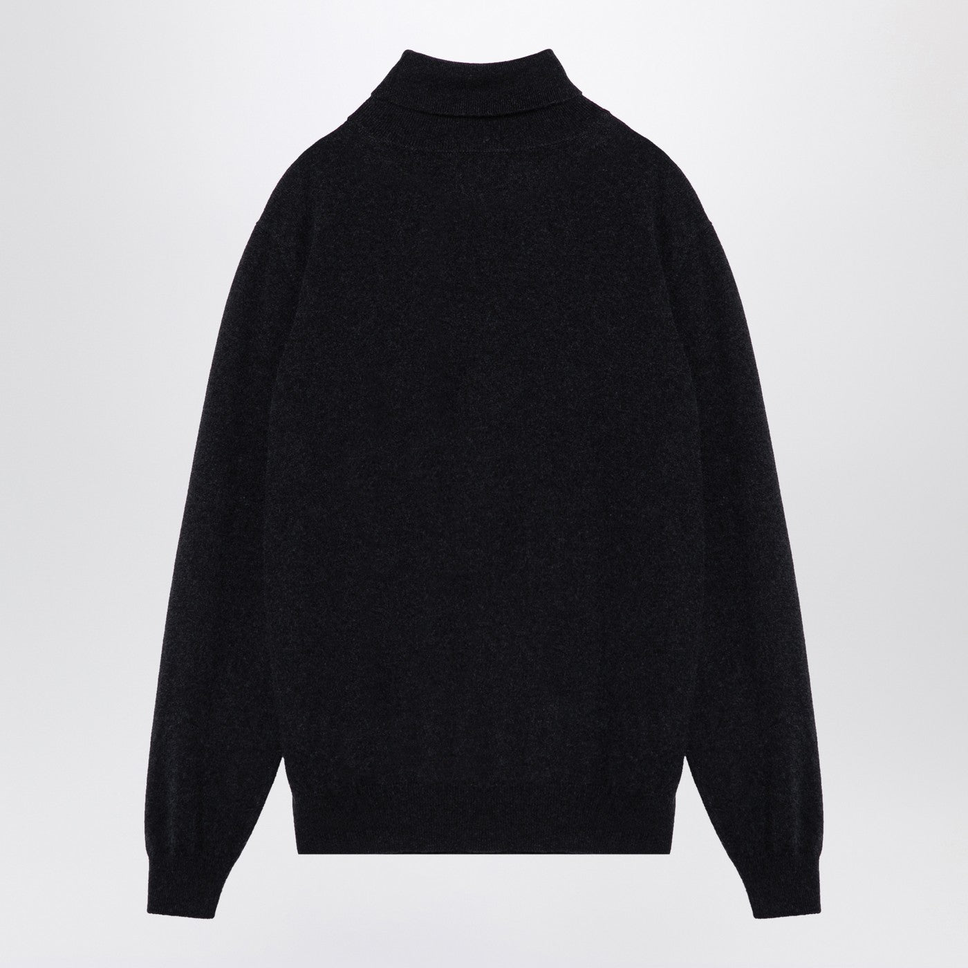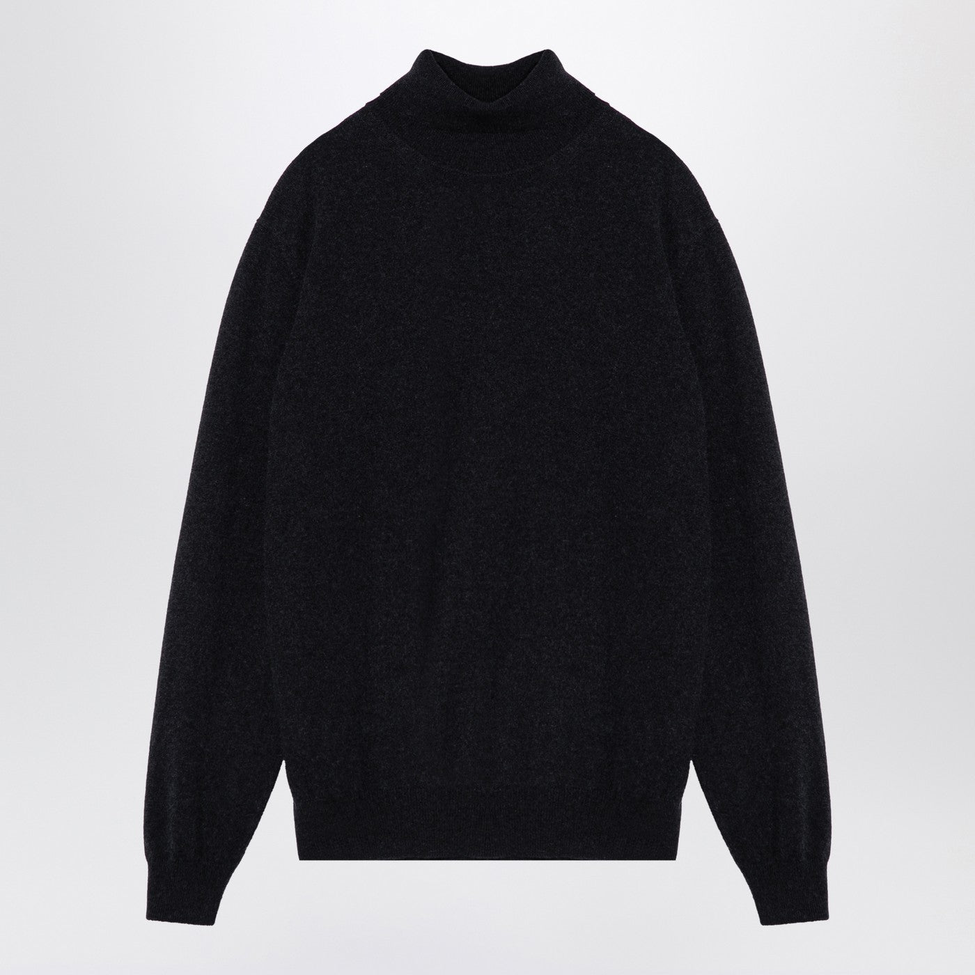 Dark grey cashmere sweater by Loro Piana, features a high collar, long sleeves and ribbed edges.