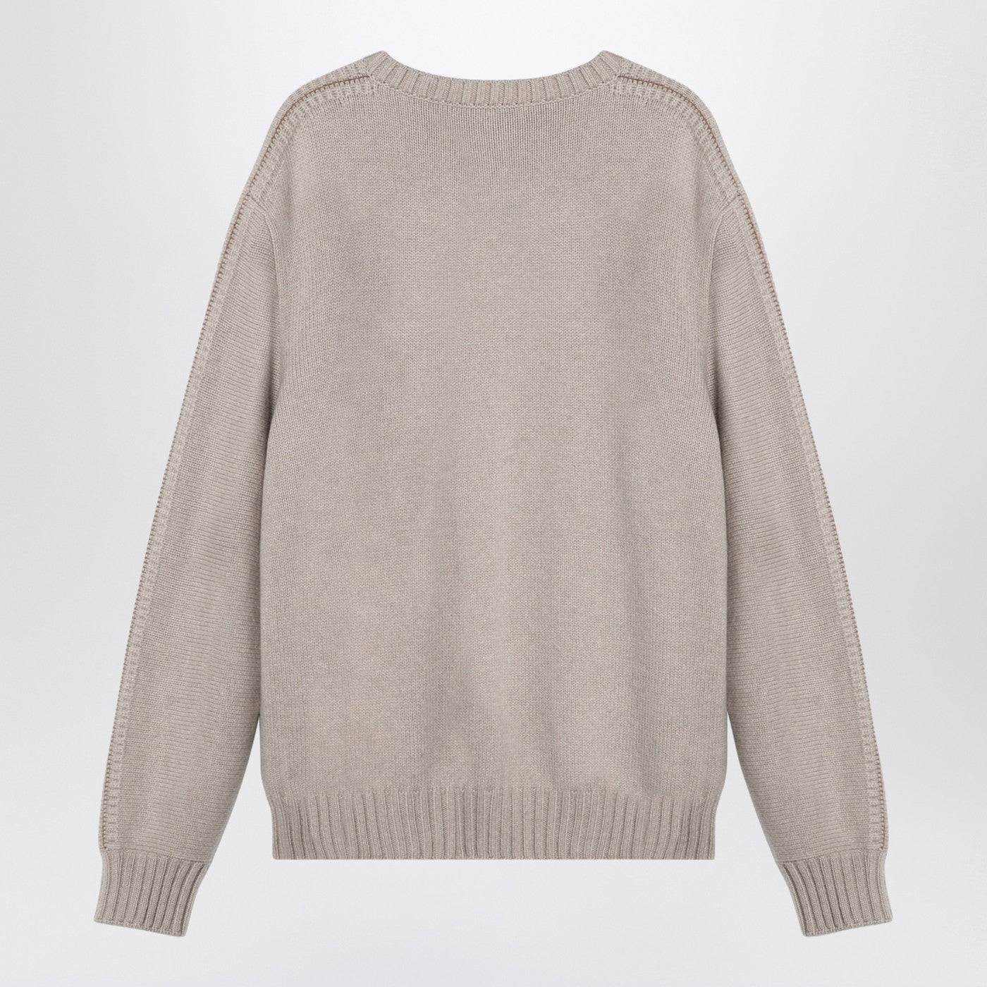 Ivory cashmere crew-neck sweater from Loro Piana featuring long sleeve detail, ribbed hems and straight hem.