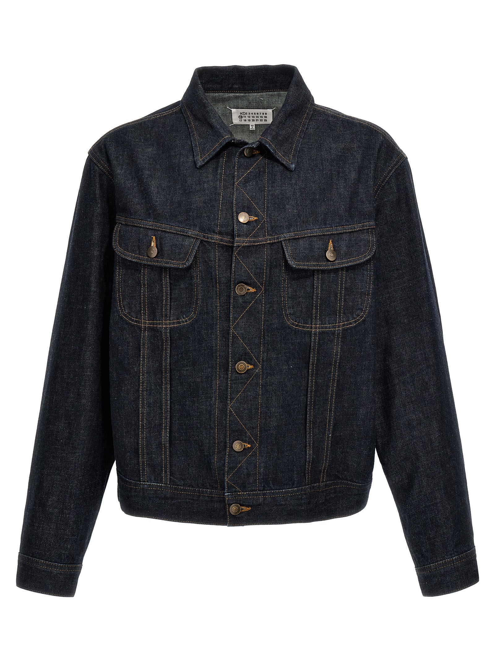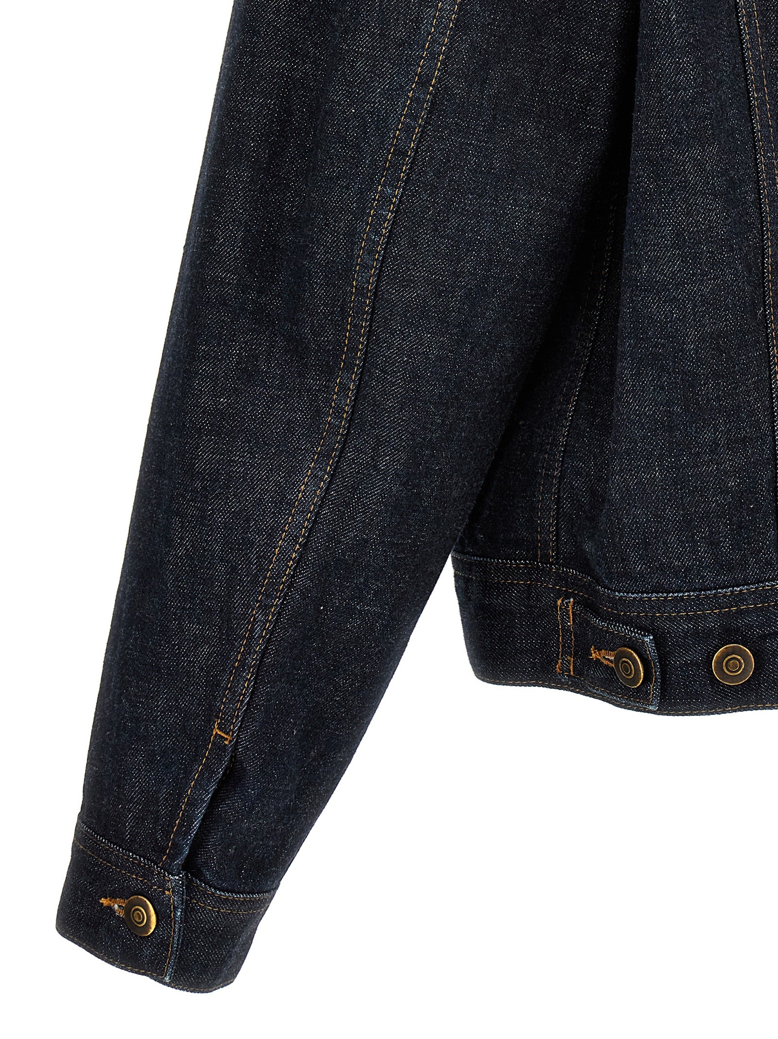 Cotton denim jacket, pockets, button closure, long cuffed sleeves.