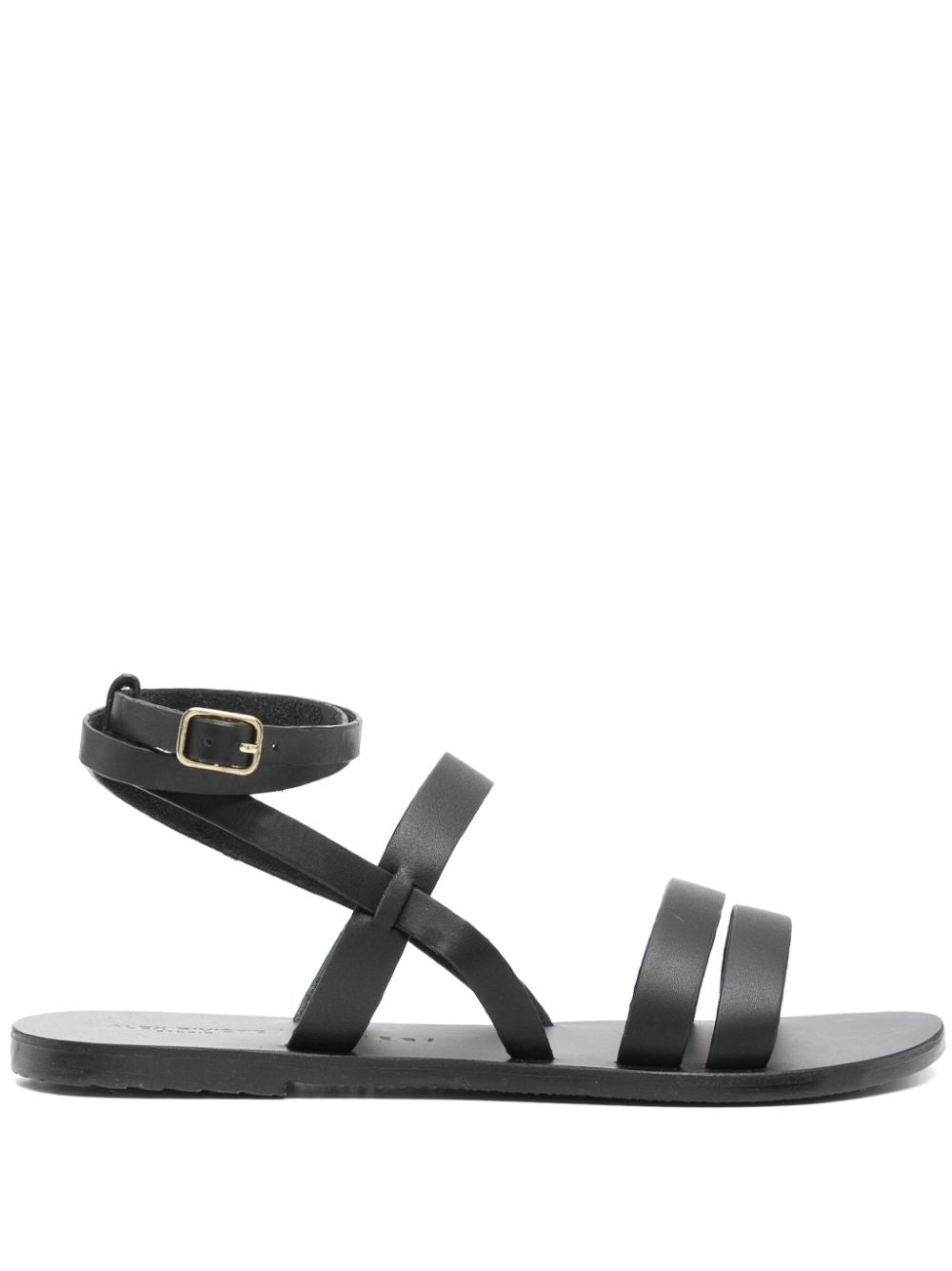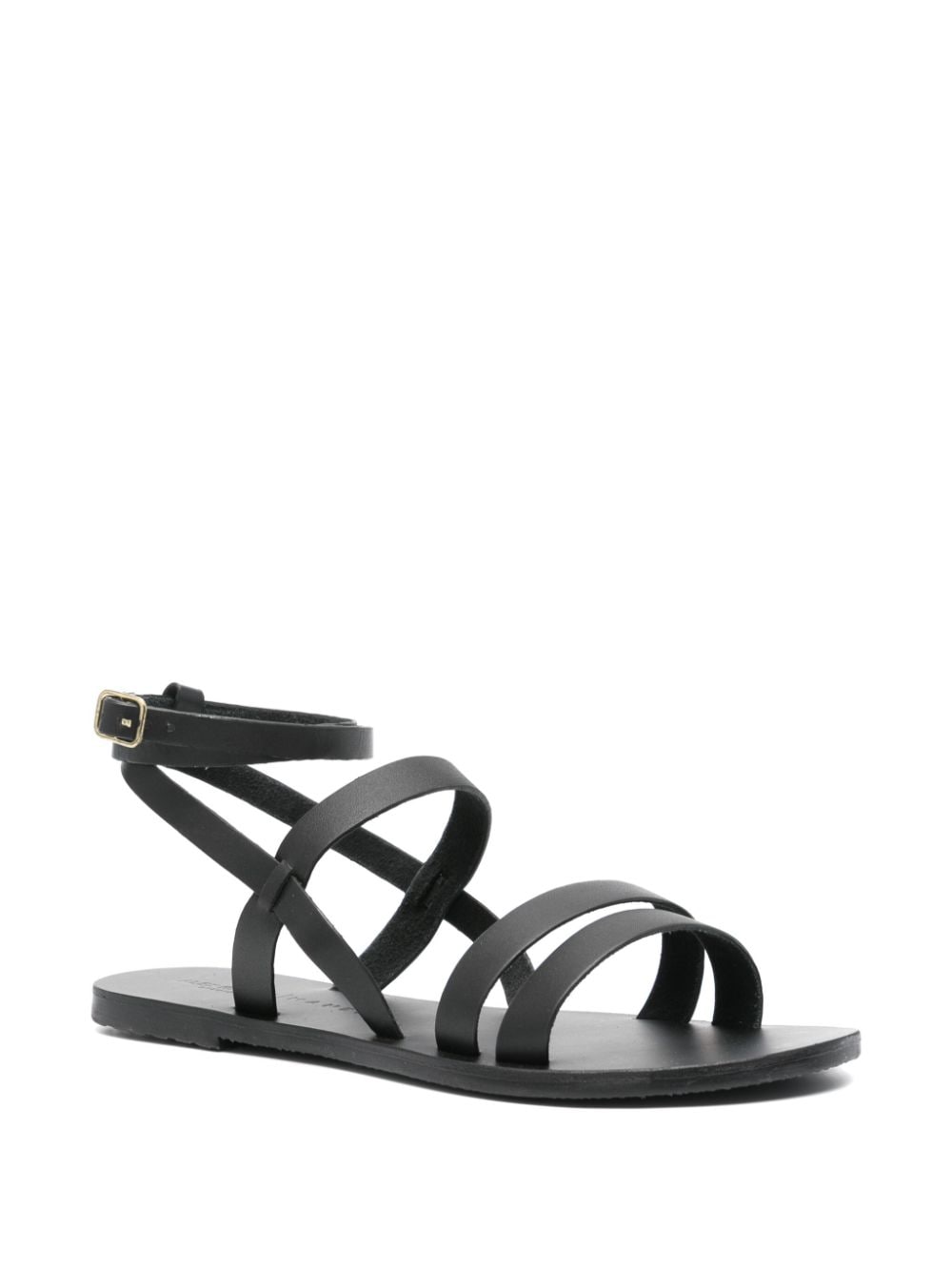 black calf leather smooth grain almond open toe double-strap design branded leather insole rubber sole lace-up detailing buckle fastening