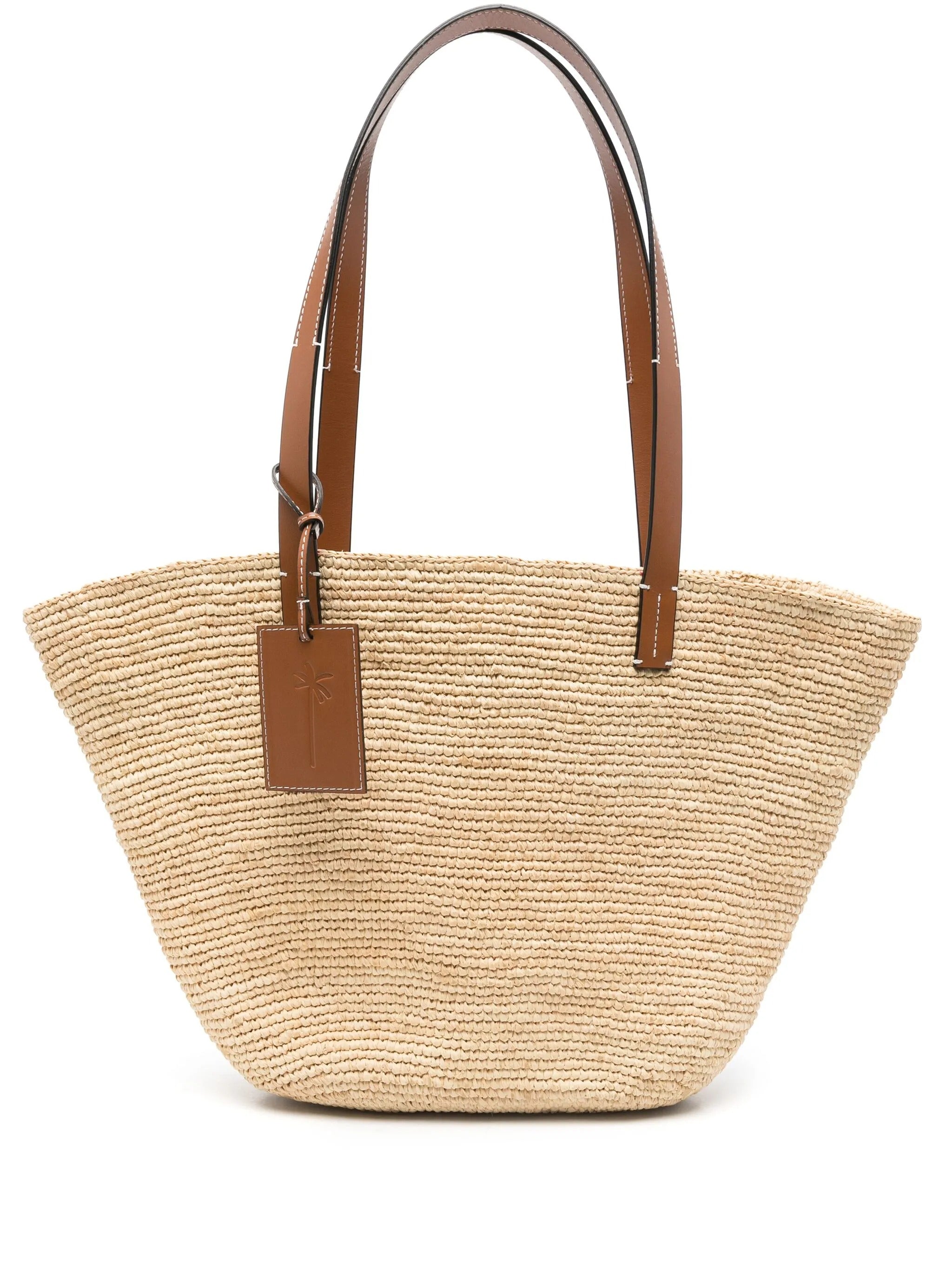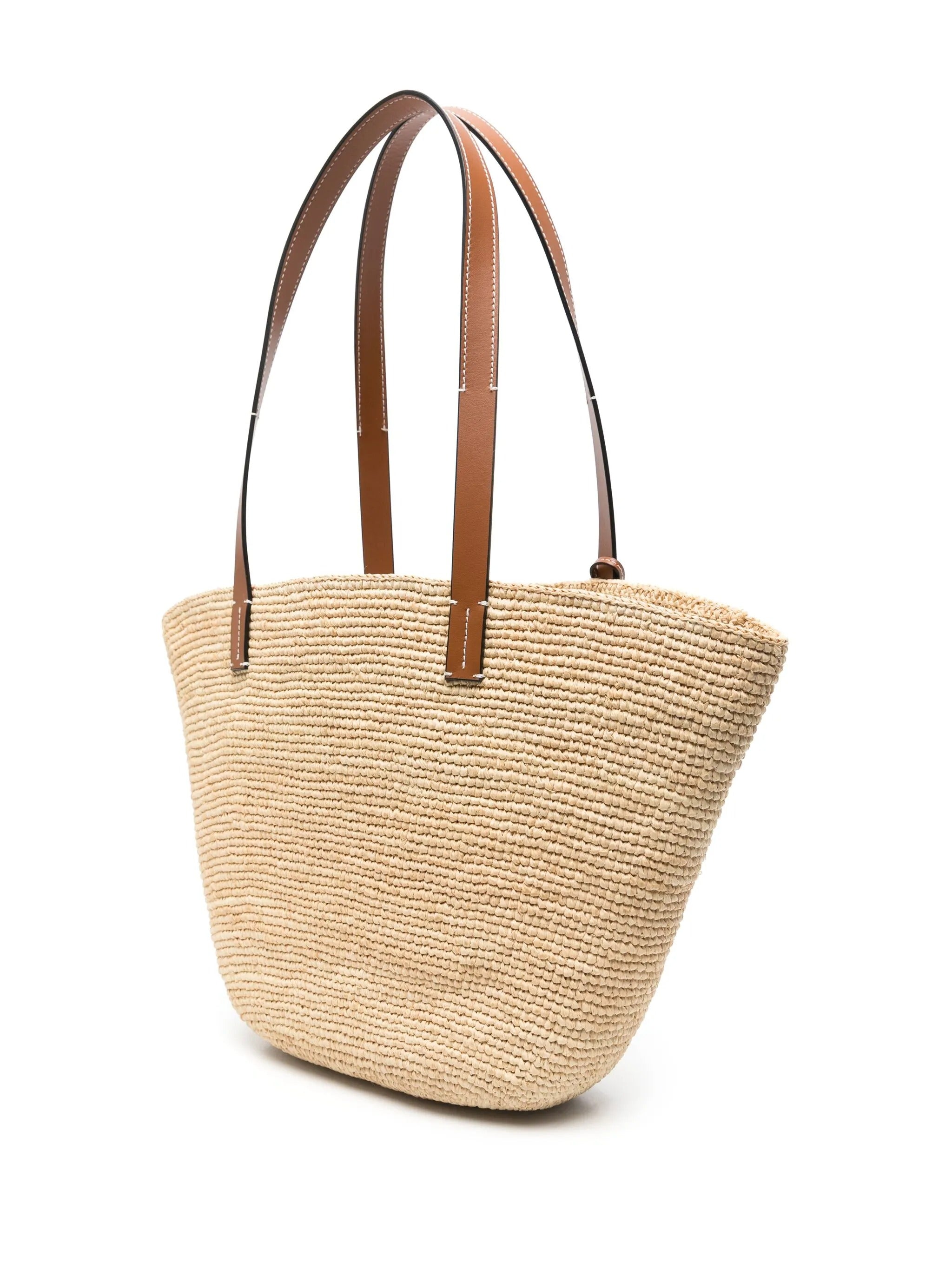 Raffia Outer: Calf Leather 100%, Raffia 100% DEPTH 11 cm HANDLE 28 cm HEIGHT 28 cm WIDTH 46 cm