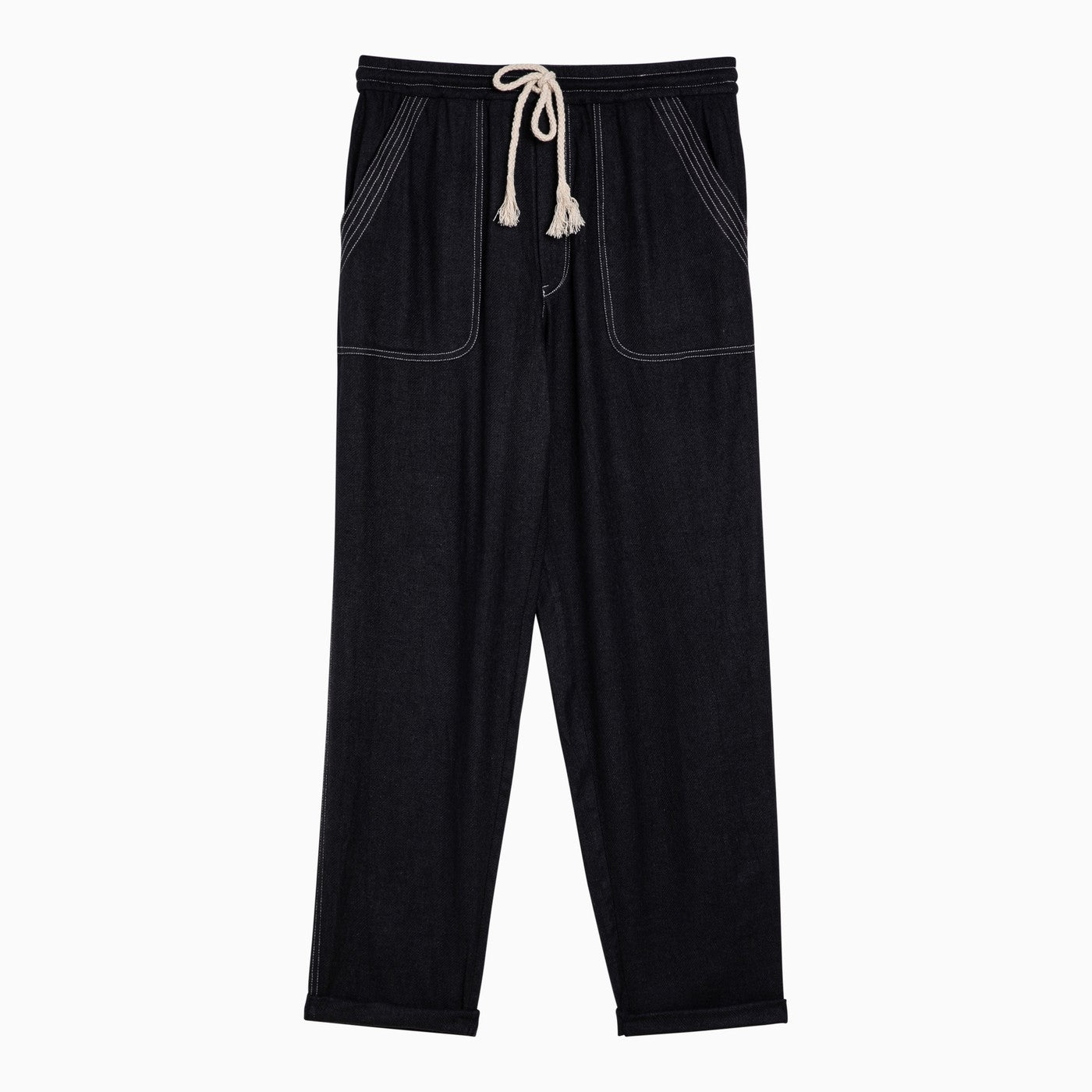 Black silk Isabel Marant Étoile trousers featuring an elasticated waistband with rope drawstring, contrast stitching, two front welt pockets and two back pockets.