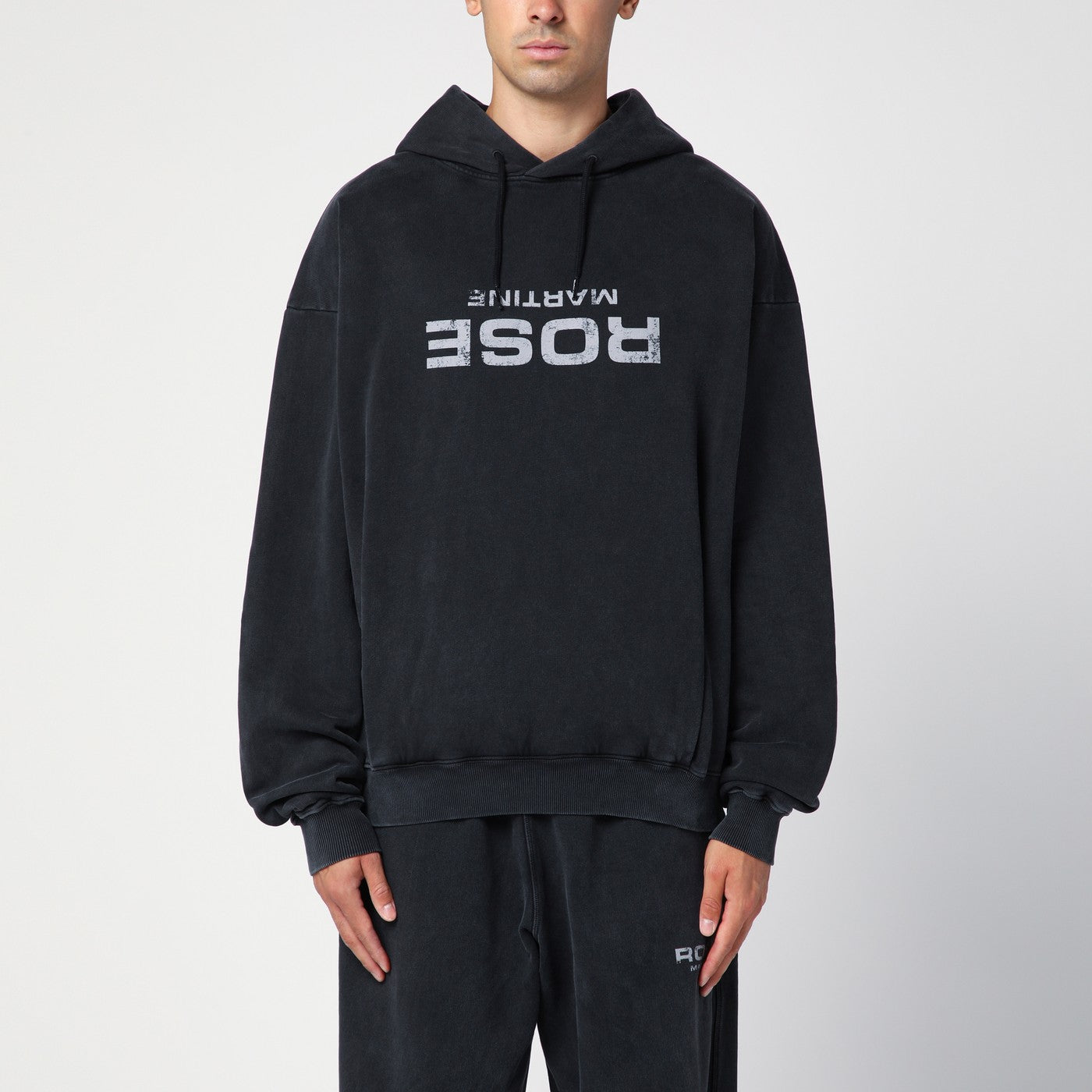 Black cotton sweatshirt from Martine Rose featuring long sleeves, contrasting chest lettering, drawstring hood and ribbed edges.