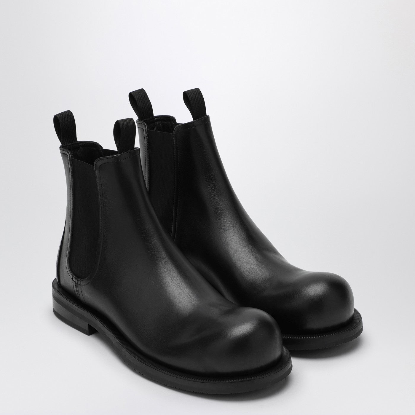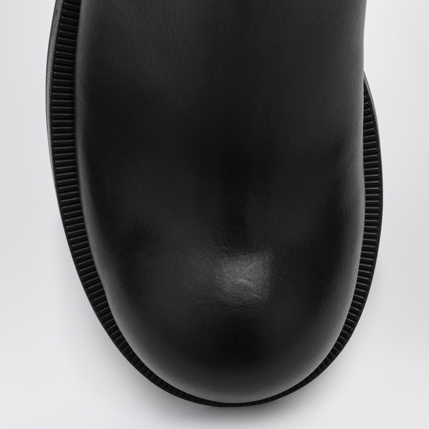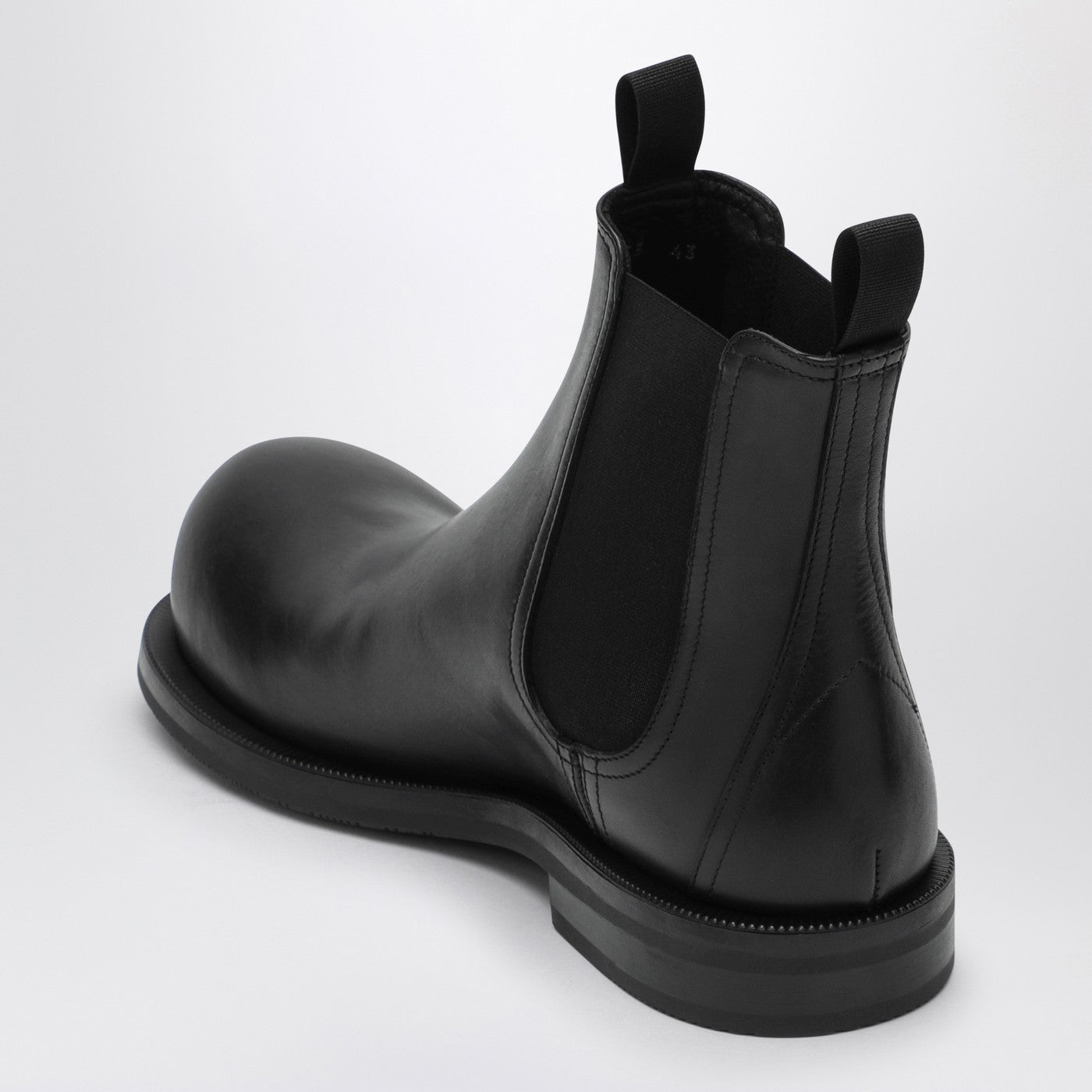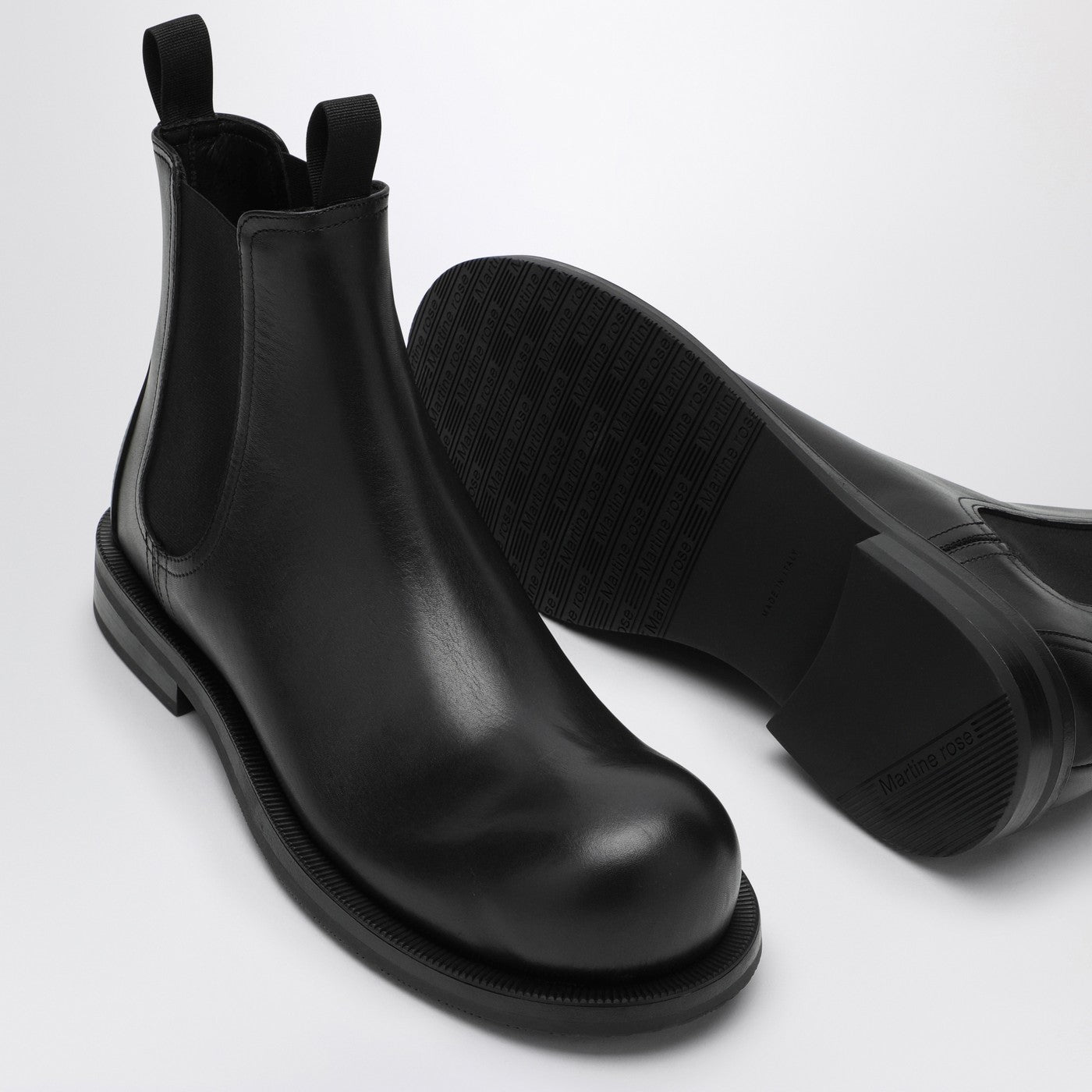 Black leather ankle boot by Martine Rose featuring a round toe, double puller, elastic insert at the side and a rubber sole.
