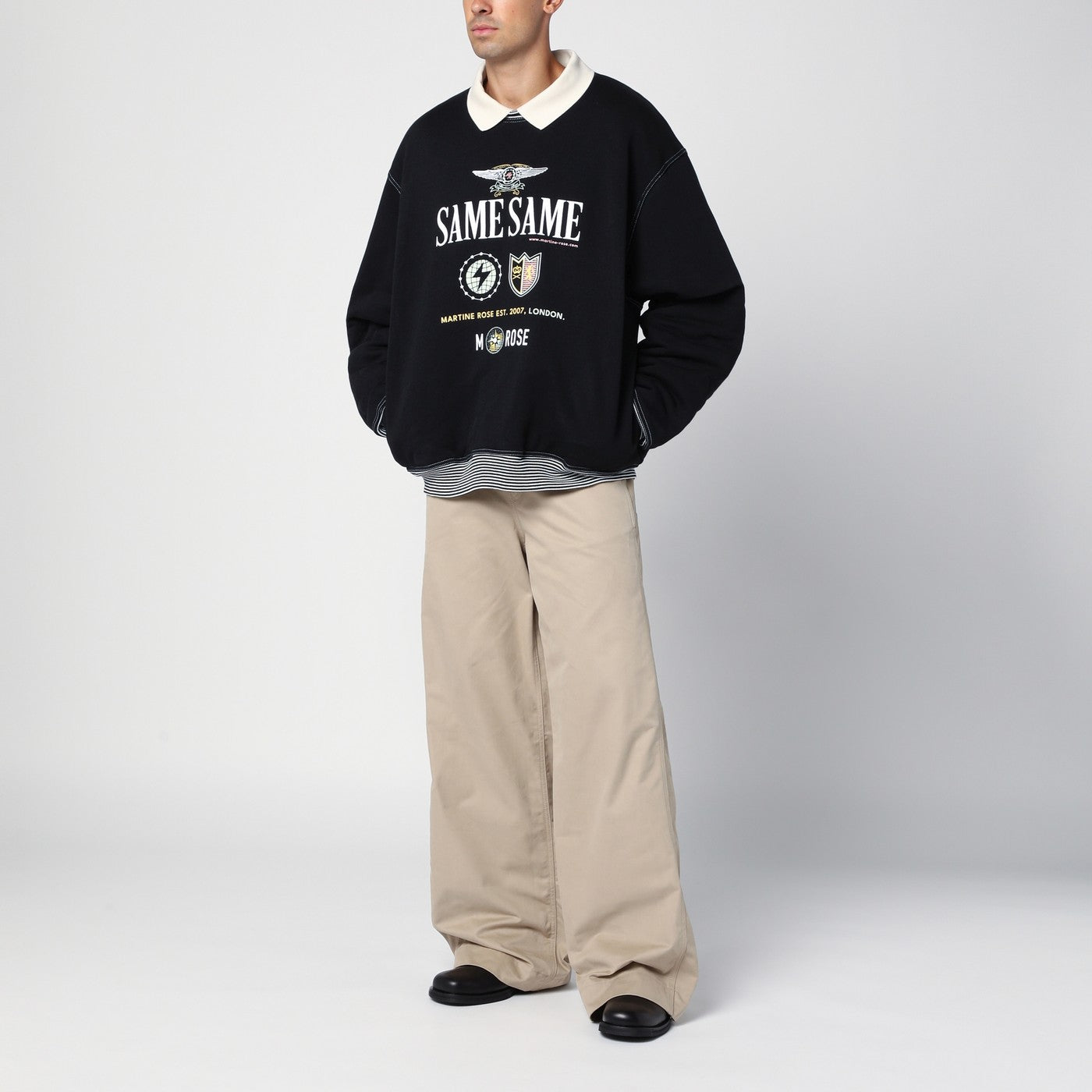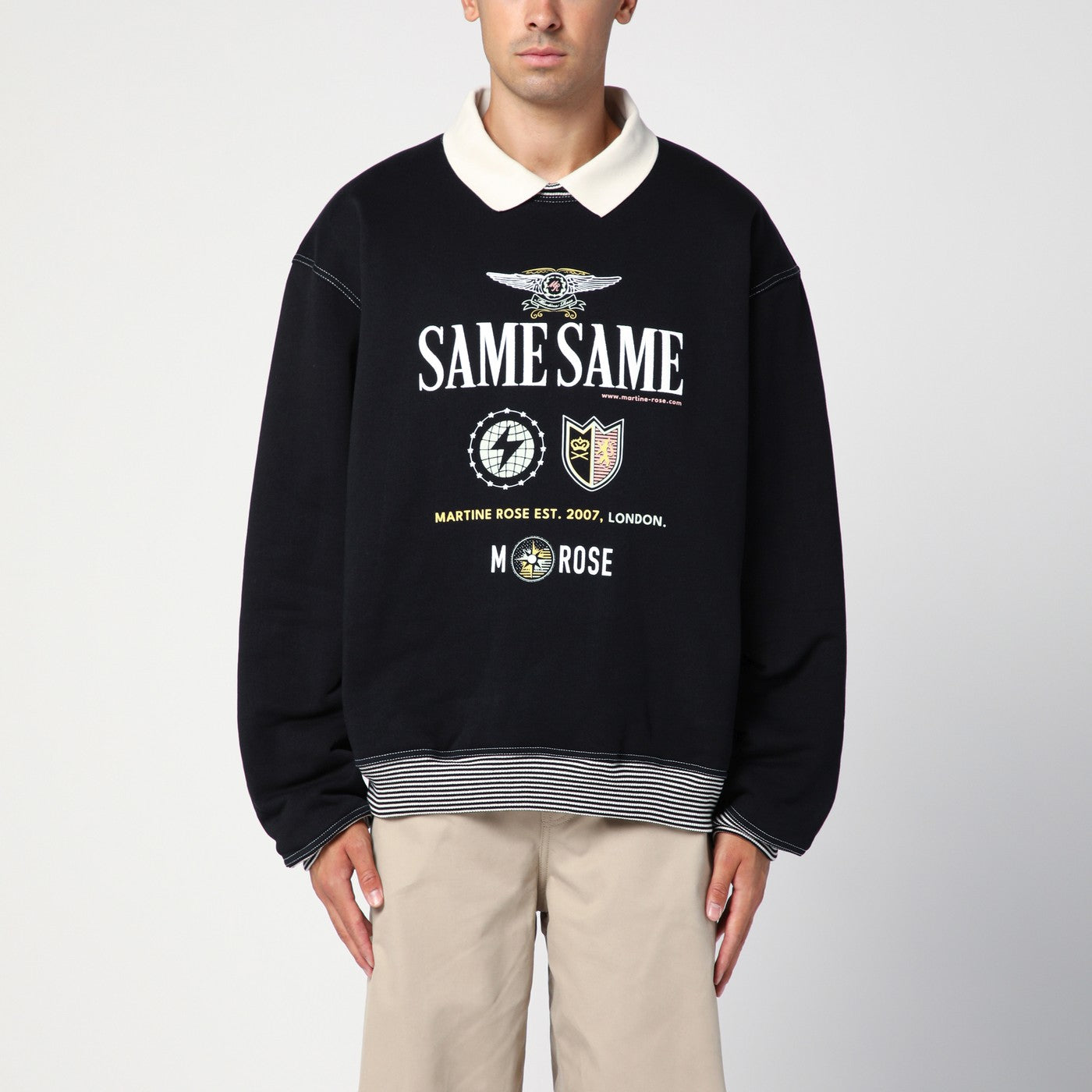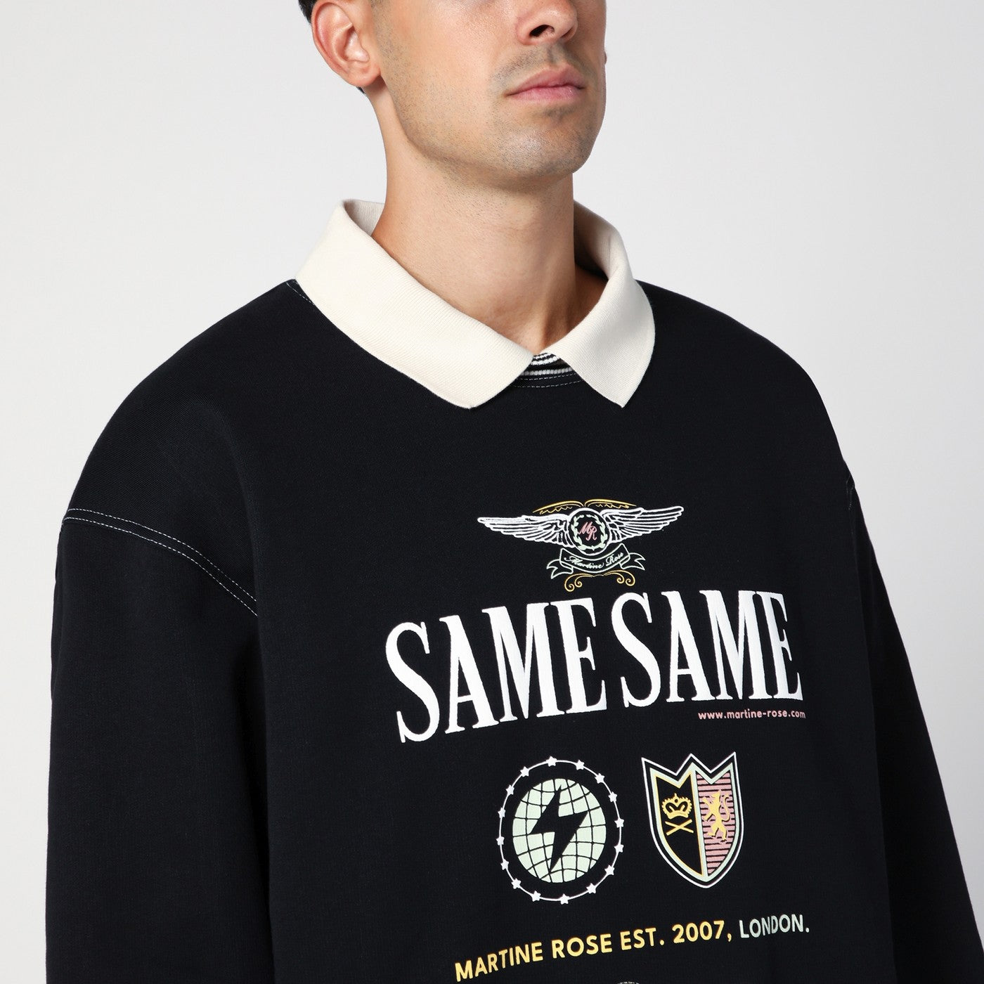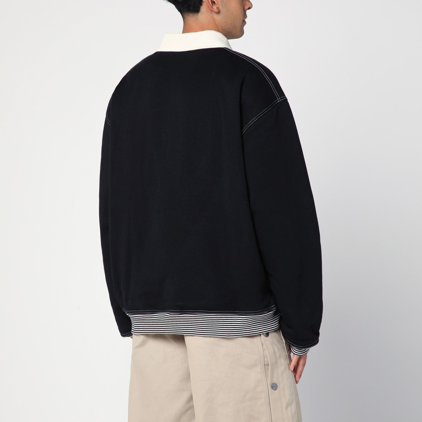 Black cotton sweatshirt from Martine Rose featuring a contrasting polo collar, long sleeves, logo print on the front and striped ribbed edges.