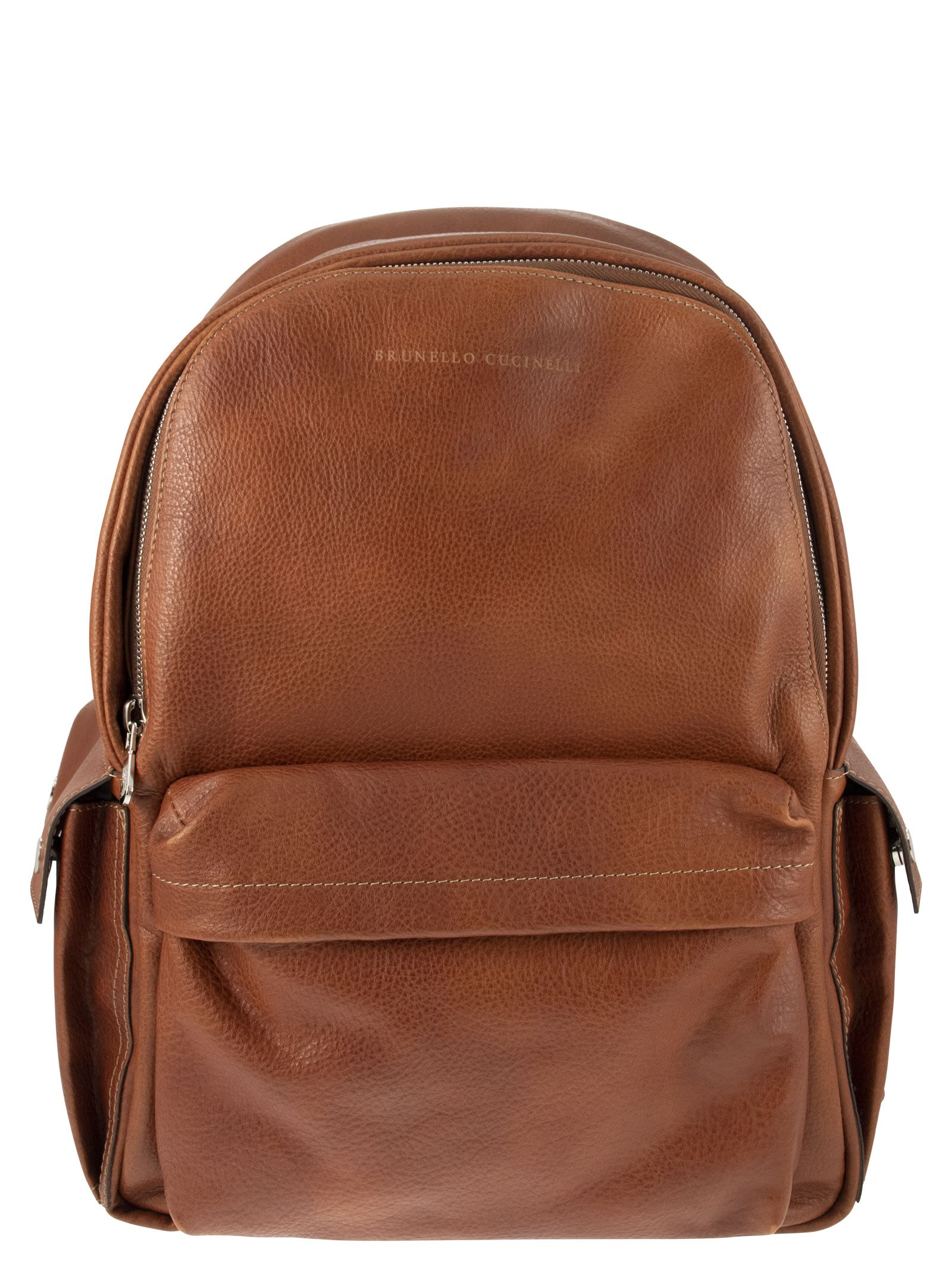 A versatile accessory perfect for city commuting or travelling, this backpack combines functional design and fine materials. Grained calfskin leather enhances the accessory with a smooth, slightly shaded texture. On the outside, two small side pockets with magnetic closures and a zipped front pocket keep the essentials close at hand. The back strap allows the backpack to be attached to a trolley bag for easy transport. - Zip closure - Adjustable shoulder straps - Handle - Exterior zipped pocket - Side pockets with magnets - Zipped inner compartment - 3 open internal compartments - Back strap for attaching accessory to trolley handle DESIGNER ID: MBZIU243 C6608