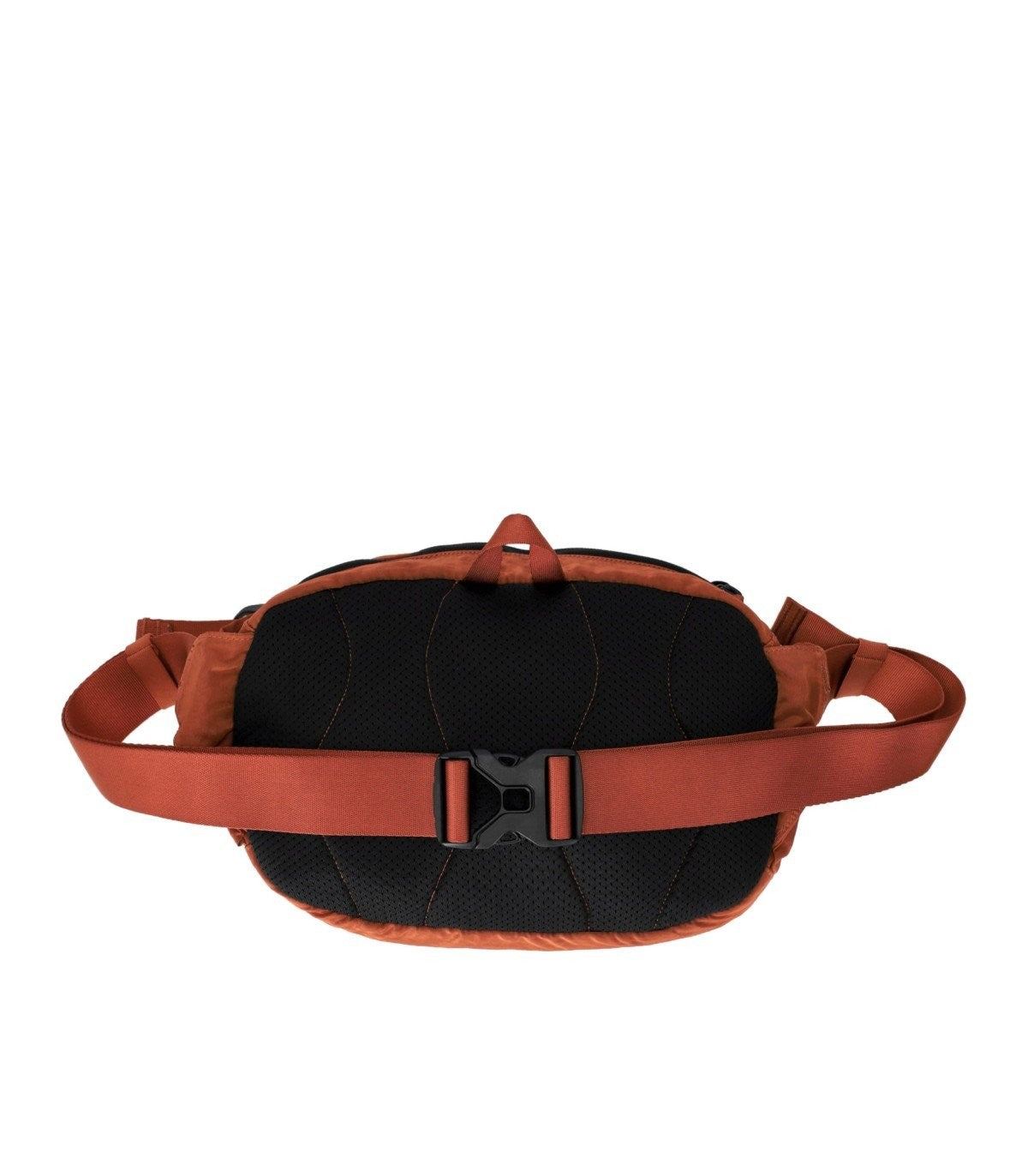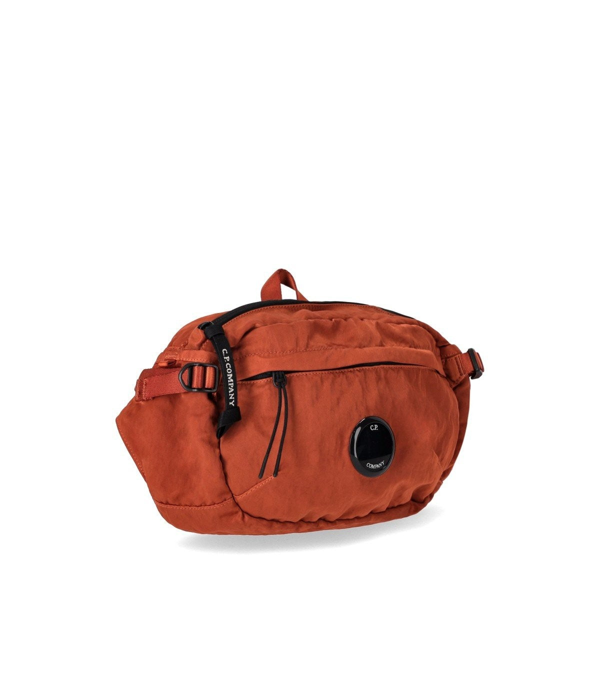 C.P. Company shoulder bag made of multi-filament Nylon B with dark orange satin finish. Equipped with zip pockets and adorned with lenses, it has an internal zip pocket with logo. Closure with buckle, dimensions 25x16x7.5 cm. Internal composition: 100% Polyamide. Main lining: 100% Polyester.