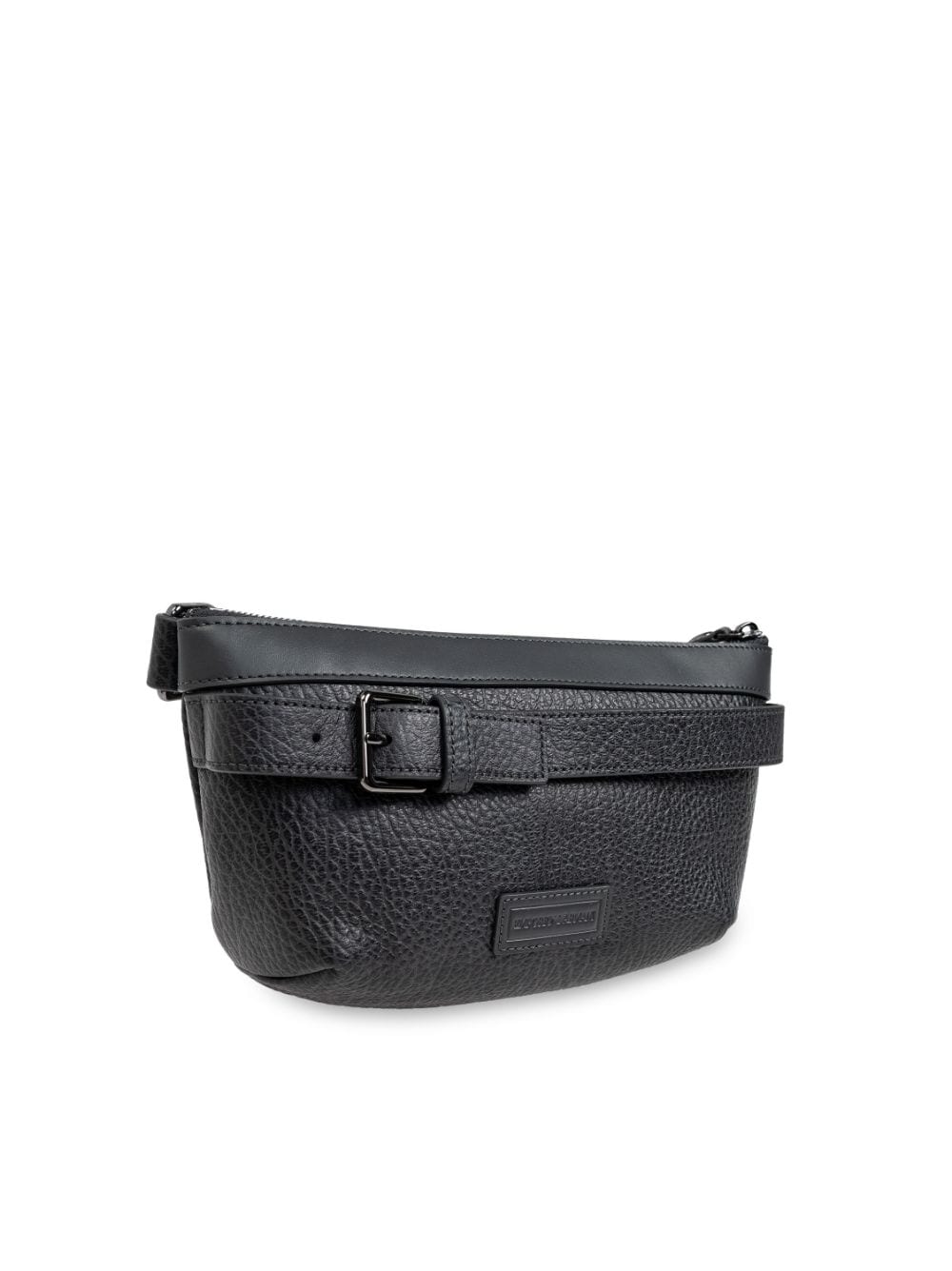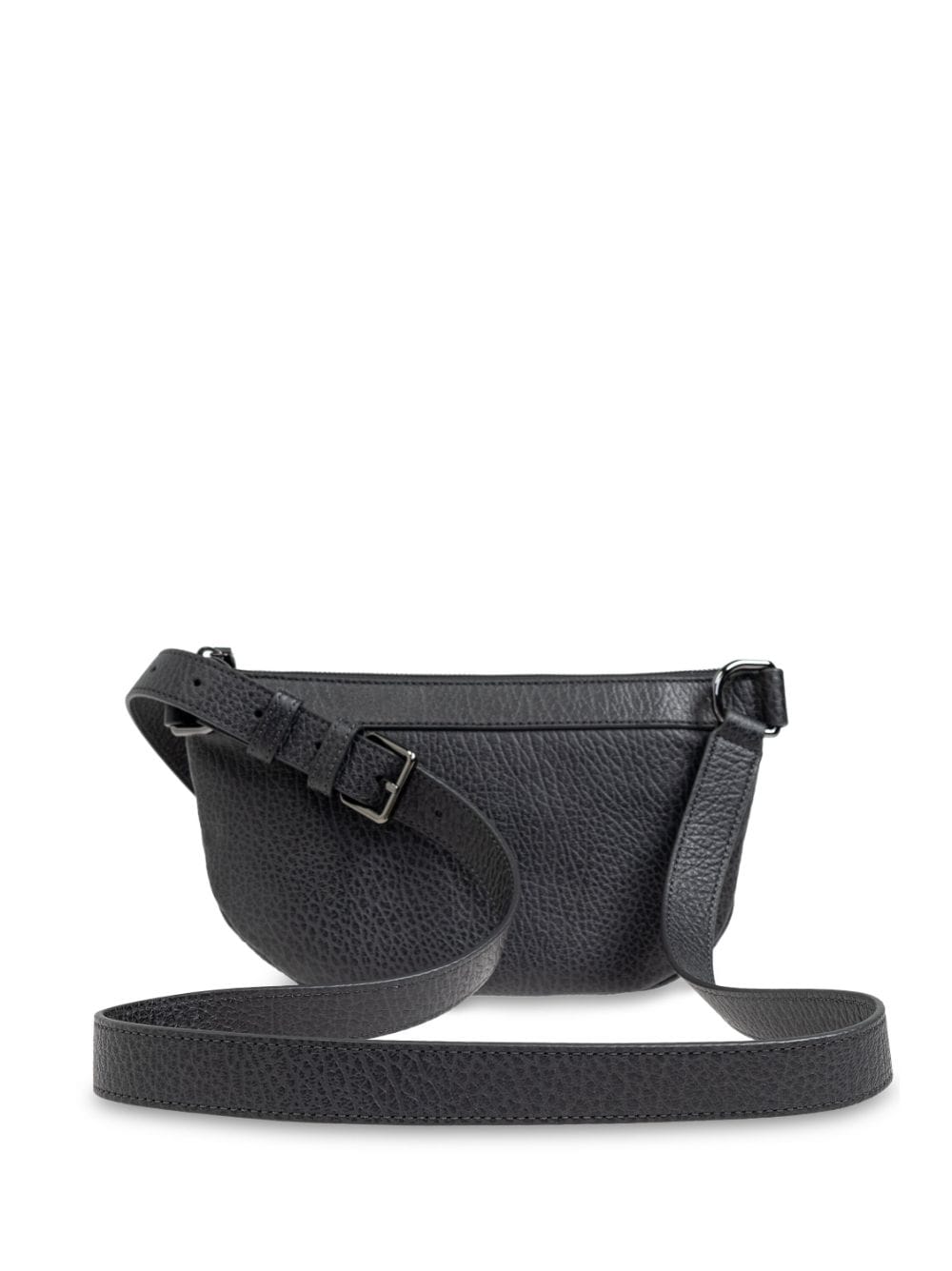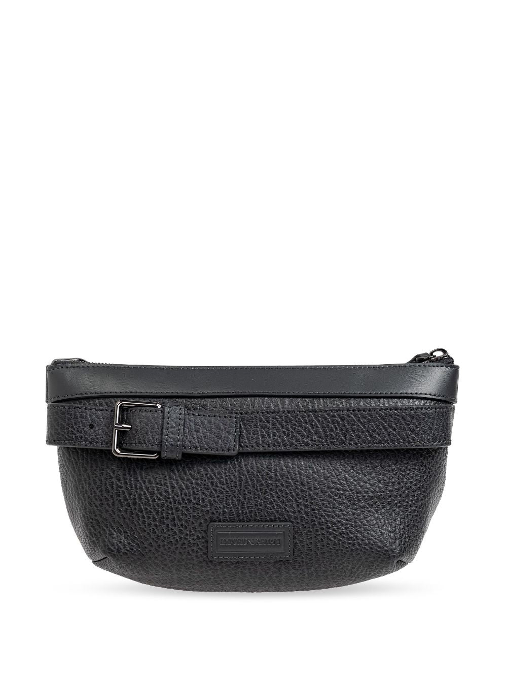 black calf leather pebbled texture appliqué logo top zip fastening adjustable waist strap main compartment internal zip-fastening pocket internal logo patch