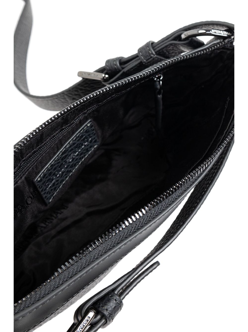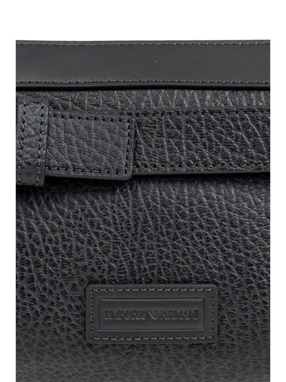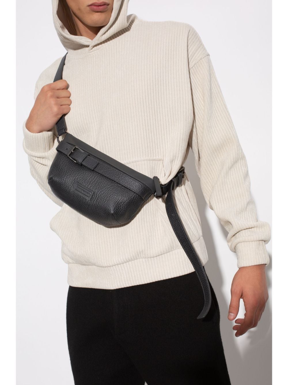 black calf leather pebbled texture appliqué logo top zip fastening adjustable waist strap main compartment internal zip-fastening pocket internal logo patch