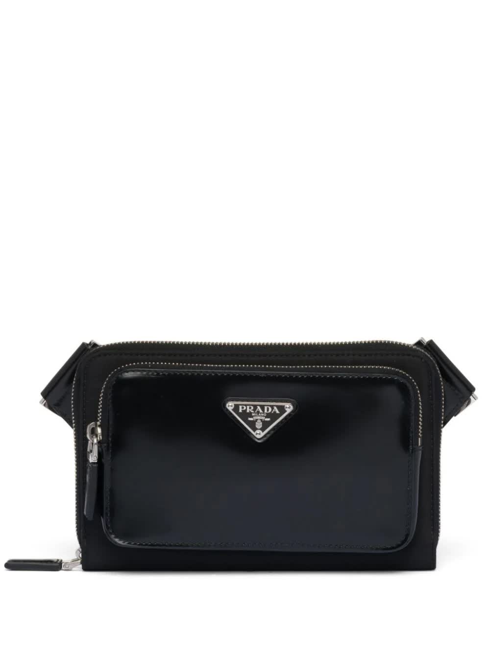 - Shoulder bag in Re-Nylon and brushed leather