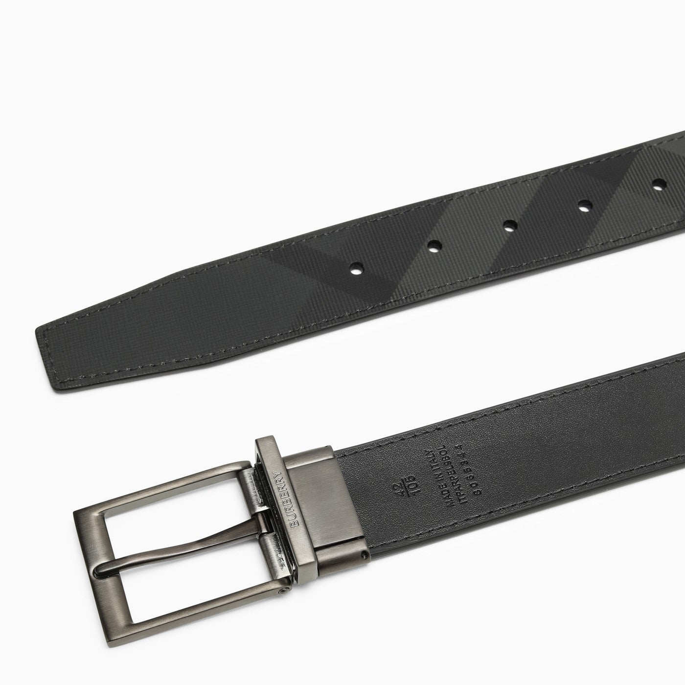 Burberry Smoke Black/Graphite Vintage Check Belt In Reversible Coated Canvas