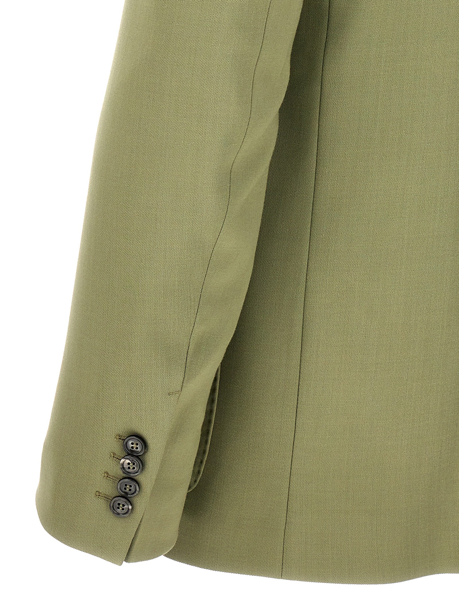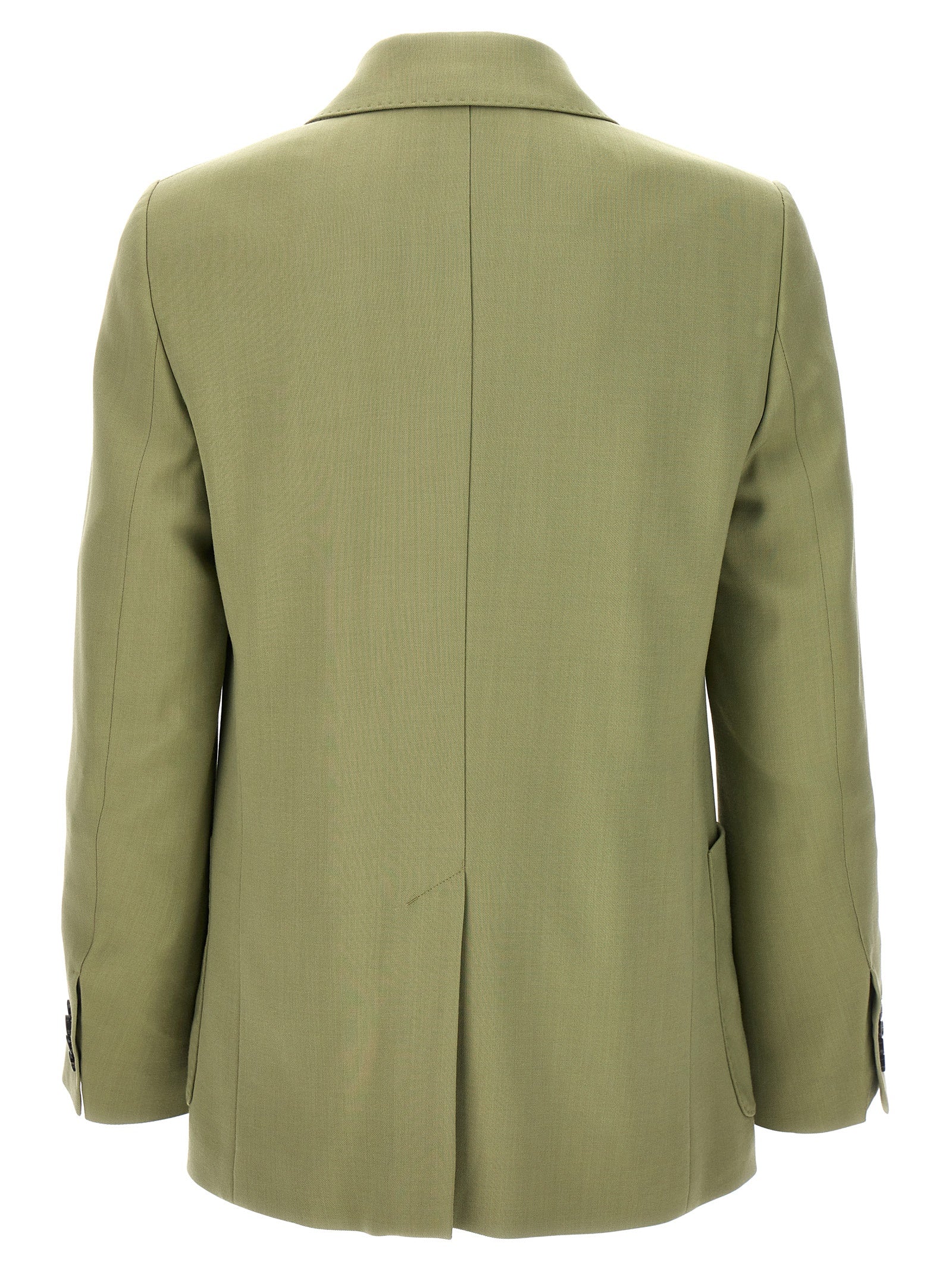 Double-breasted blazer in wool blend with button closure, pockets, long sleeves, back split.