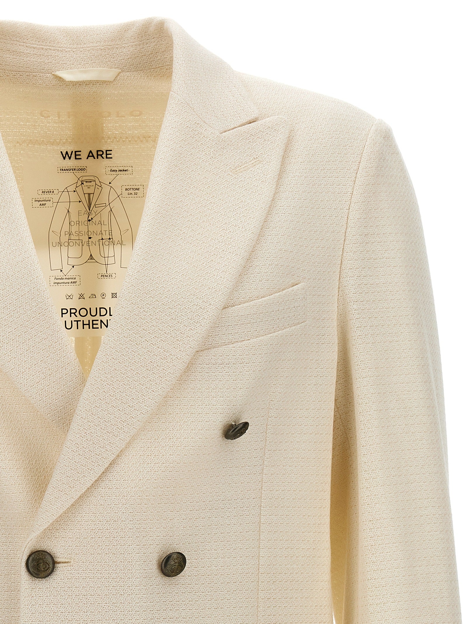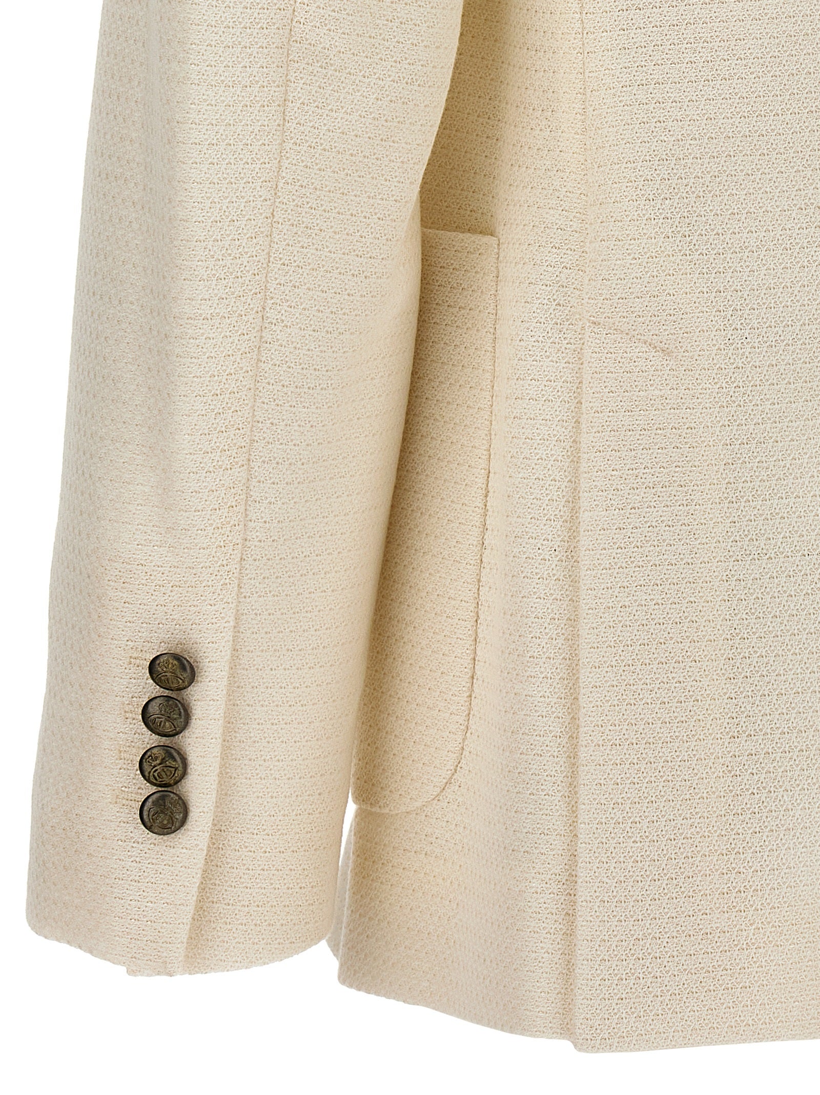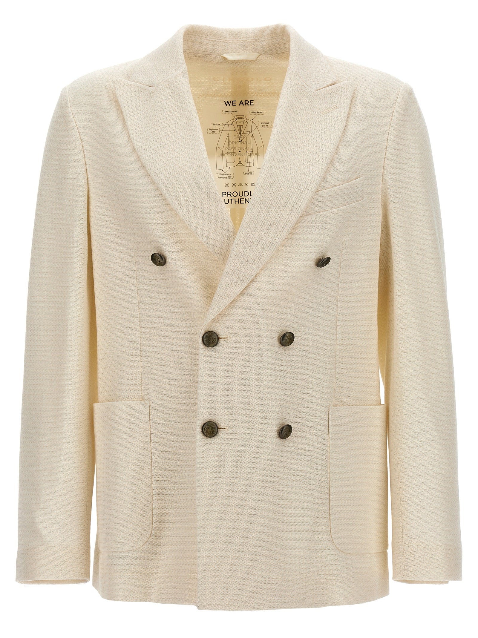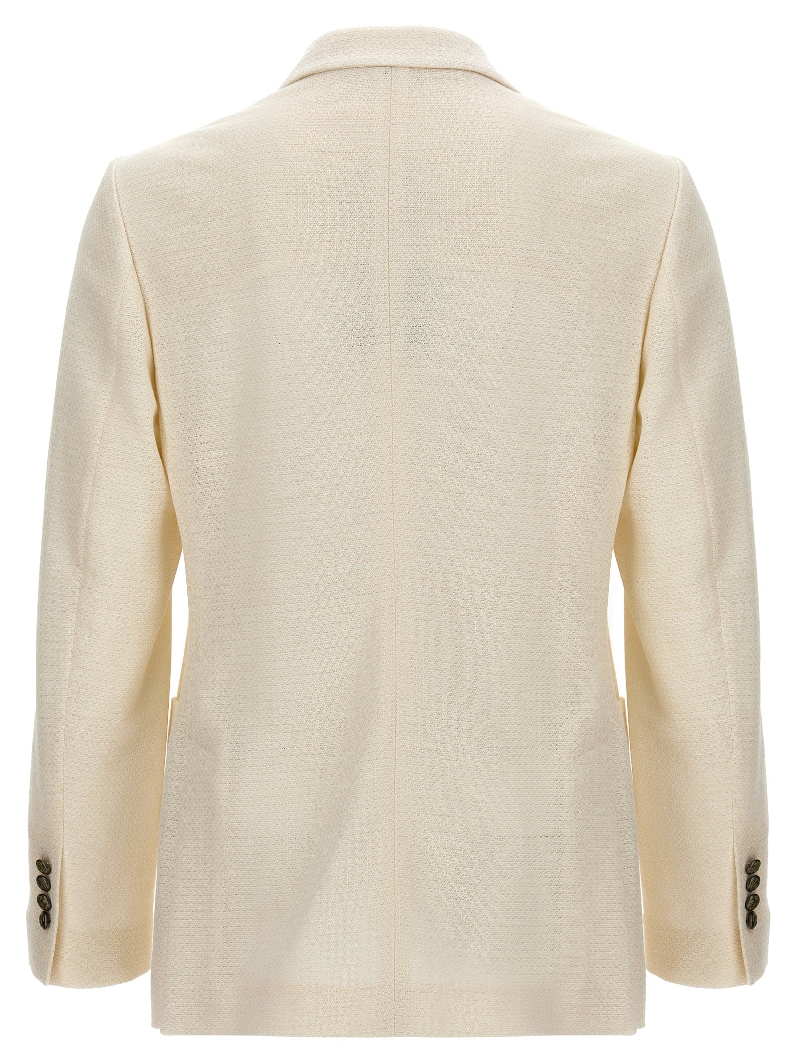 Double-breasted blazer in cotton and linen blend, button closure, pockets, long sleeves, back vents.