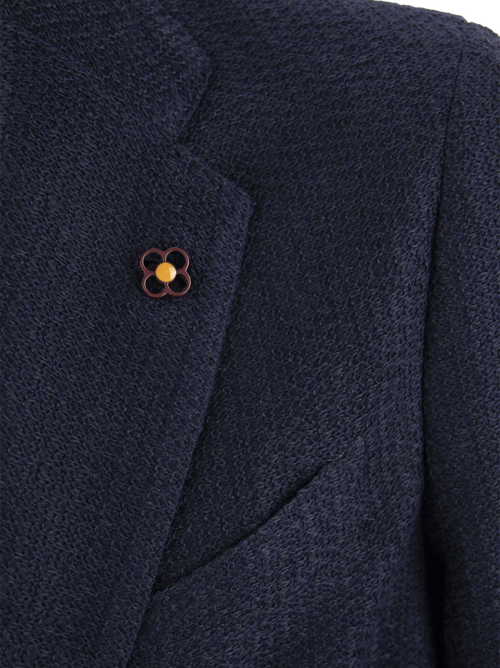 Deconstructed cotton linen blend jacket for a casual and elegant style. Embellished with the brand's iconic lapel pin and finished with a breast pocket, front patch pockets and two-button fastening. - Classic lapels - Logo pin on lapel - Chest pocket - Front patch pockets - Single-breasted button closure DESIGNER ID: EPLKJ1E EPJ60045 850