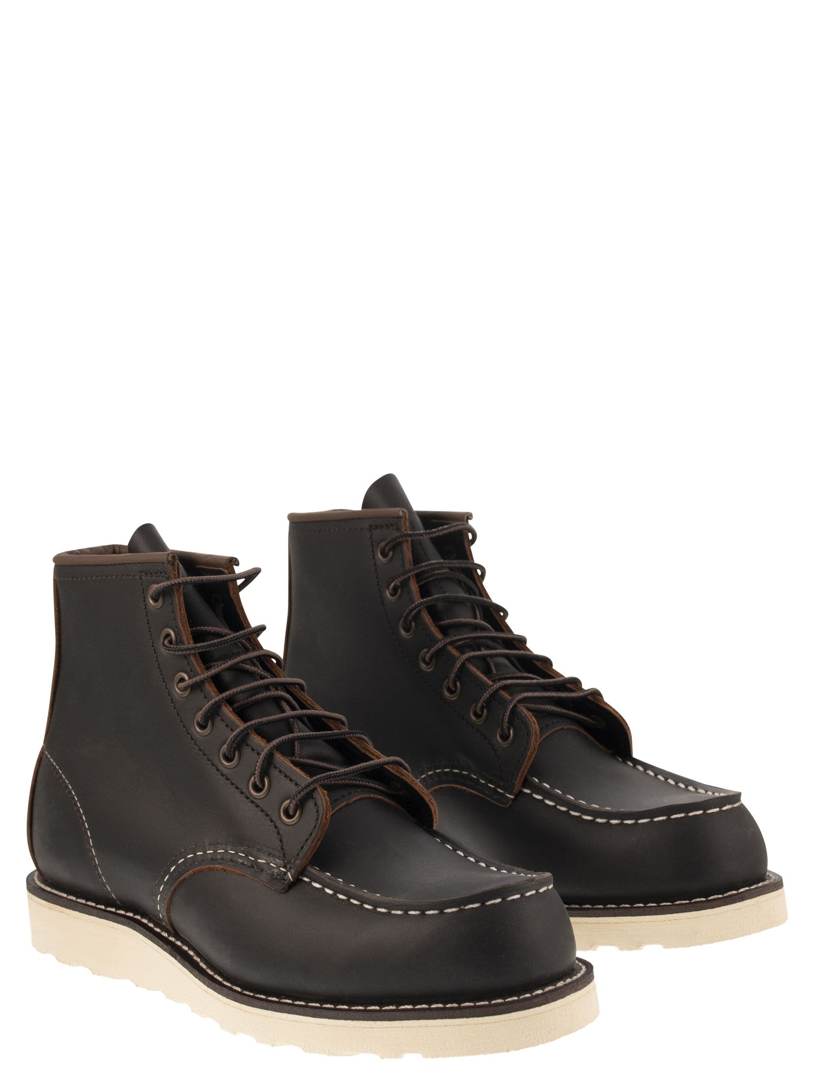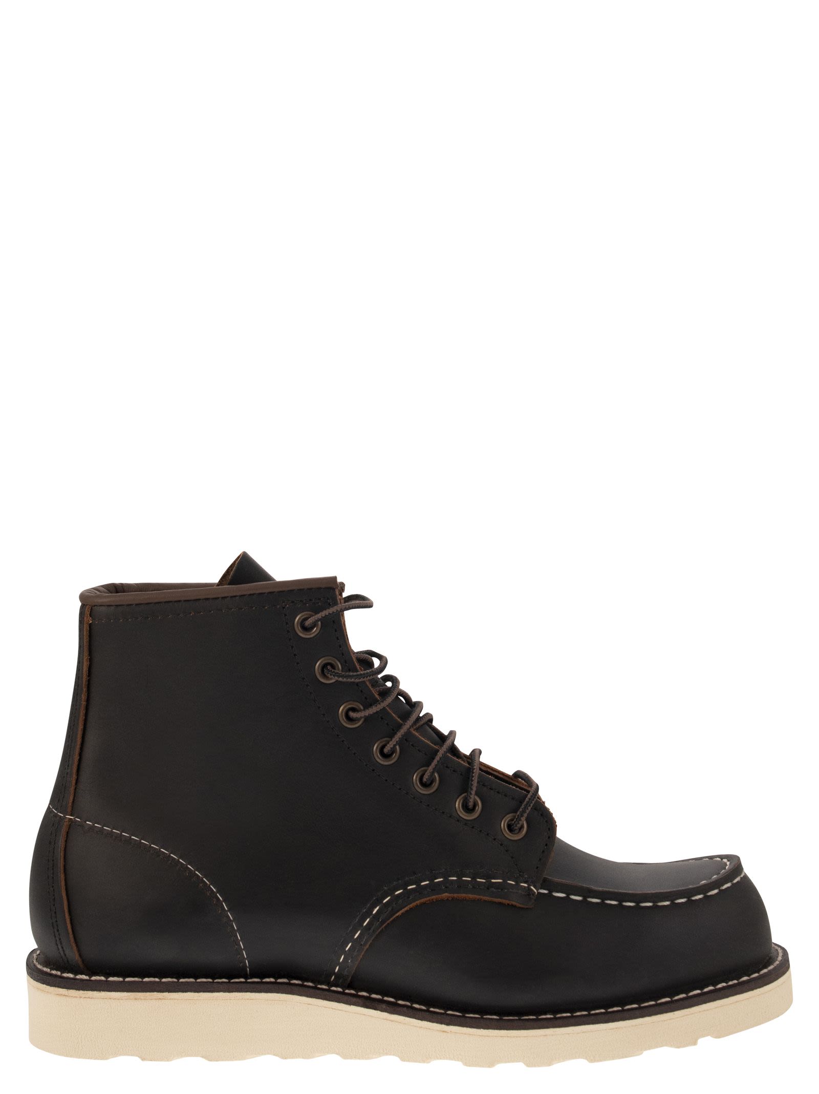 The 6-inch Classic Moc is synonymous with Red Wing Heritage. The unmistakable moc toe and Traction Tred sole form a silhouette that sets the standard by which all others are measured. It was first produced by Red Wing in 1952. It has since become one of the world's best-loved lifestyle boots. - Durable construction - Constant traction and all-day comfort - Triple Puritan stitching - Goodyear welt DESIGNER ID: 08849D NERO