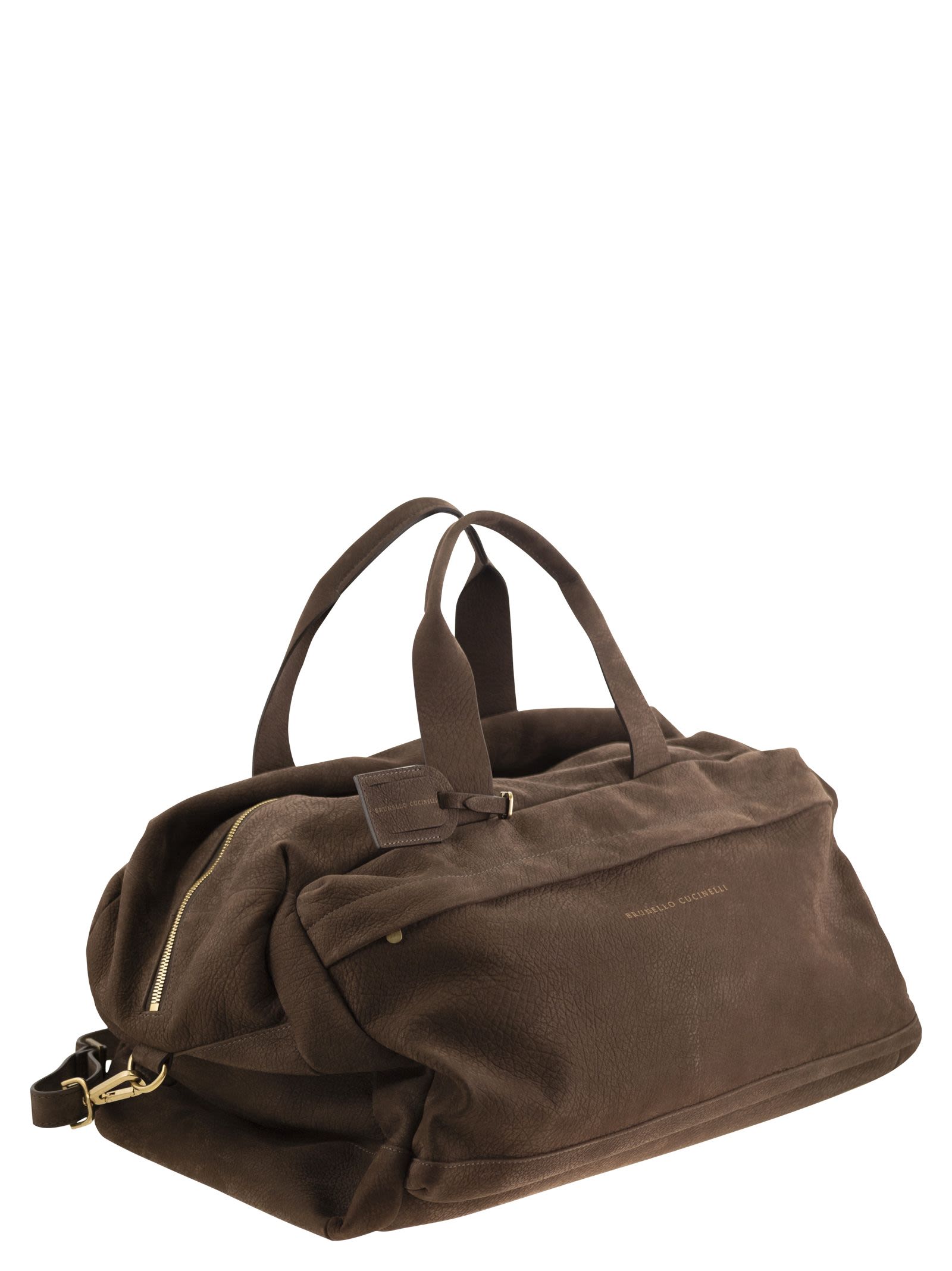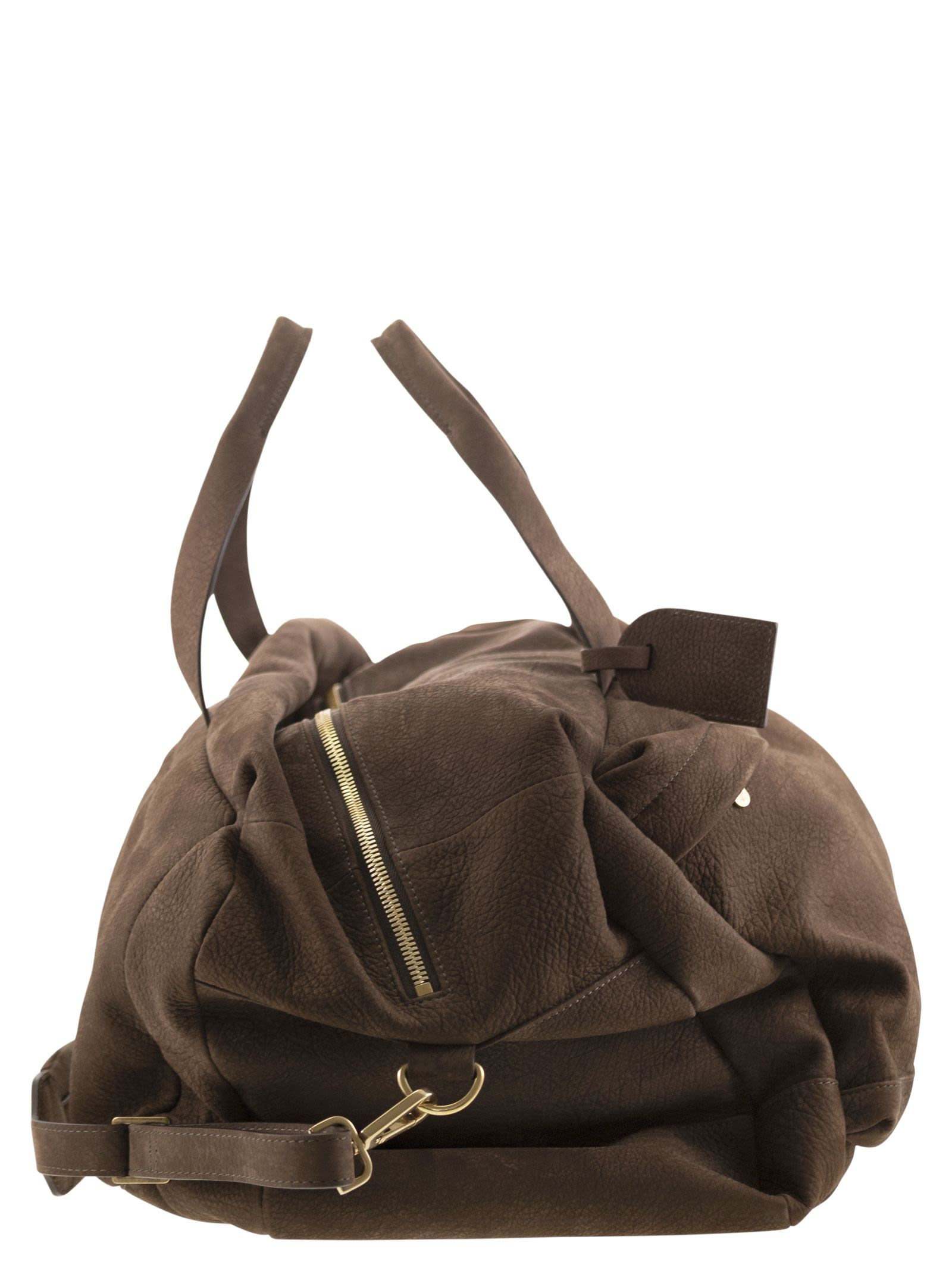 Fine materials and functional design enrich the style of the Active bag in nubuck, a leather with a distinctive velvety texture and vintage feel. The double handle and large exterior pocket make it ideal for sporting events as well as small trips, while the main zip opening protects the spacious interior compartment. The characteristic natural grain of the nubuck is enhanced by the finishing that diffuses a slightly uneven colour effect. The water-repellent fabric lining helps protect the accessory from the slightest contact with water. - Zip closure with double slider - Removable shoulder strap - Double handle - External zipped pockets - Water-repellent fabric lining - Inside zip compartment - Inside pocket with button closure - Open inner compartment - All metal parts are nickel-free DESIGNER ID: MBEPU395 C1035