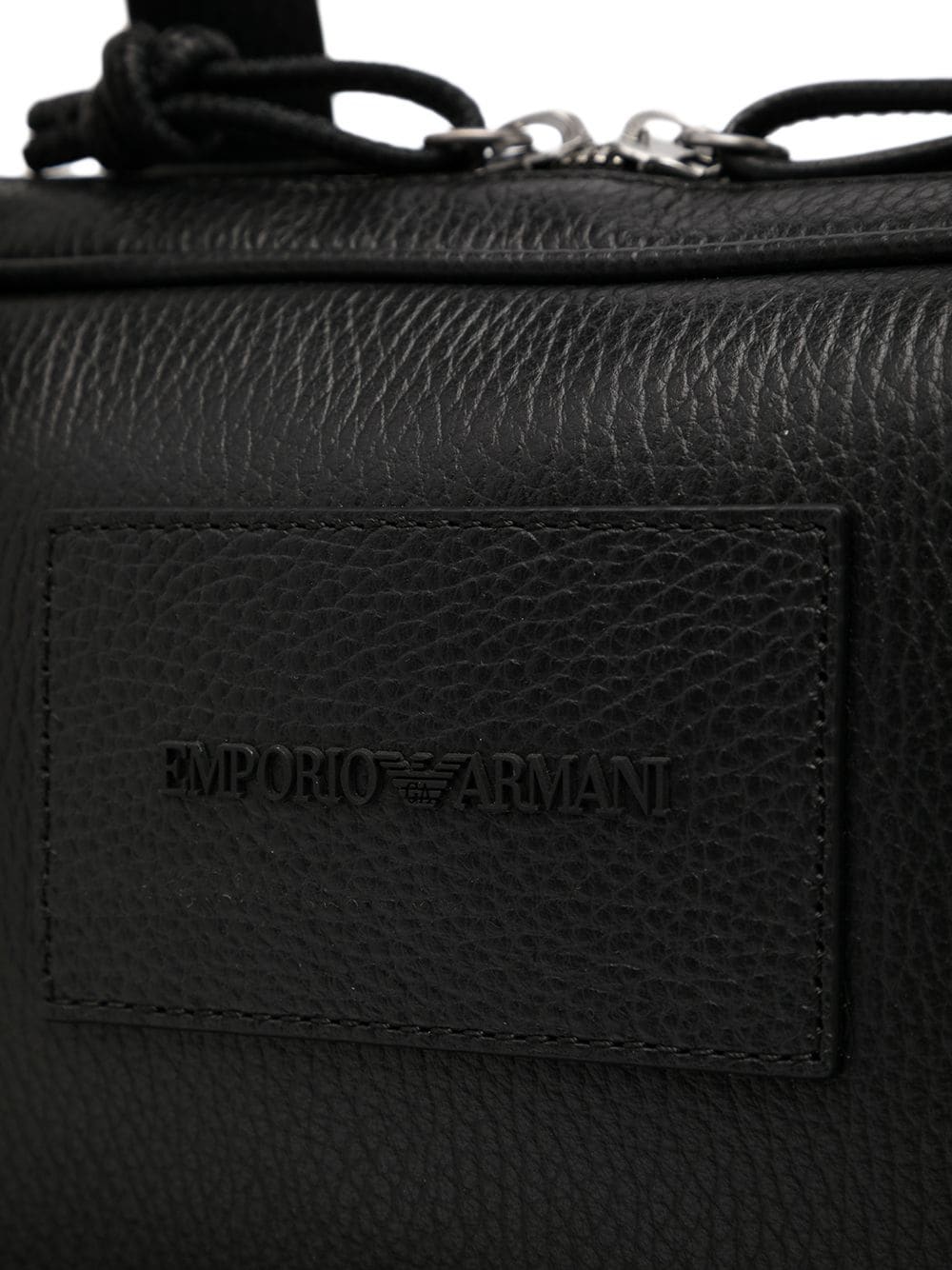 black leather logo patch to the front two top handles top zip fastening front zip-fastening pocket adjustable shoulder strap