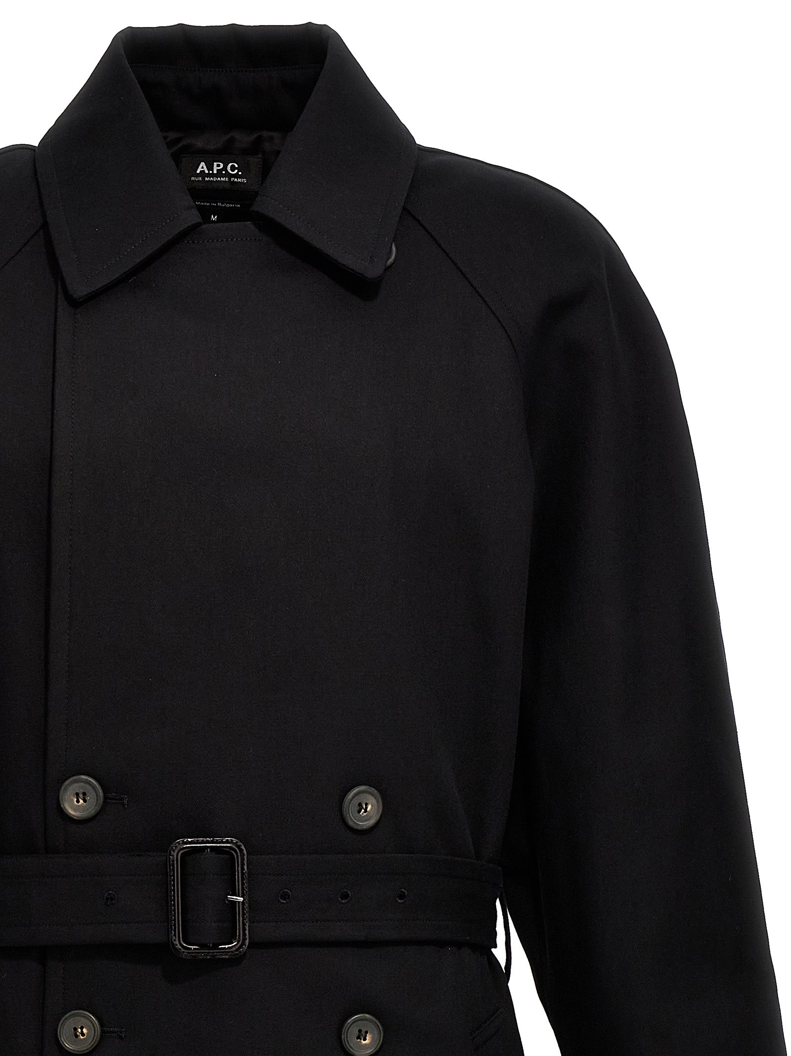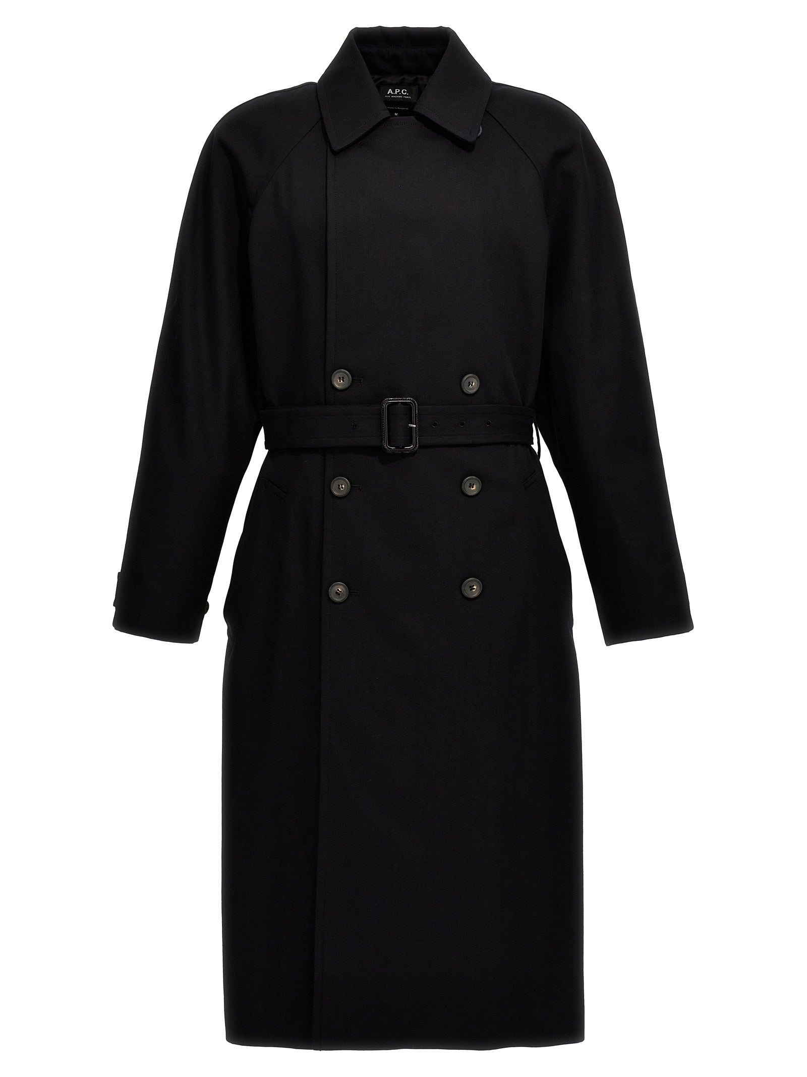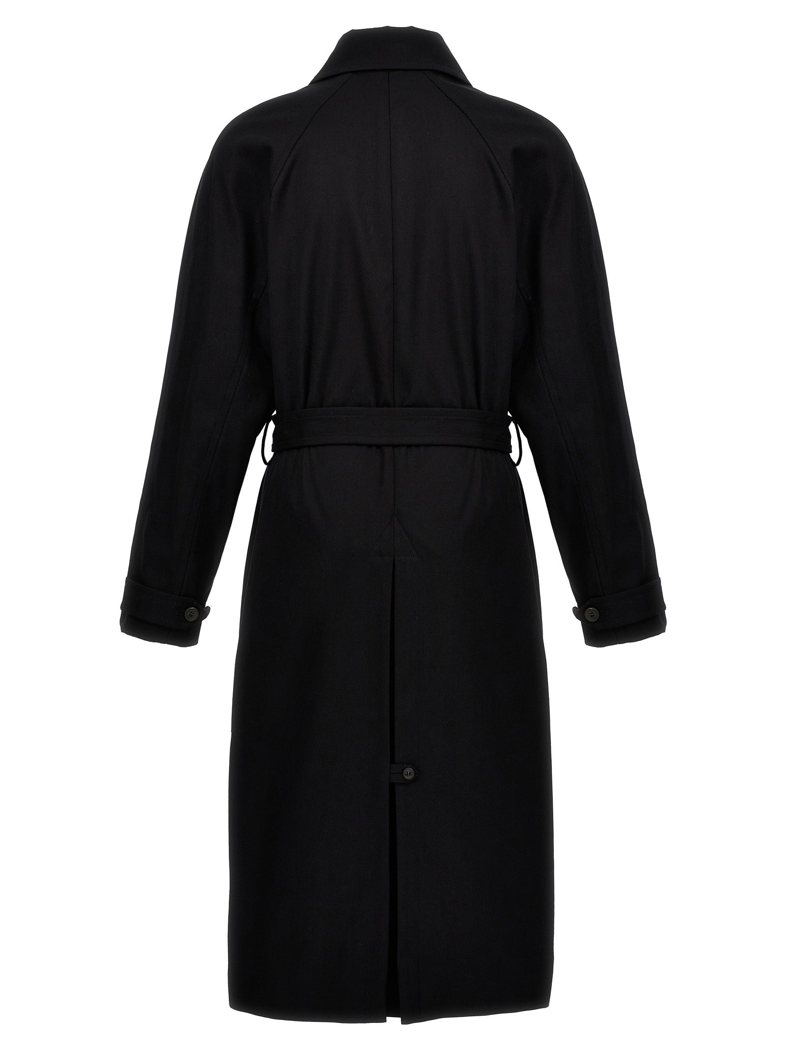 'Lou' double-breasted trench coat in cotton and wool blend with button closure, belt at the waist, pockets, long sleeves, back vent.