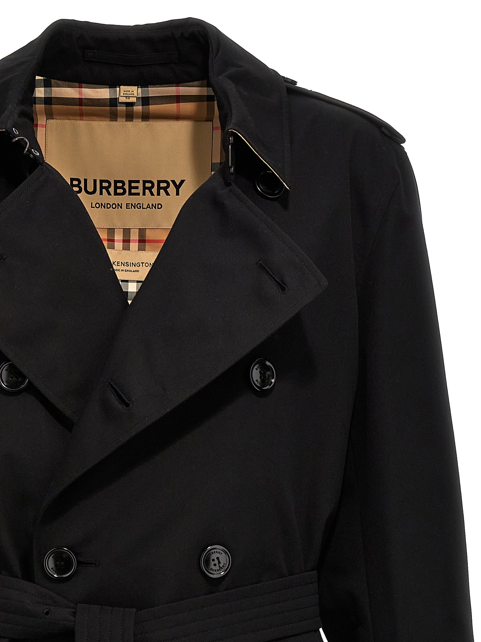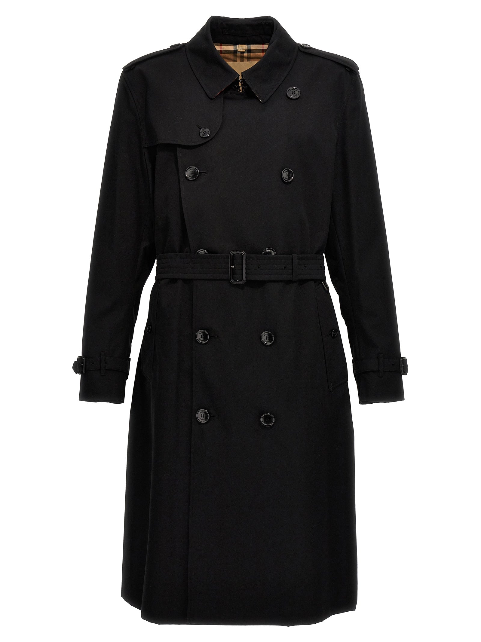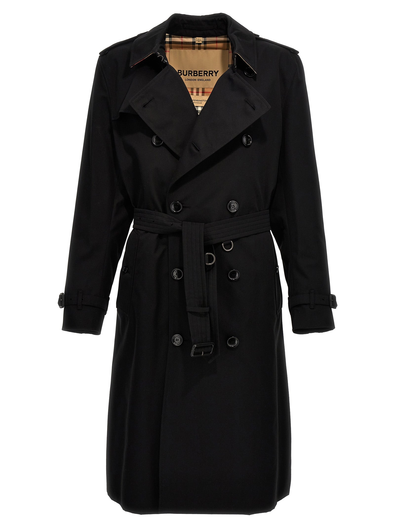 'Heritage Kensington' cotton gabardine trench coat with button closure, adjustable and removable belt, inner lining with check pattern.