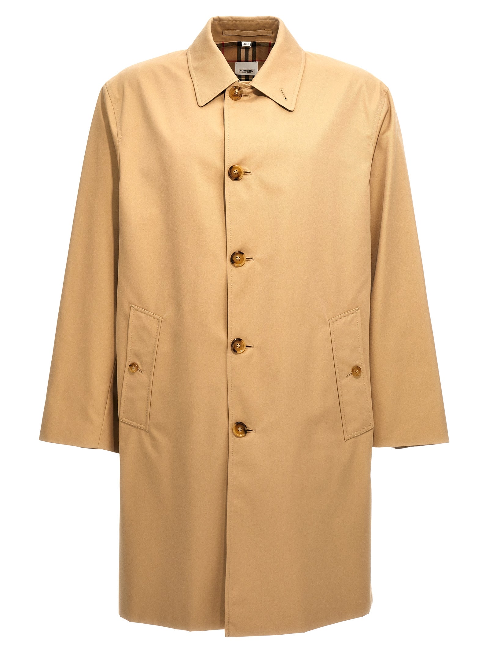 'Highbridge' car coat trench coat in cotton gabardine with front button closure and maxi logo embroidery on the back.