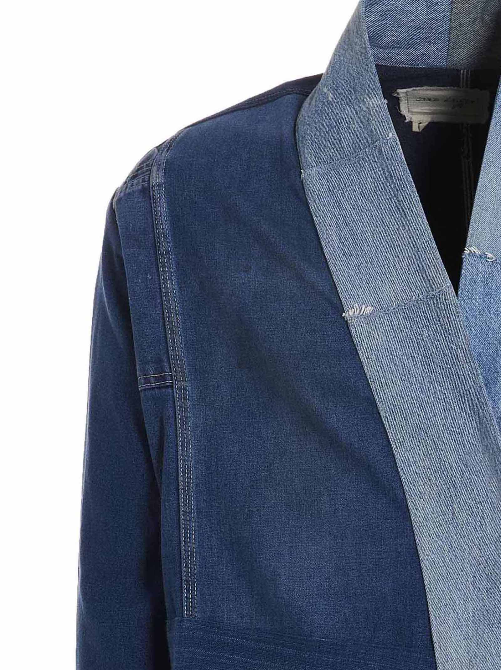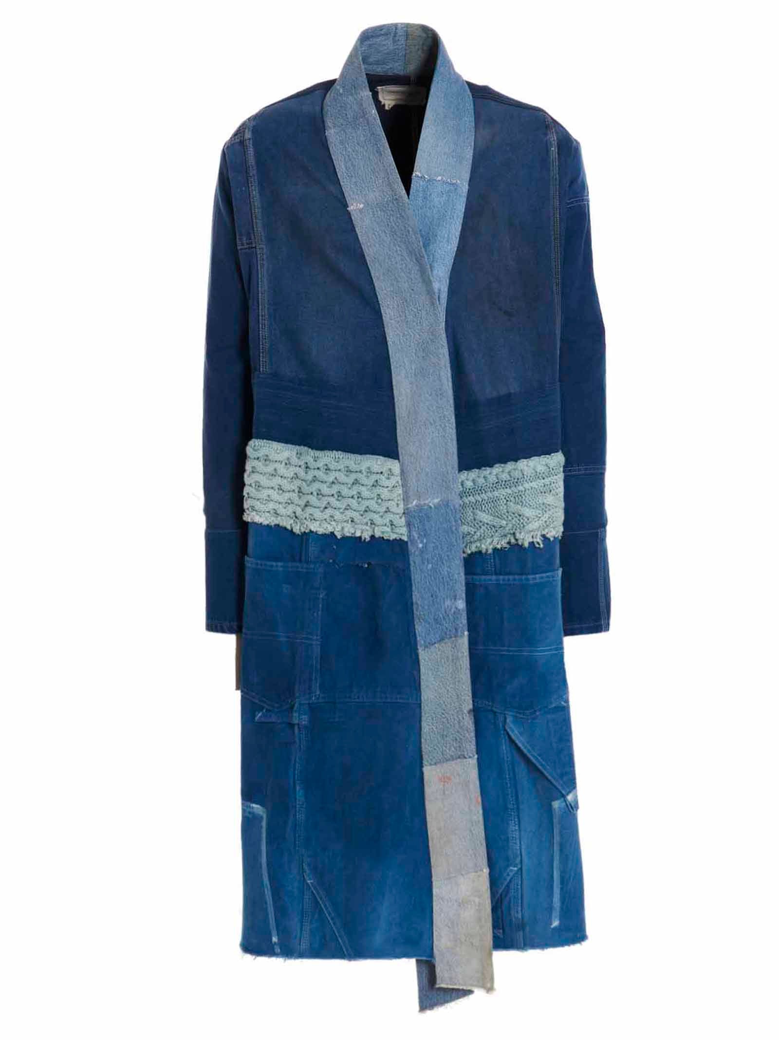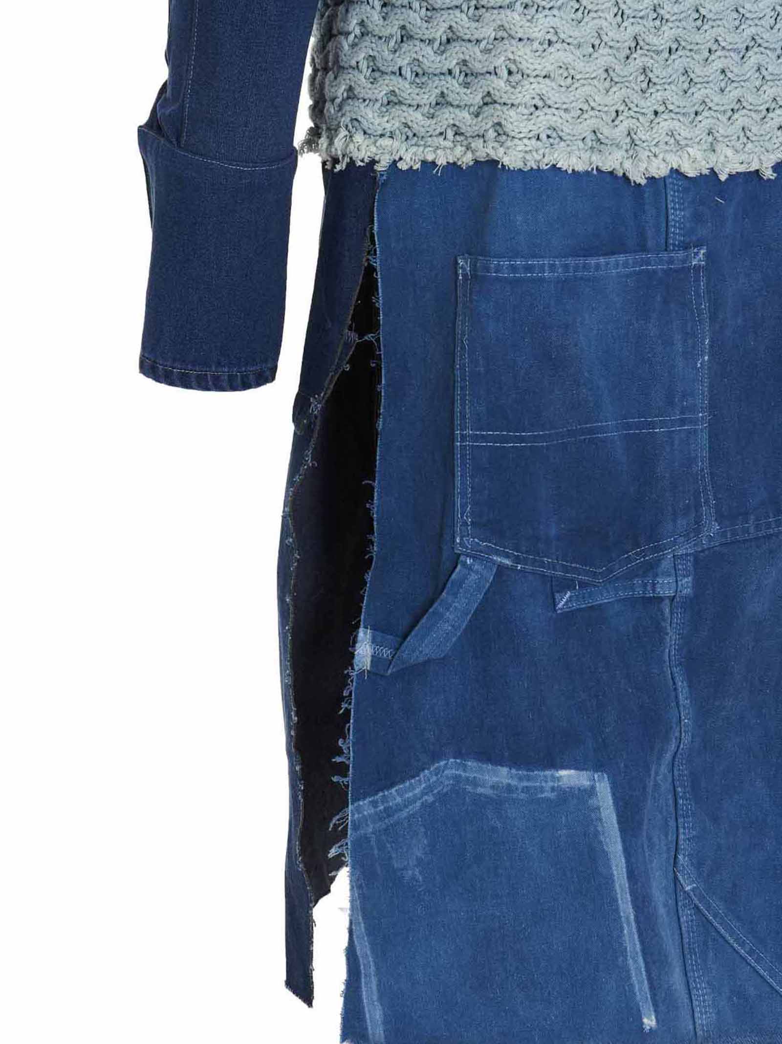 Patchwork cotton denim 'Denim Mixed Long' coat, with a front opening, pockets, a woven knit insert, long sleeves, and side vents.