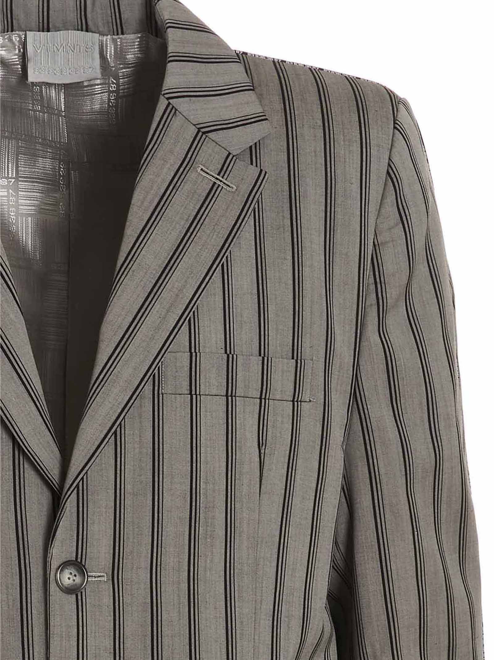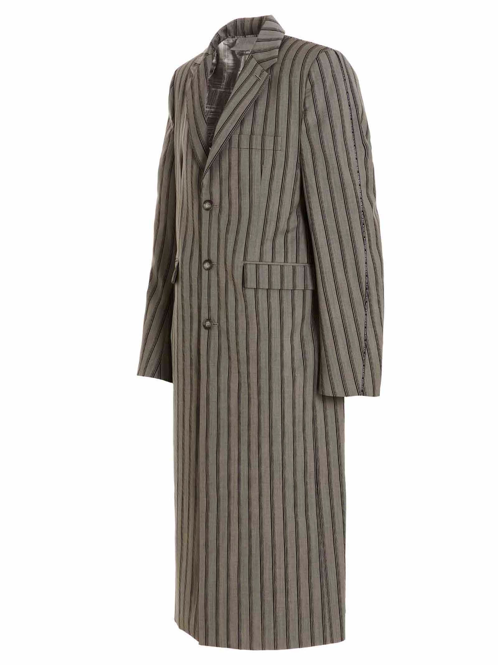 Single breast striped wool and silk long coat with button closure, pockets, long sleeves, padded shoulders and back splits. JULIAN SUSTAINABLE: This product is made with recycled wool..