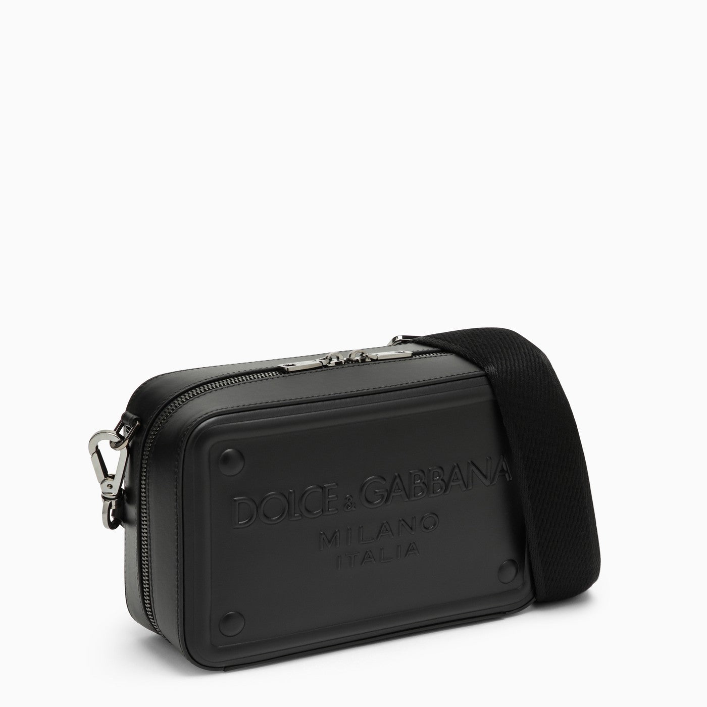 Black calfskin leather shoulder bag from Dolce & Gabbana featuring a tone-on-tone embossed logo on the front, a double-slider top zip fastening, an adjustable and removable fabric shoulder strap and an internal zipped pocket.