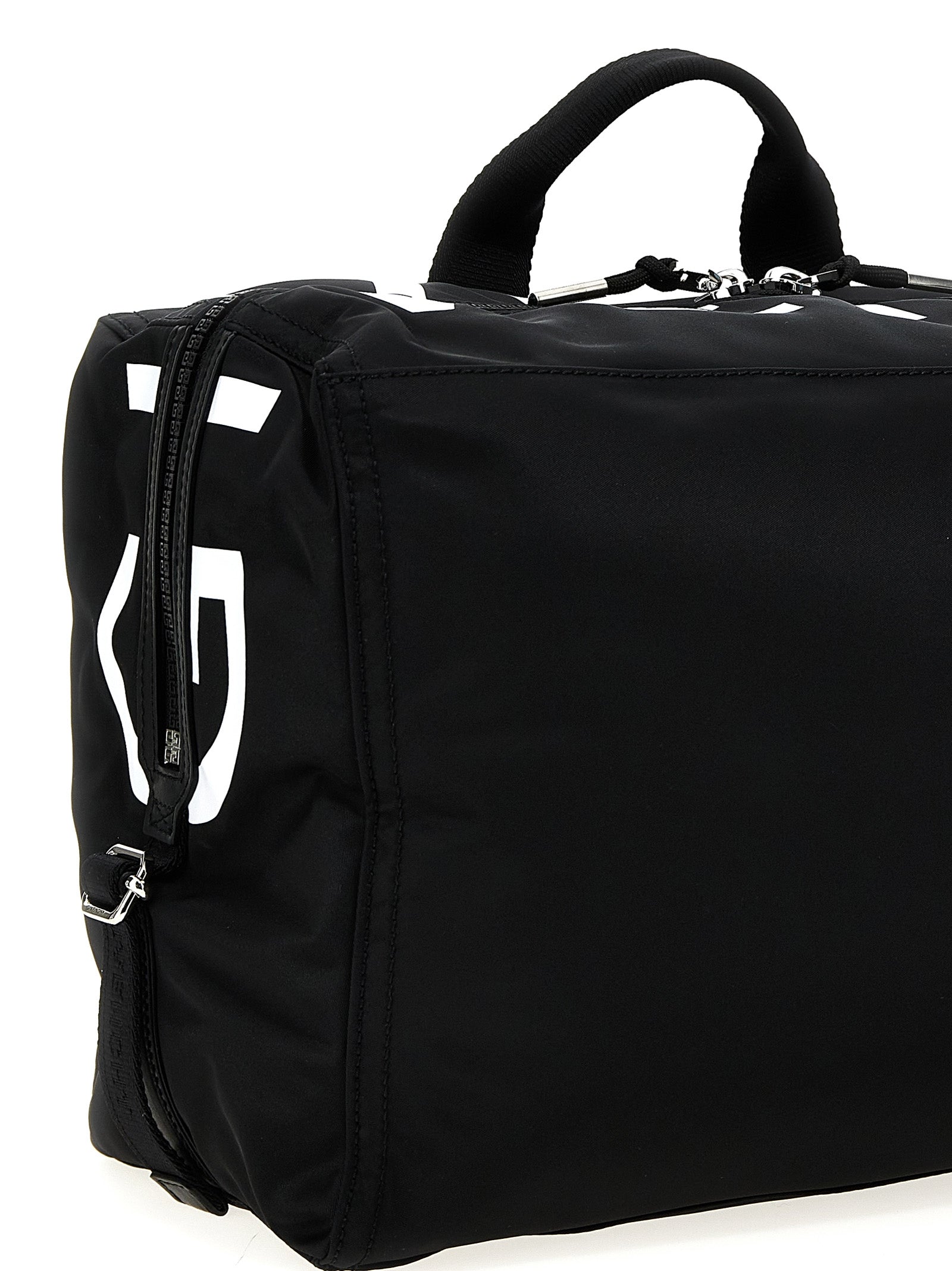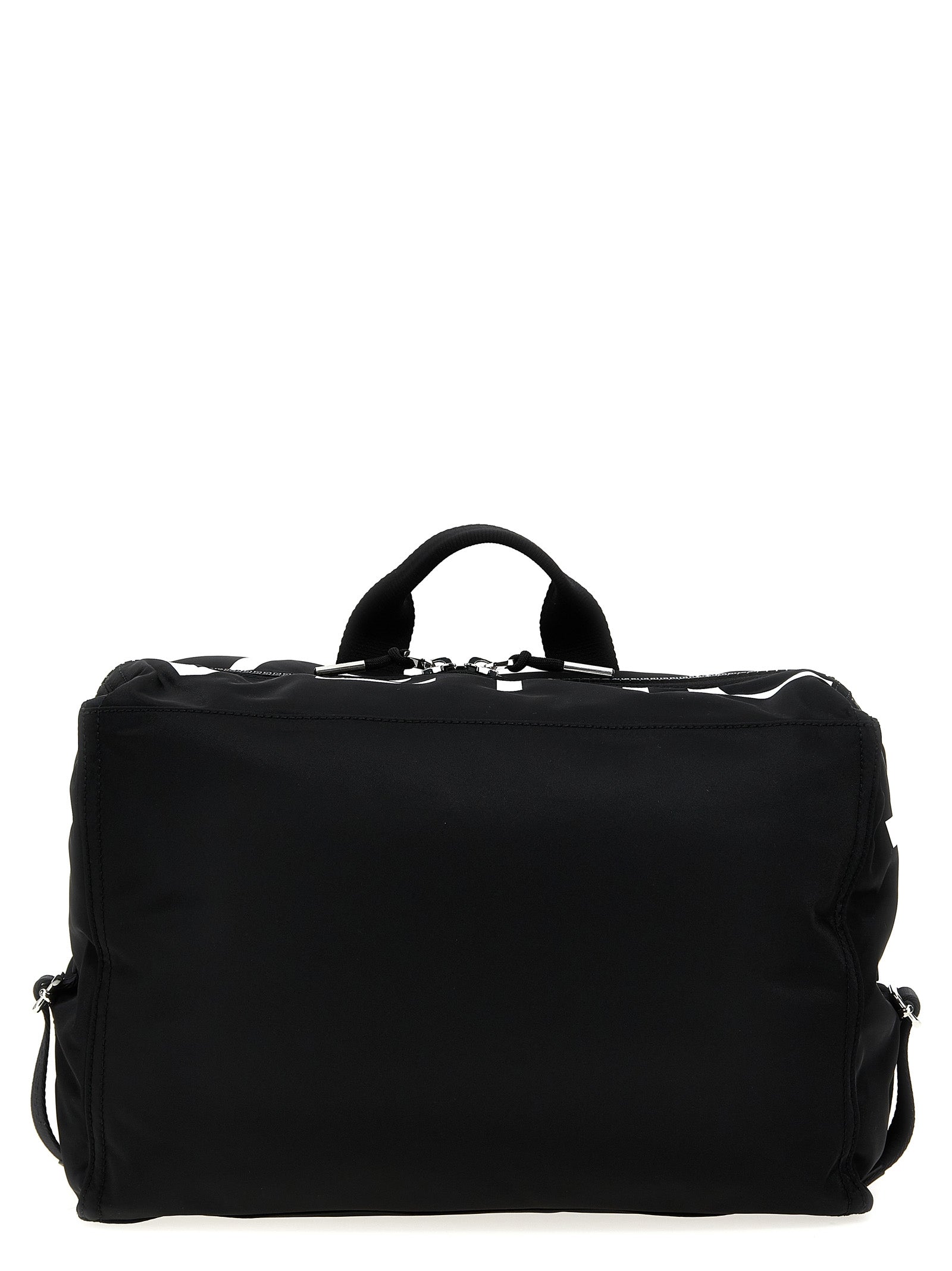 'Pandora' midi nylon crossbody bag with zip closure, adjustable shoulder strap, front metal logo.